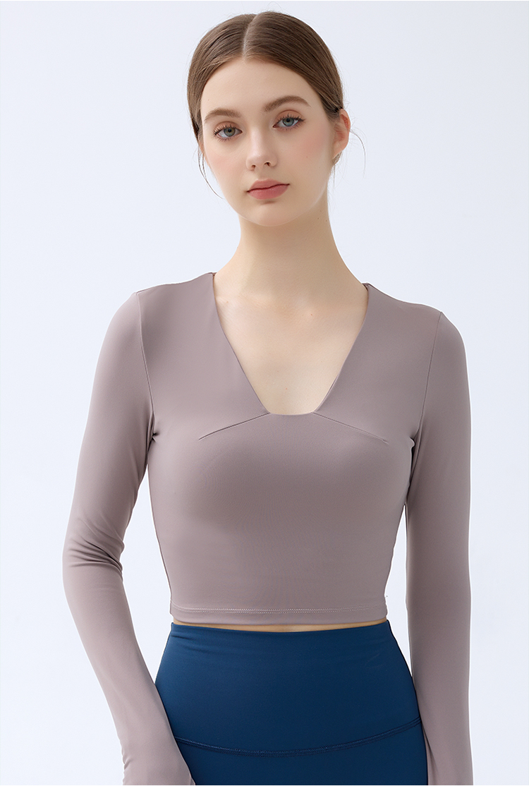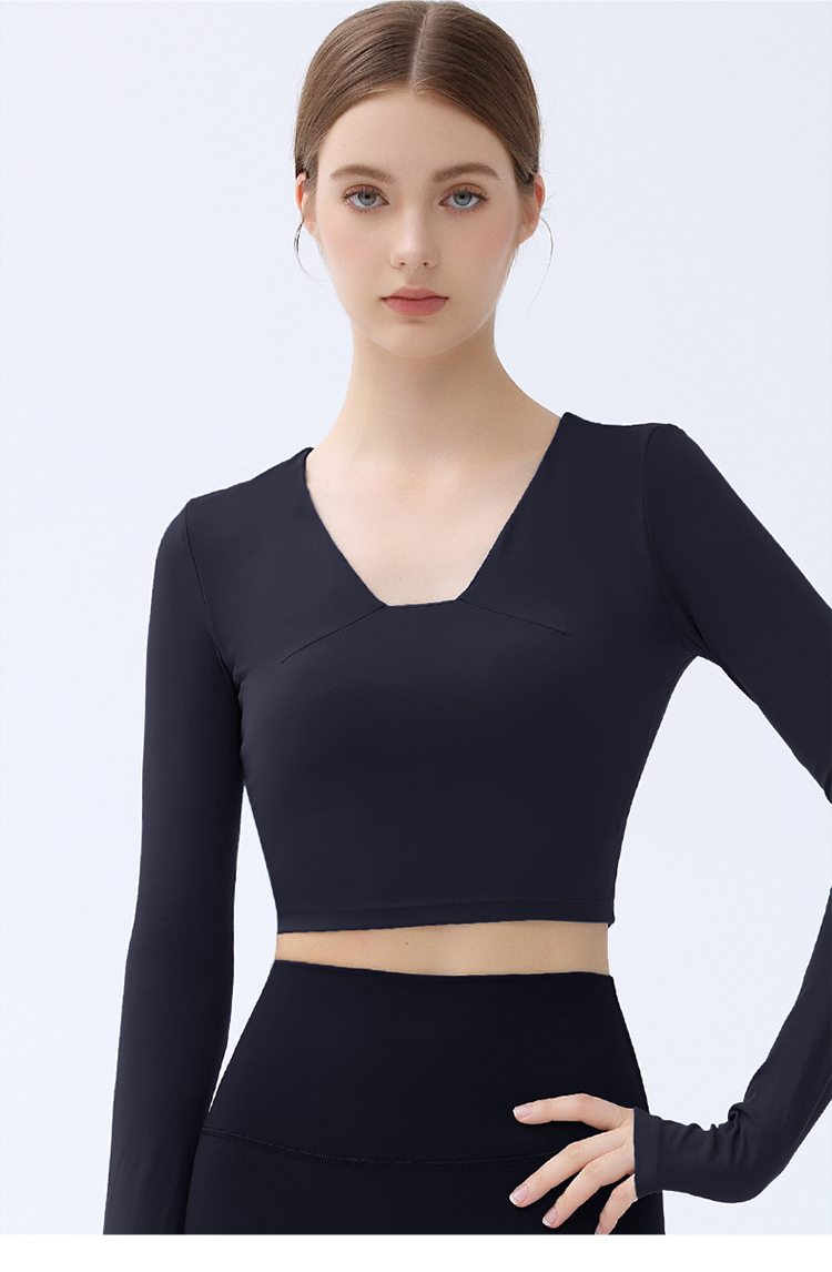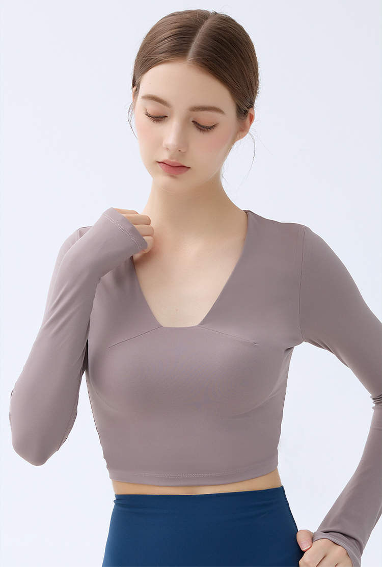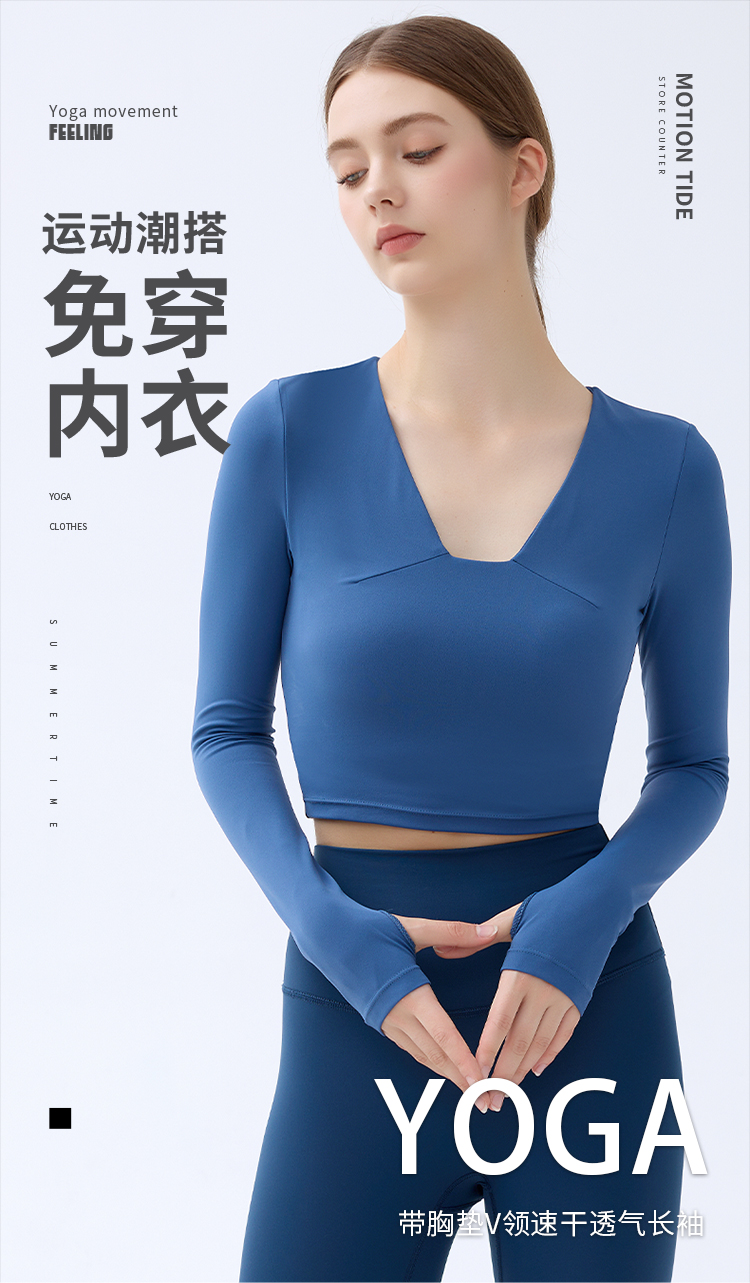 跃牌【小甜心】系列 带胸垫瑜伽服上衣女V领健身长袖9065 商品图0
