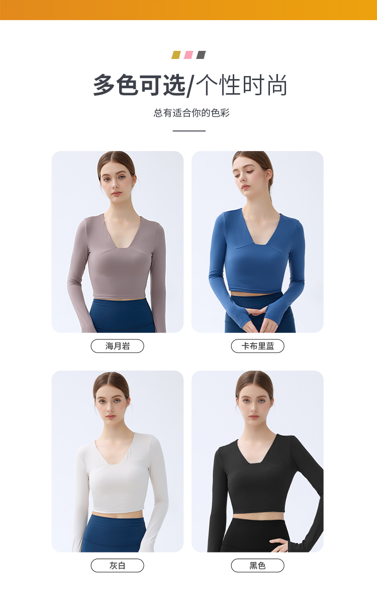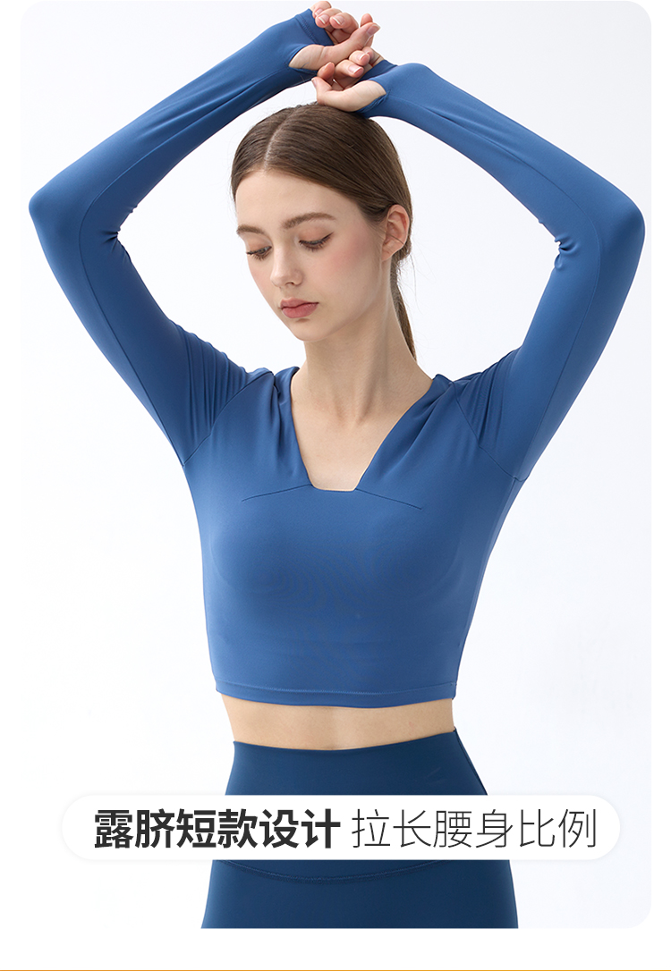 跃牌【小甜心】系列 带胸垫瑜伽服上衣女V领健身长袖9065 商品图9