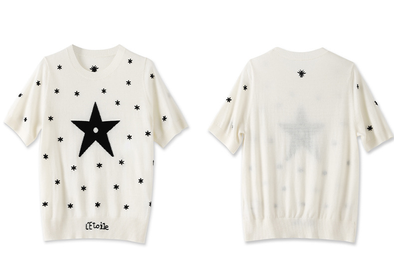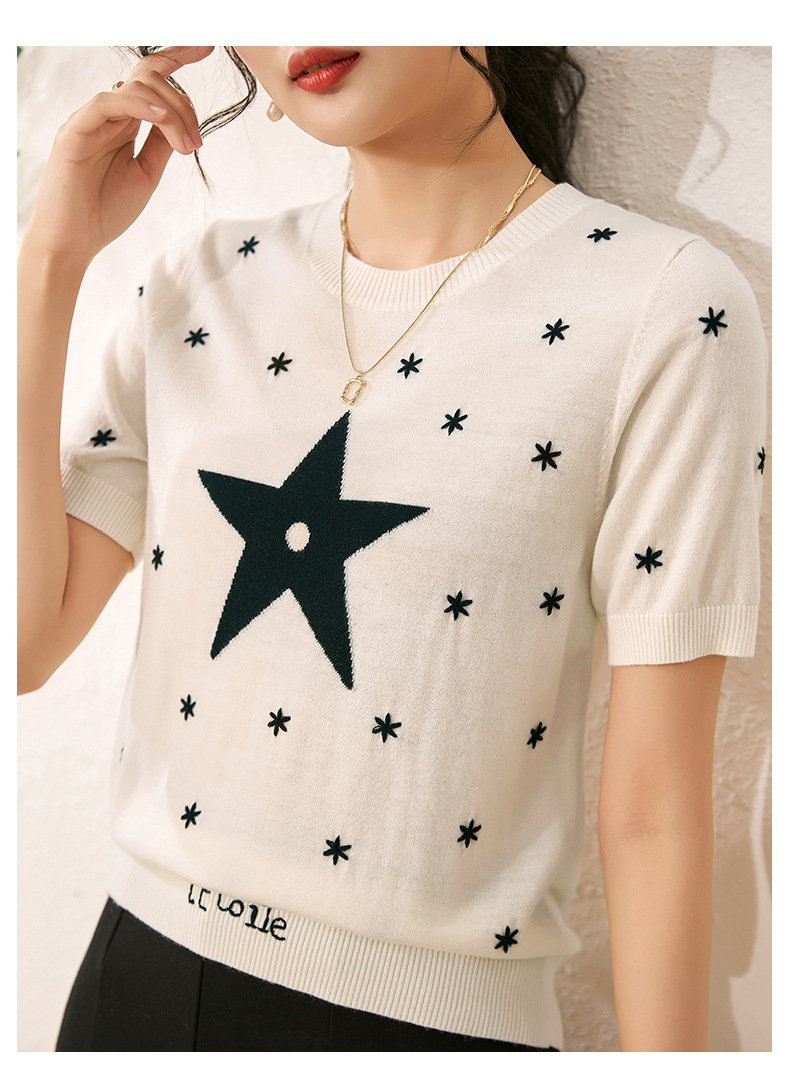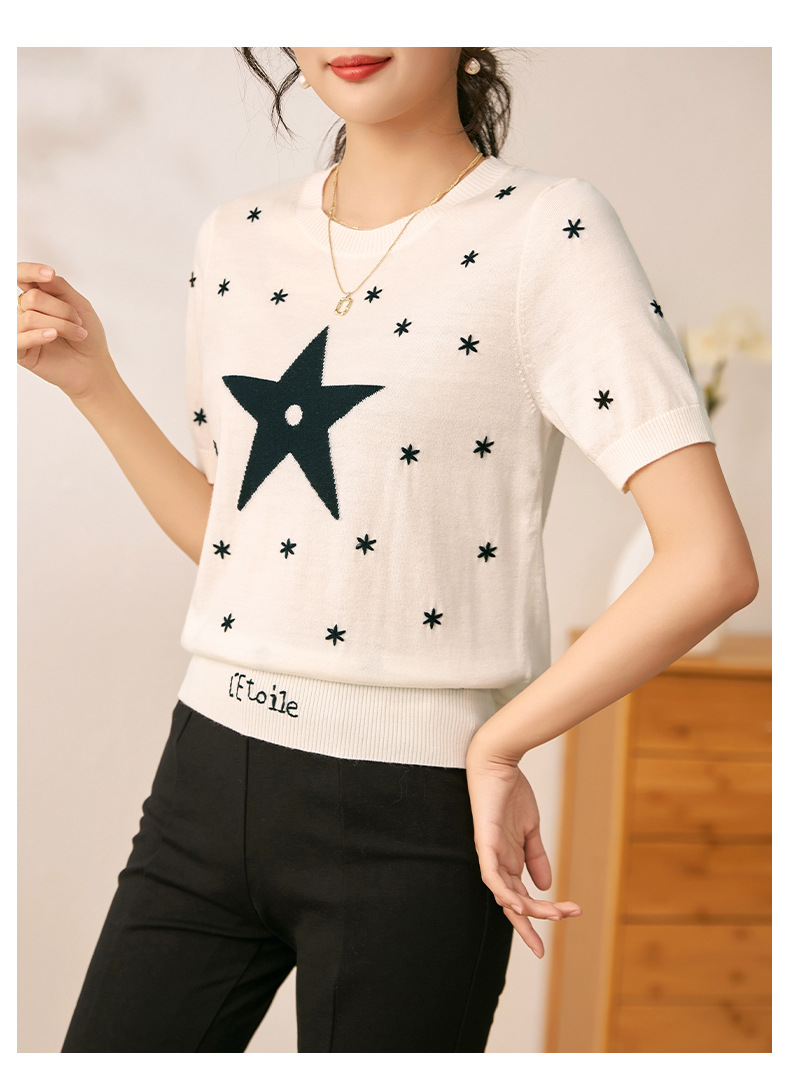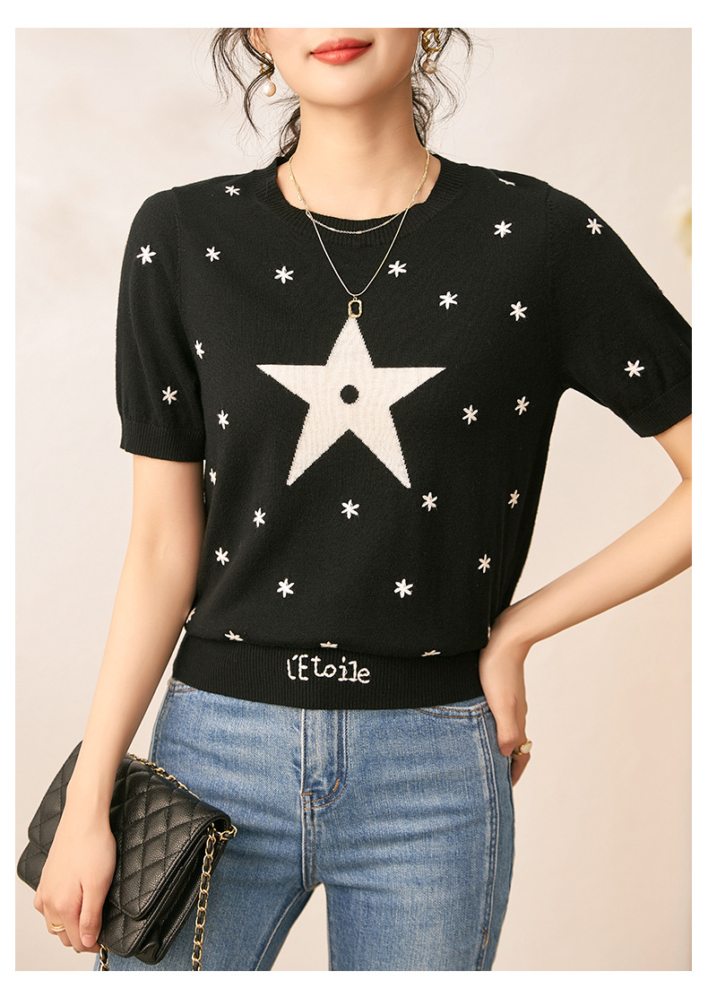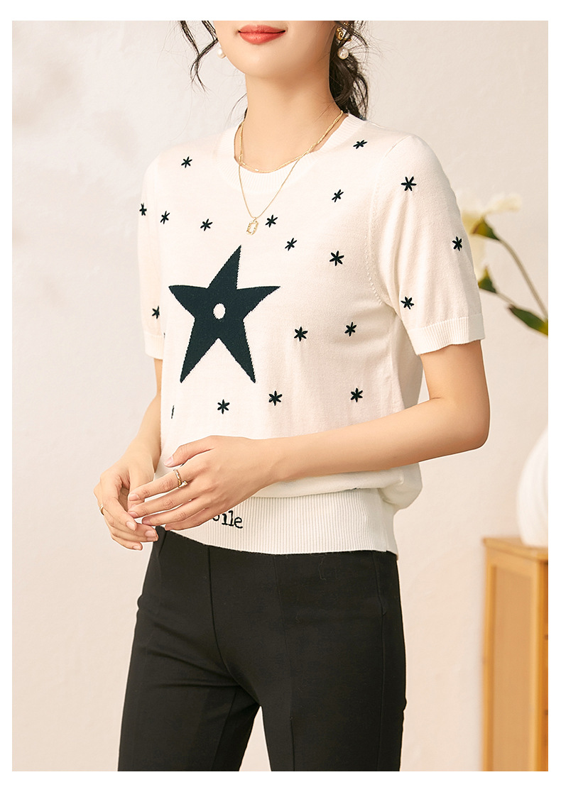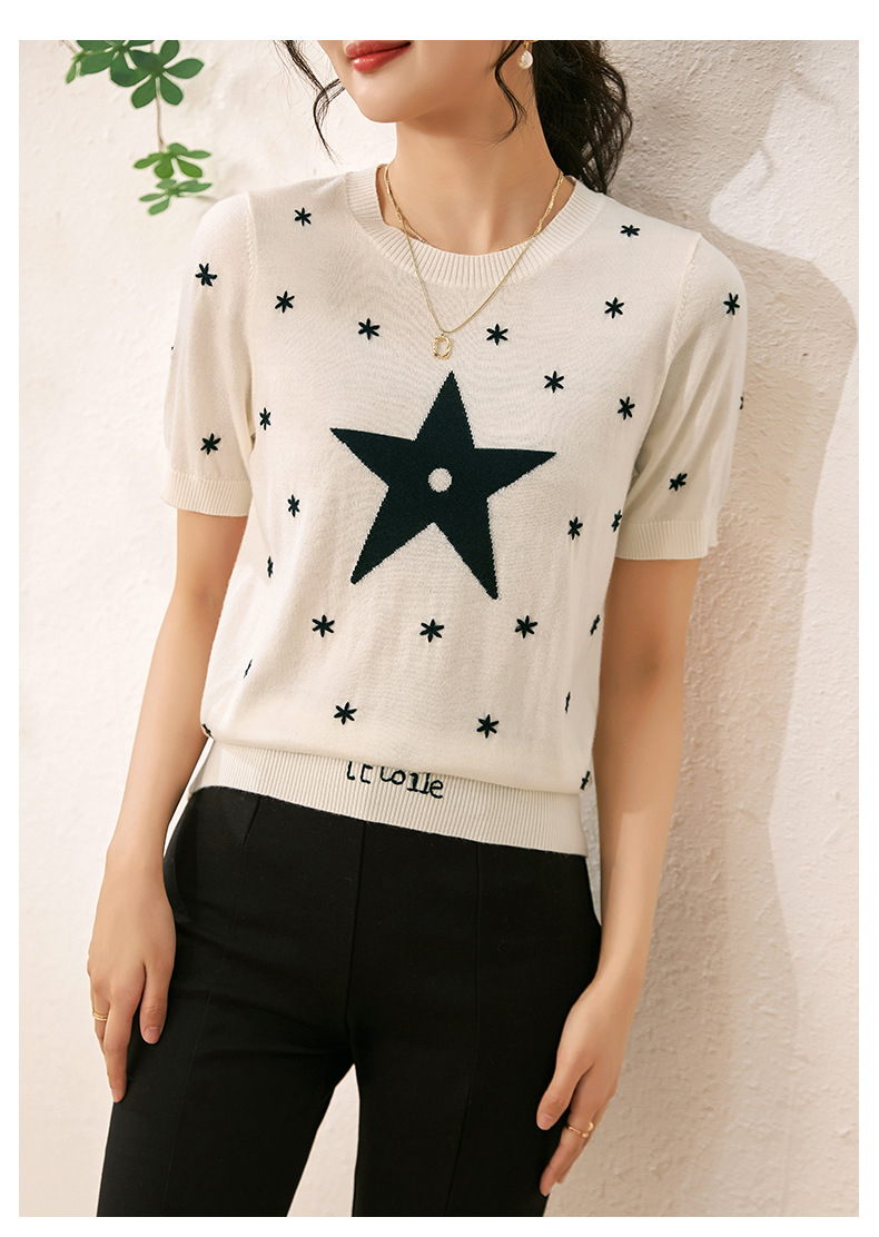 薄款短袖T恤上衣,休闲遮肉女轻奢绣花羊毛针织衫WLZD-2302210