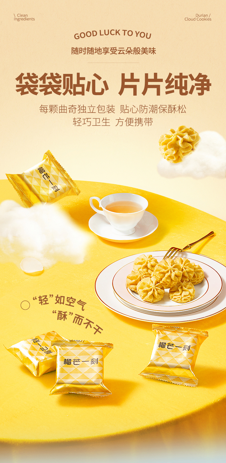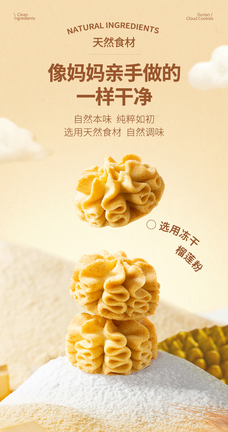 【榴芒一刻】干净配方曲奇饼干榴莲云朵曲奇200克