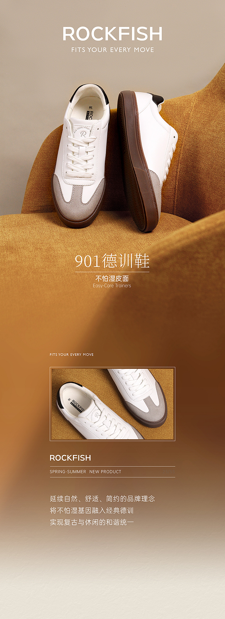 Rockfish901不怕湿复古单层皮面德训鞋男女同款休闲板鞋