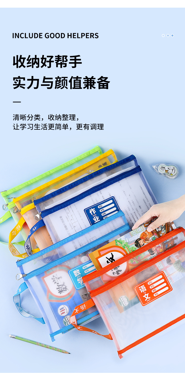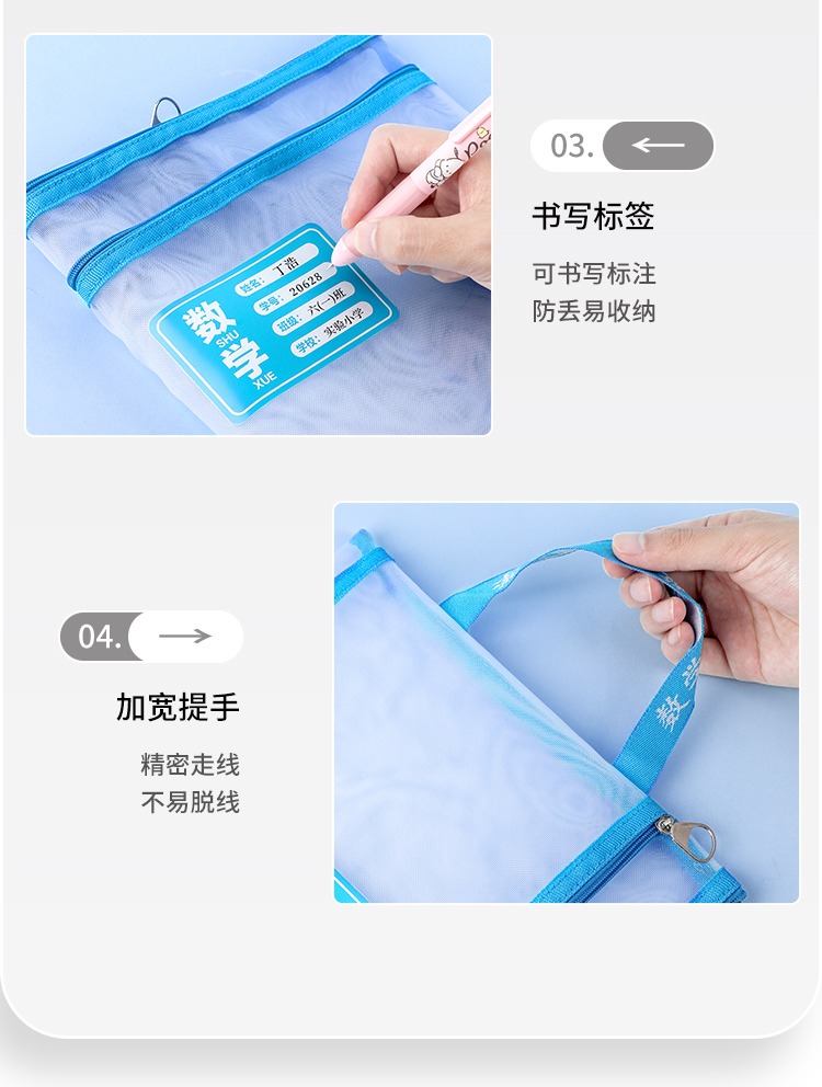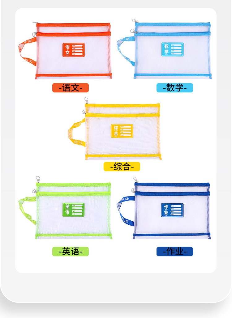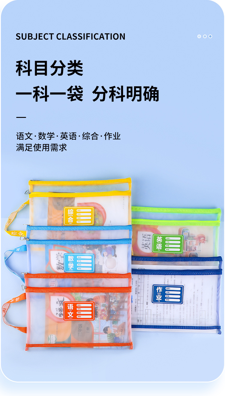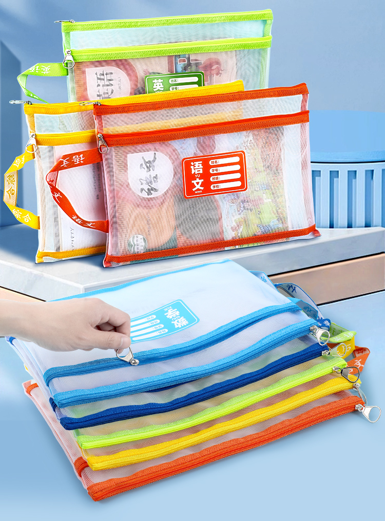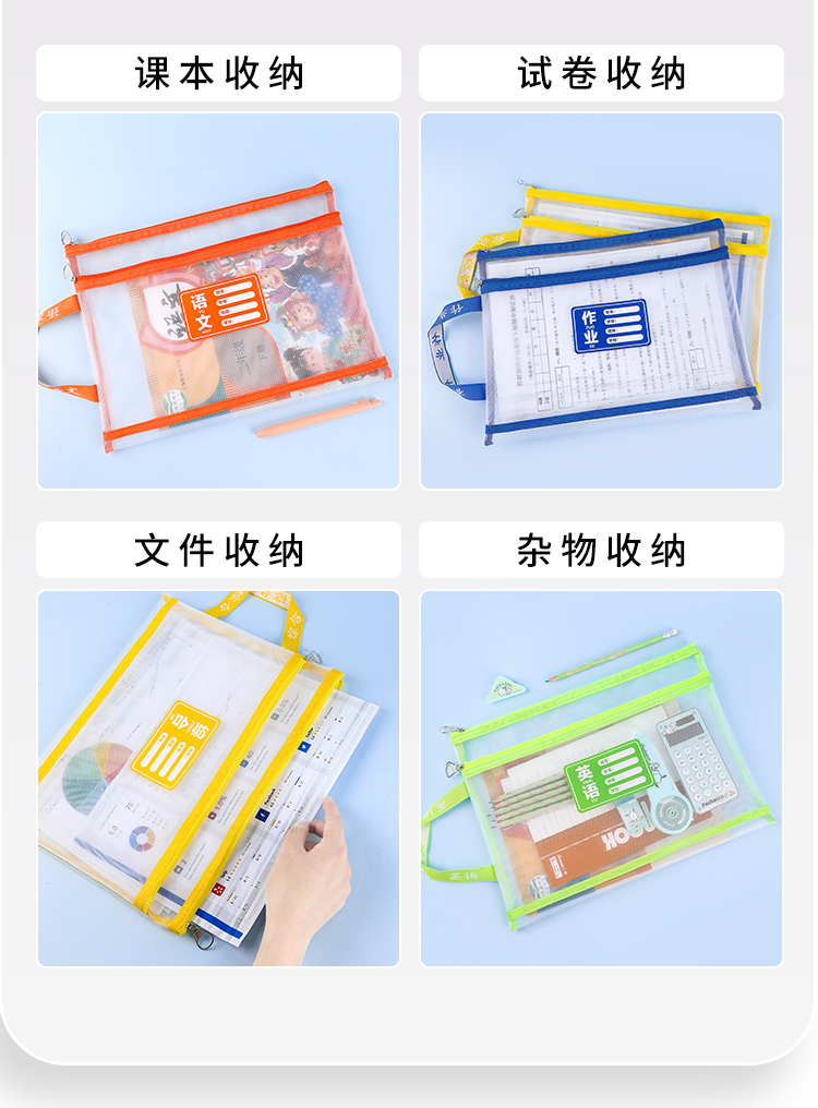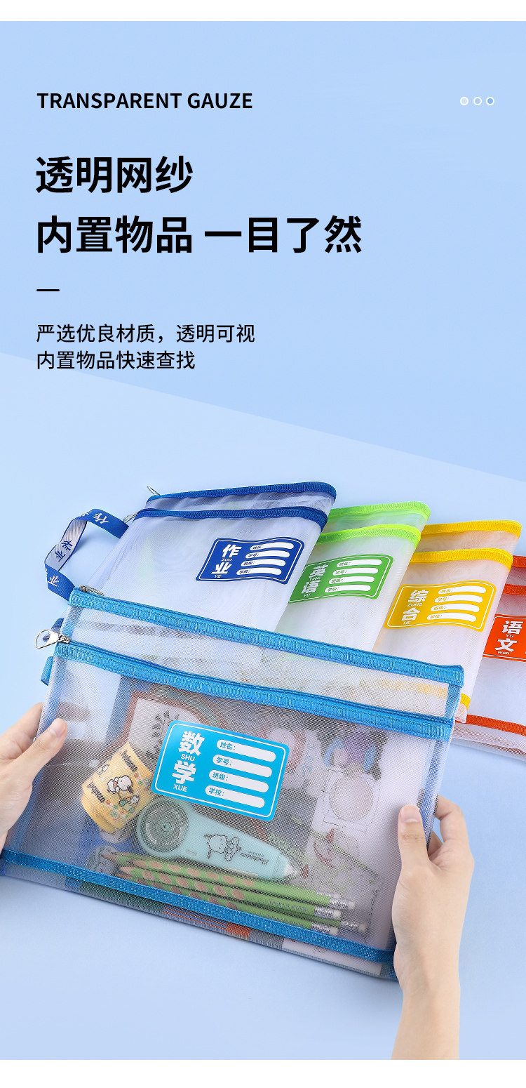 【广博】A4文件袋拉链式小学生学科分类袋书本收纳袋子语文数学作业袋科目分类袋书袋手提试卷收纳袋透明网纱