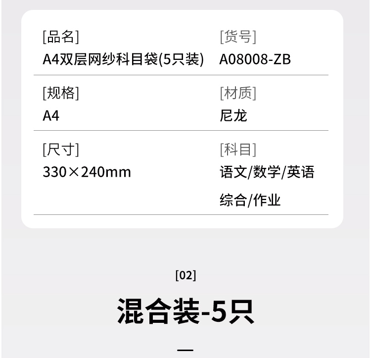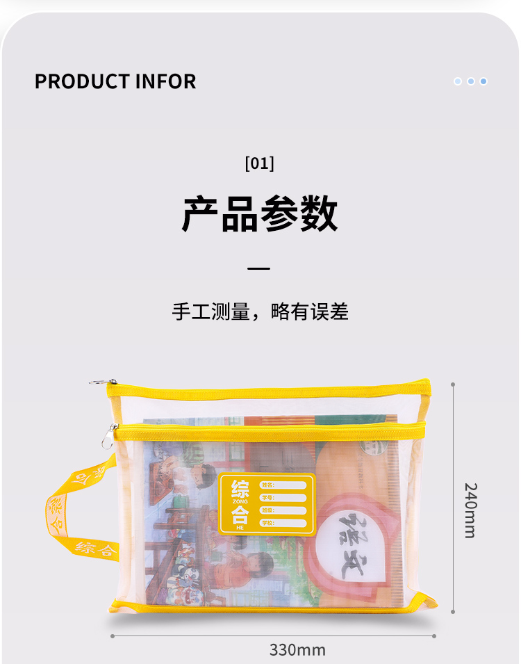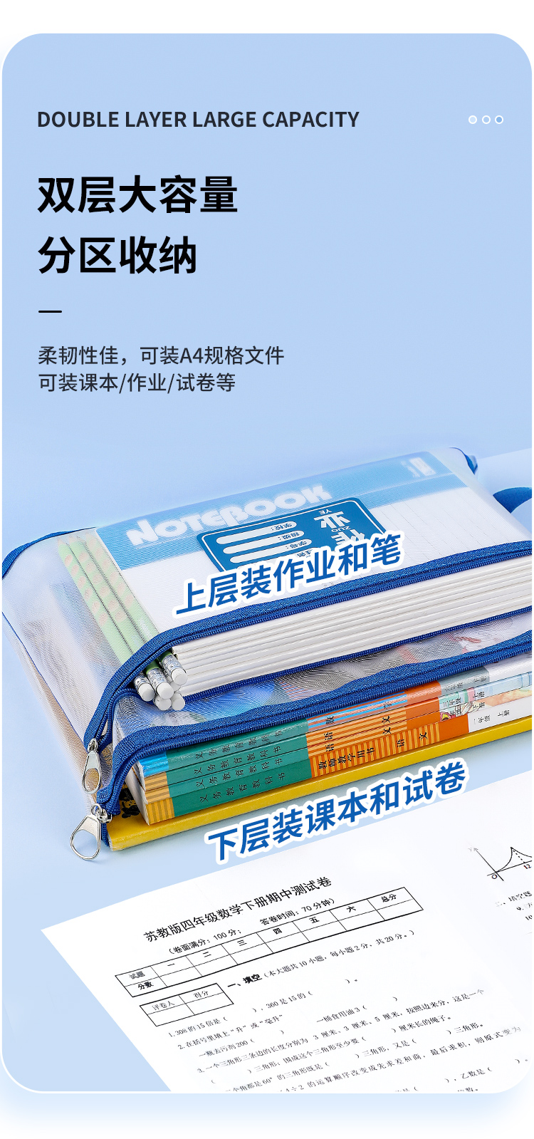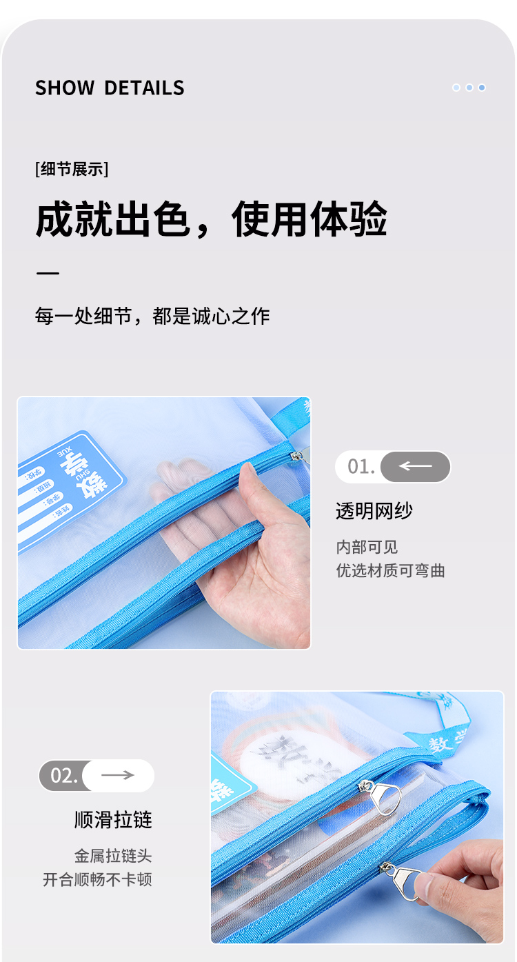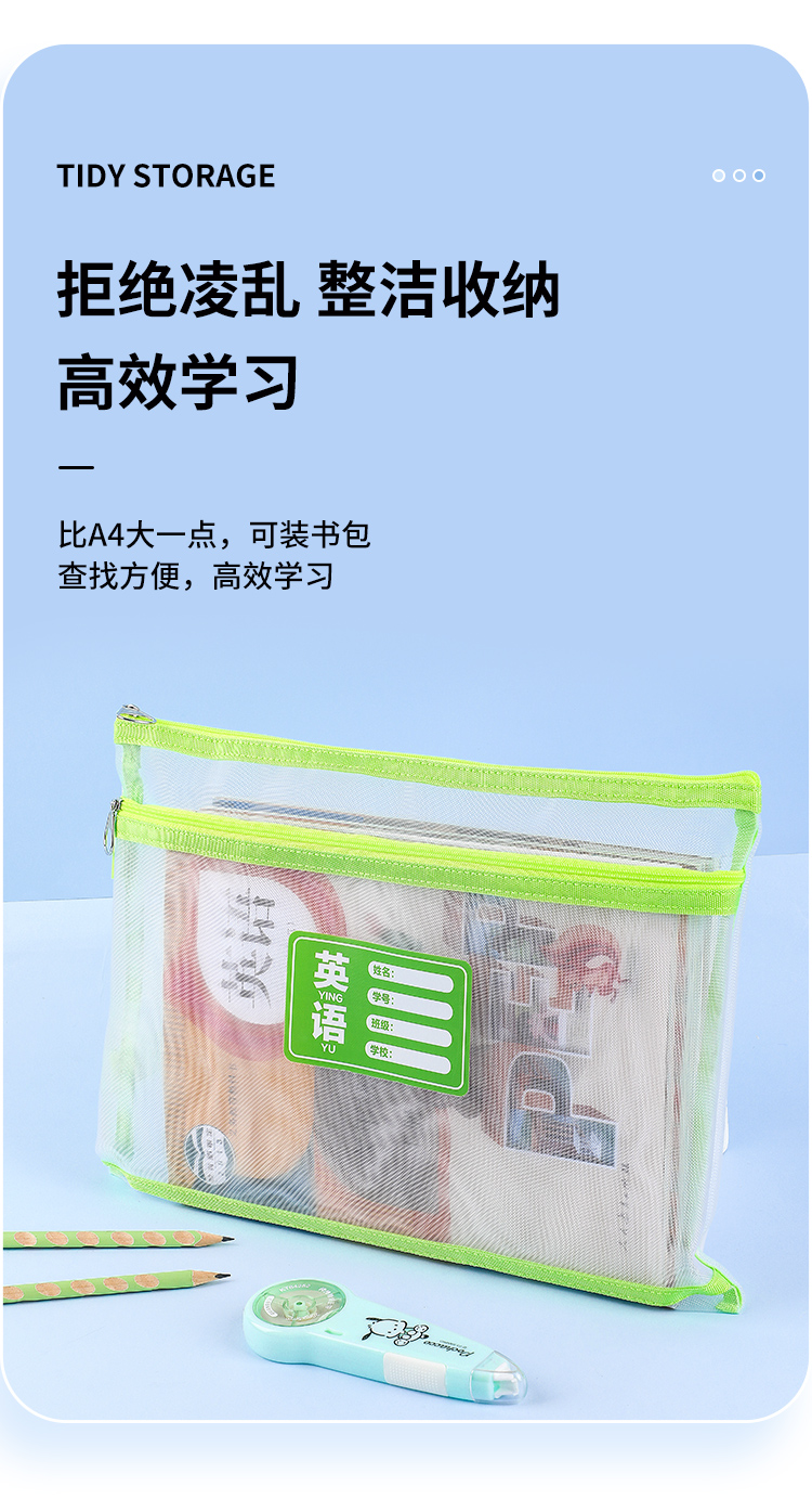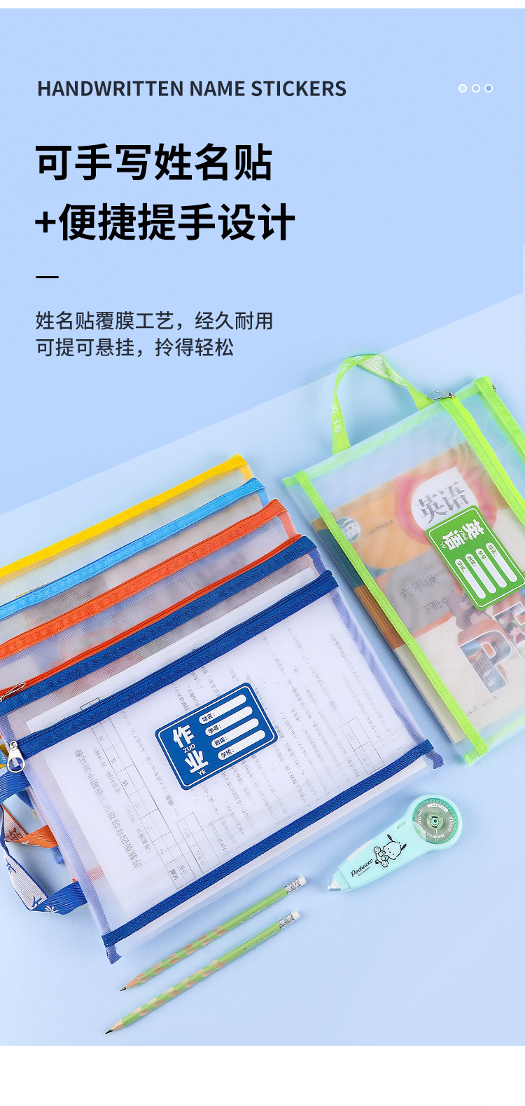 【广博】A4文件袋拉链式小学生学科分类袋书本收纳袋子语文数学作业袋科目分类袋书袋手提试卷收纳袋透明网纱