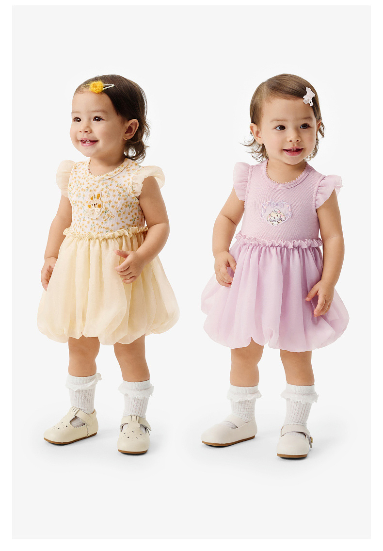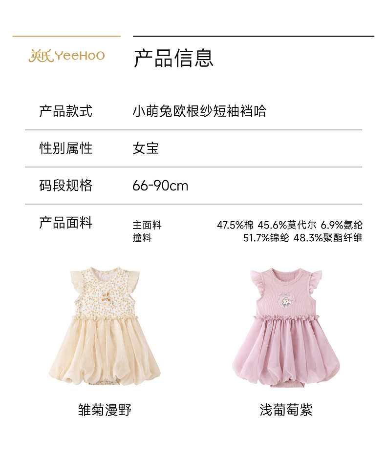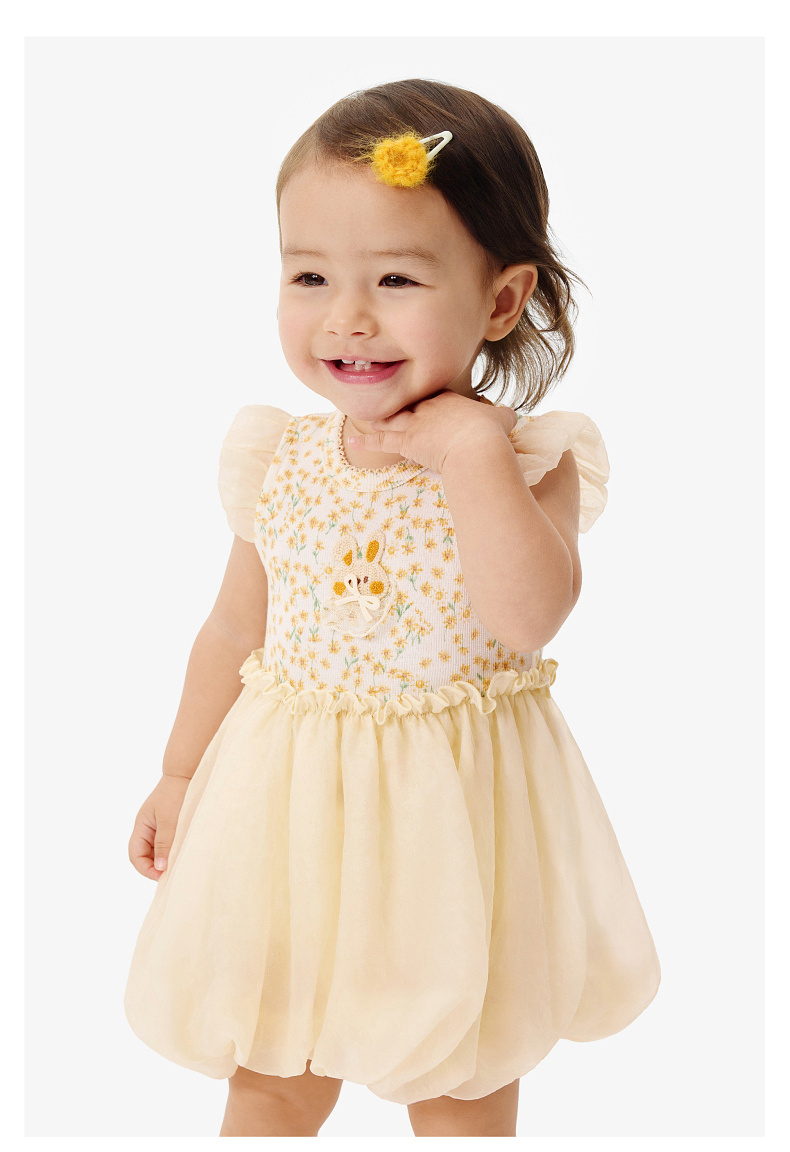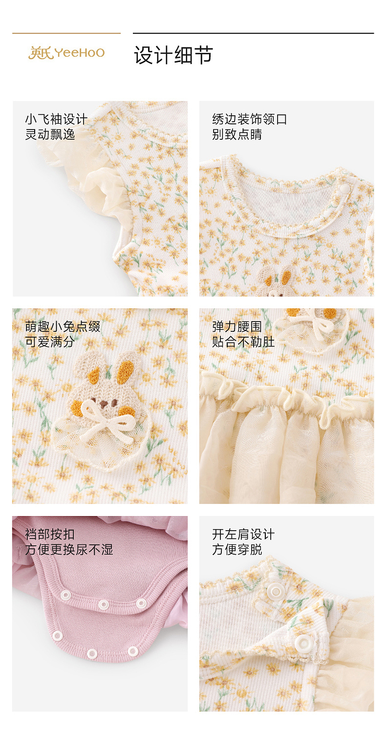【欧根纱】英氏婴儿衣服夏季女宝宝碎花卡通短袖连体衣夏季薄款蓬蓬包屁衣