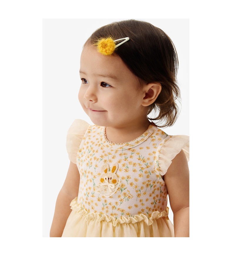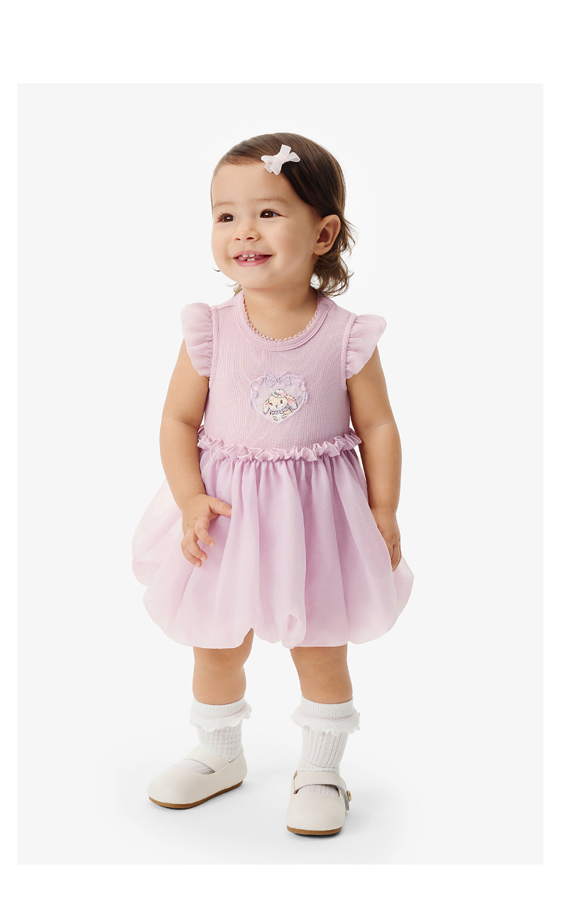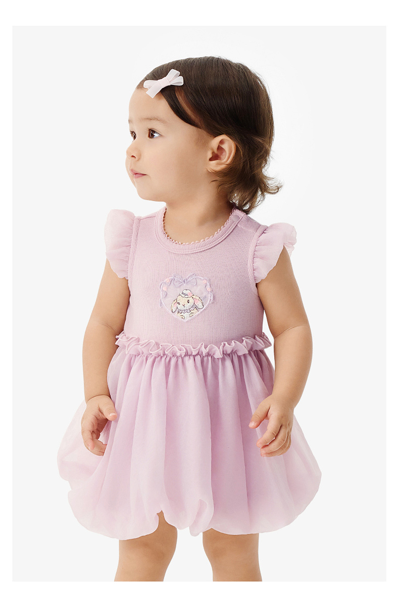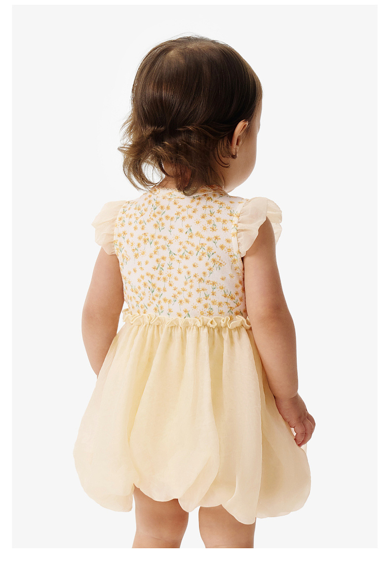 【欧根纱】英氏婴儿衣服夏季女宝宝碎花卡通短袖连体衣夏季薄款蓬蓬包屁衣