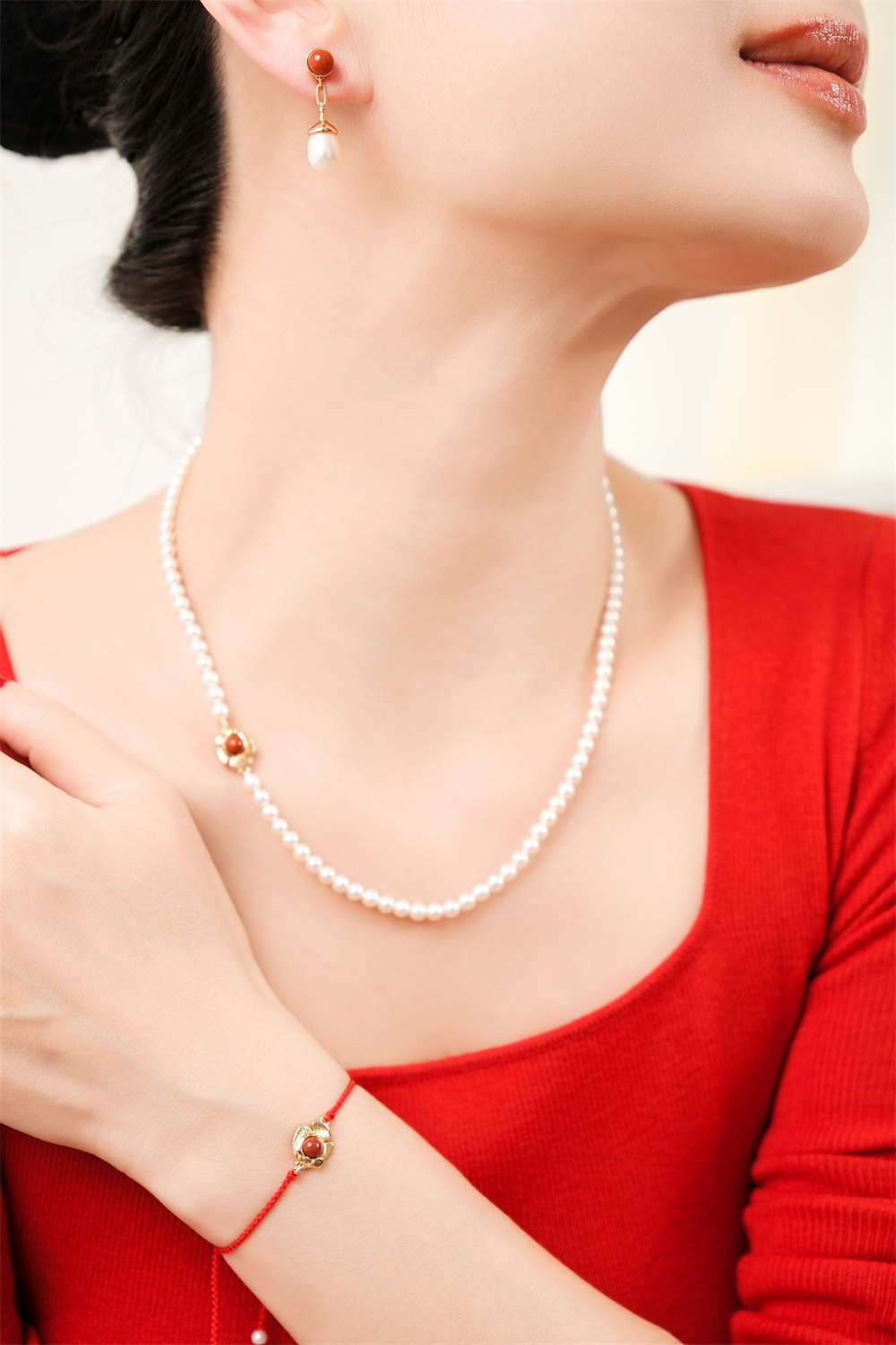 pearl moments珍刻 年年有鱼(南红小鱼) 小鱼儿4号baby珍珠项链