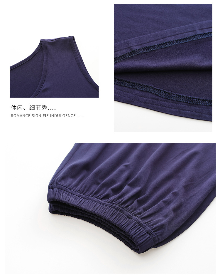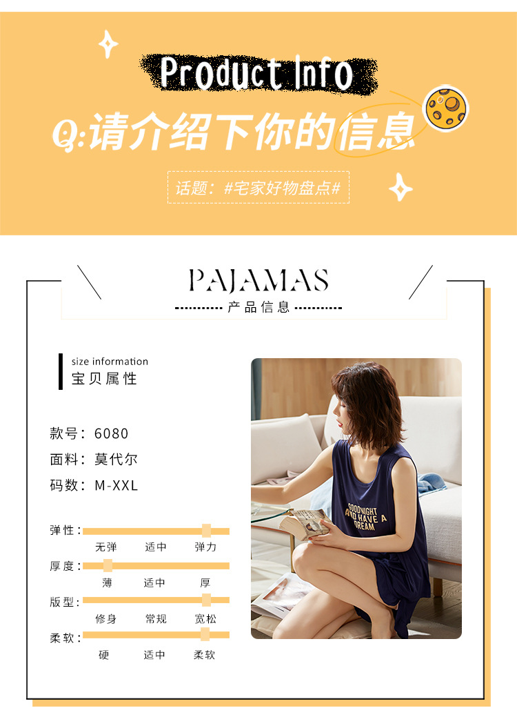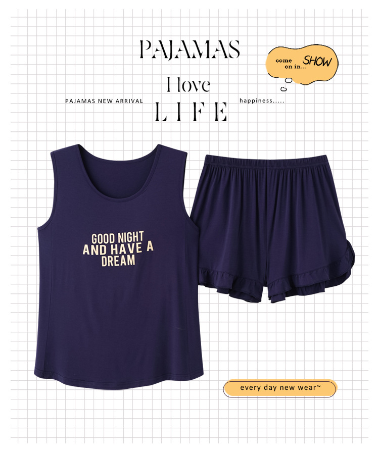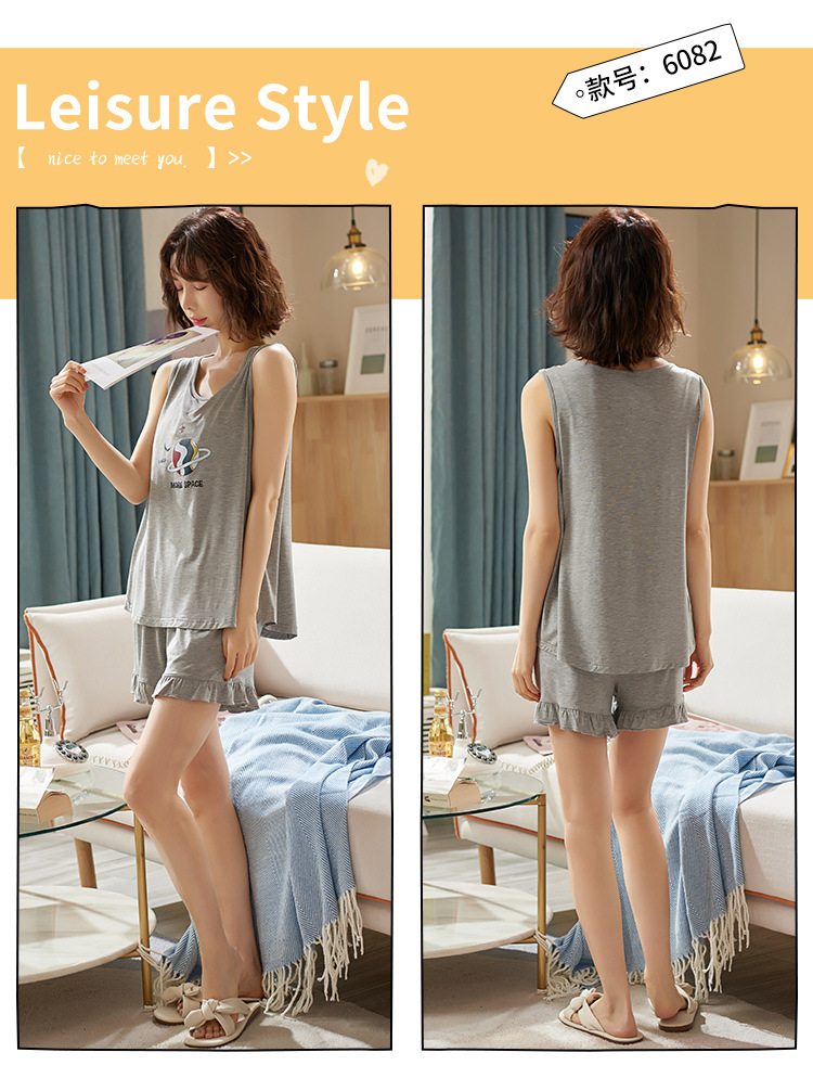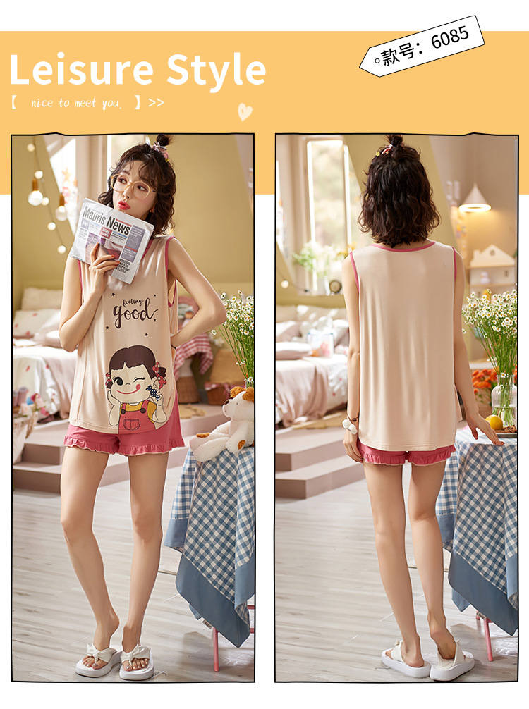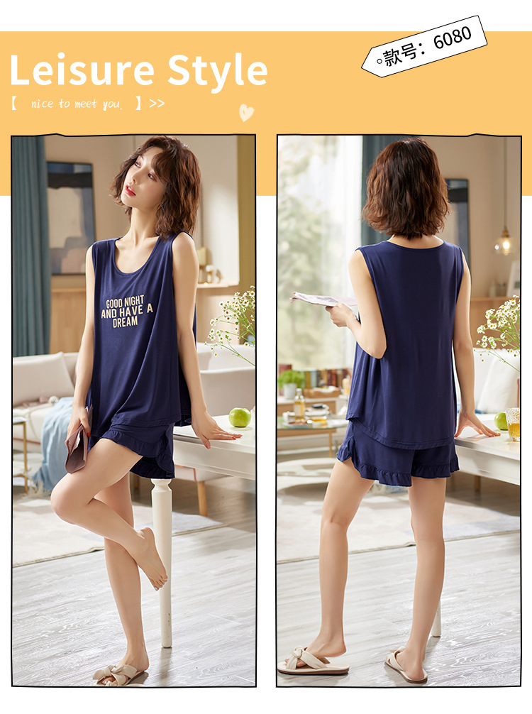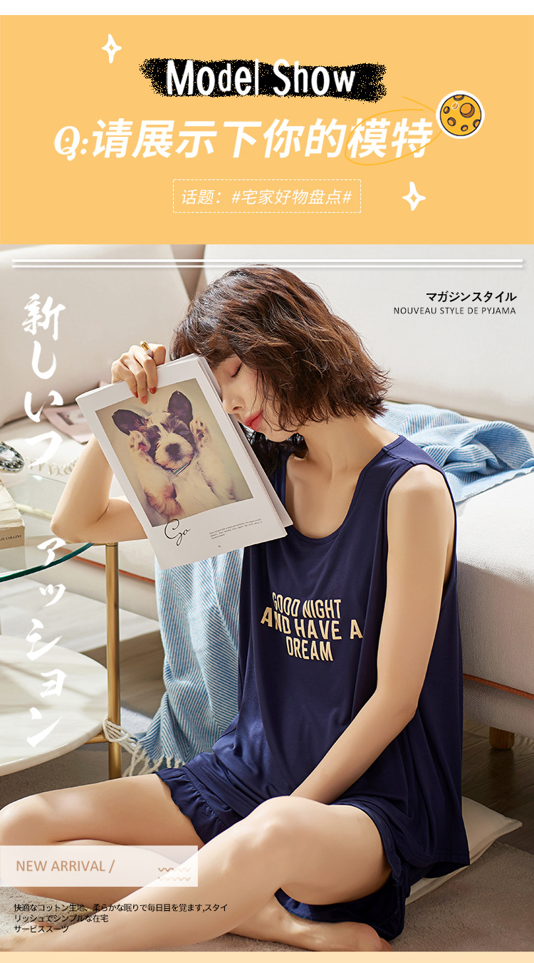雀说睡衣女夏款新款莫代尔无袖背心短裤套装带胸垫宽松休闲家居服套装AL6080