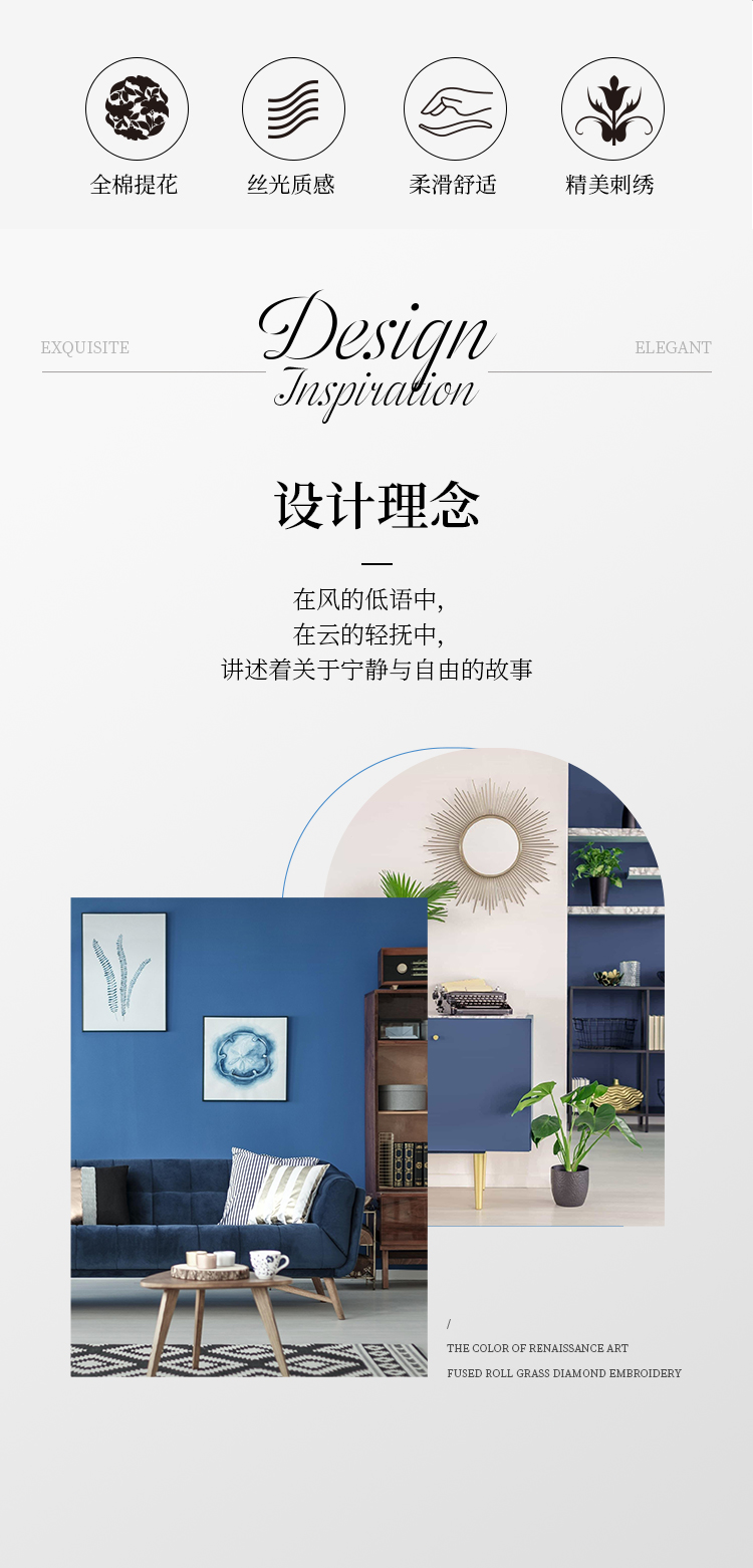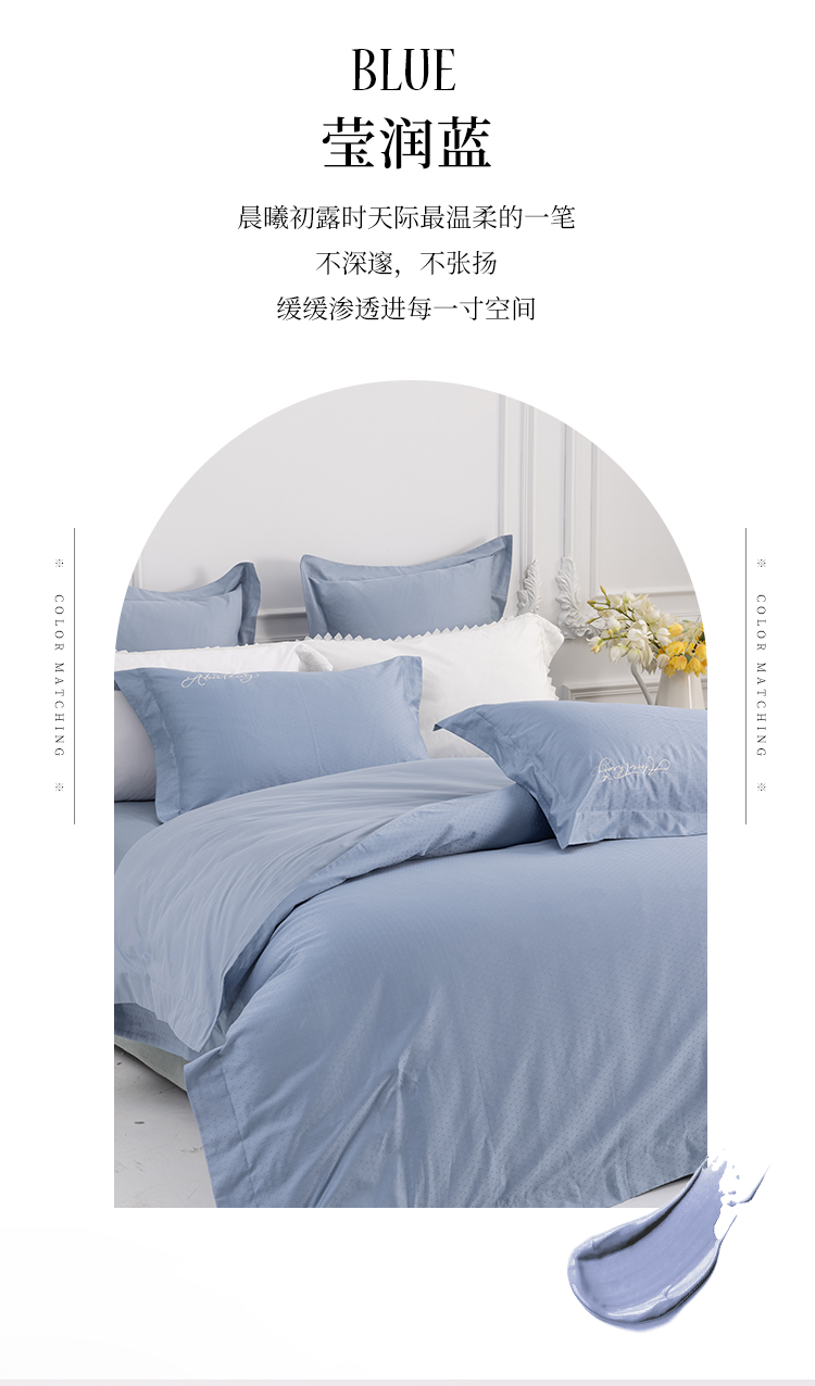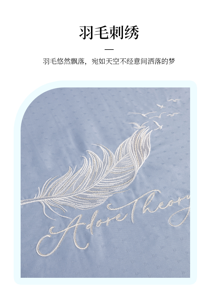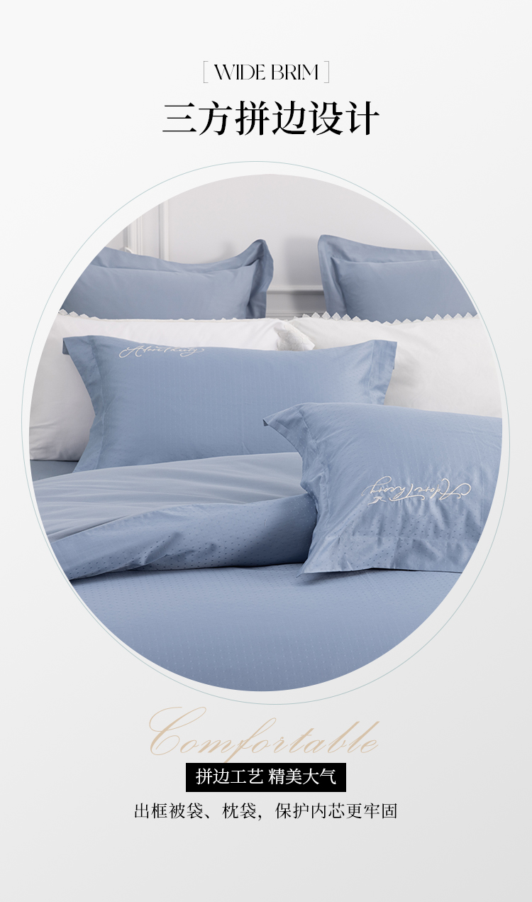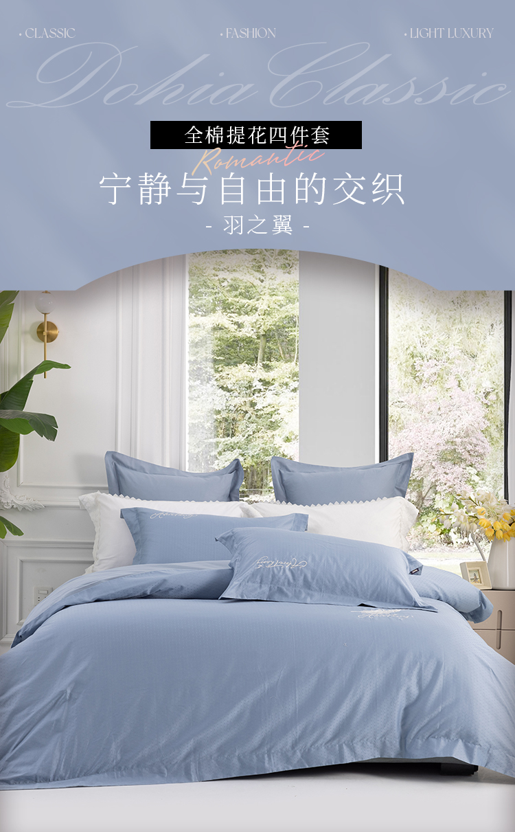 多喜爱 全棉提花四件套 羽之翼 丝光质感 柔滑舒适精美刺绣 莹润蓝亲肤纯棉立体提花经典套件提花套件三方拼一边设计礼盒包装