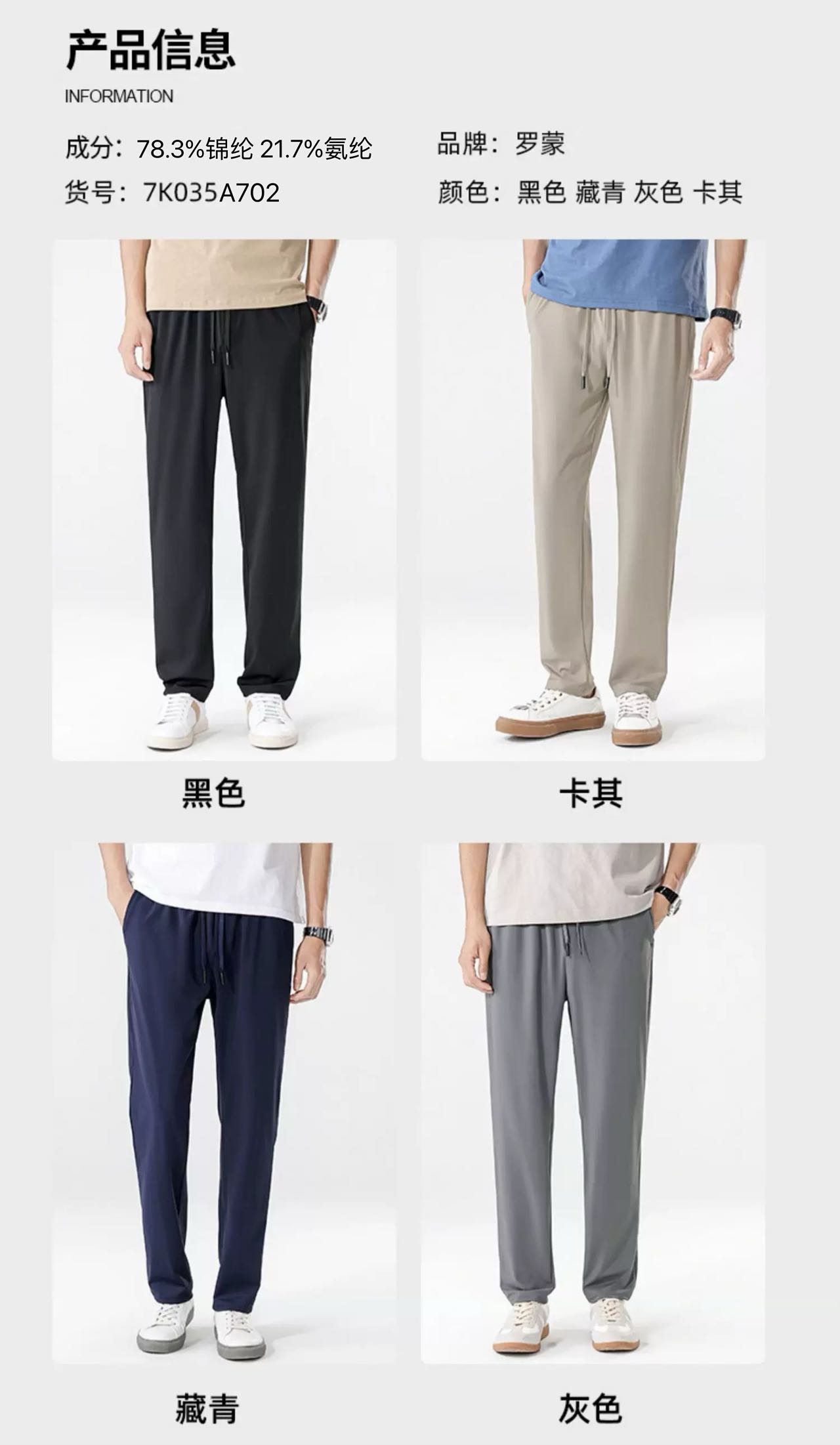 【季末清仓 99元/2条】罗蒙ROMON·凉感冰丝休闲裤(选2件加入购物车自动减,拍1件不发)