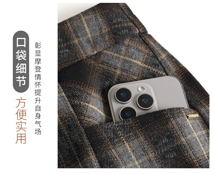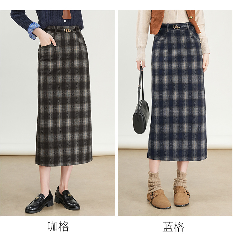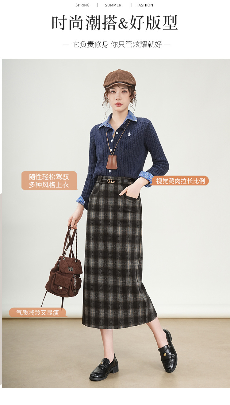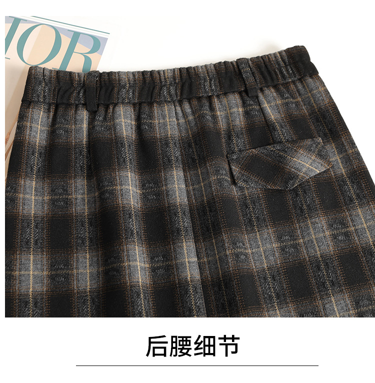QYM 95837-Y格子直筒半身裙高腰开衩一步裙包臀裙 商品图4