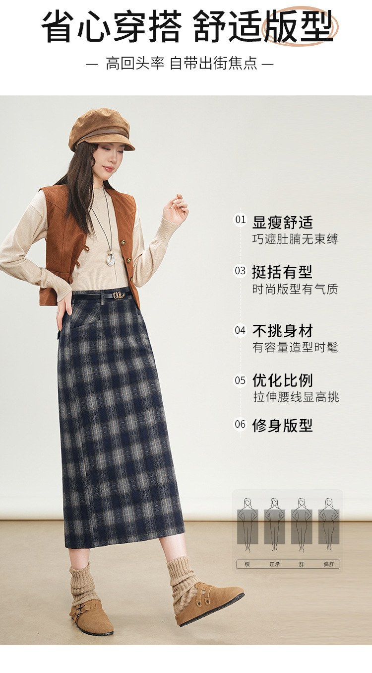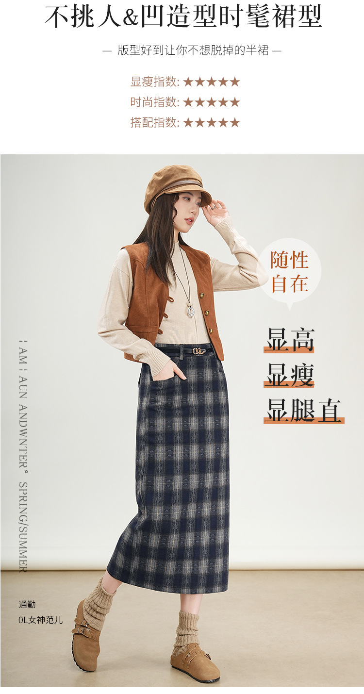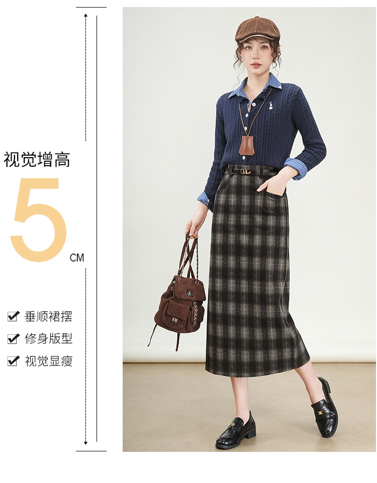 QYM 95837-Y格子直筒半身裙高腰开衩一步裙包臀裙 商品图3