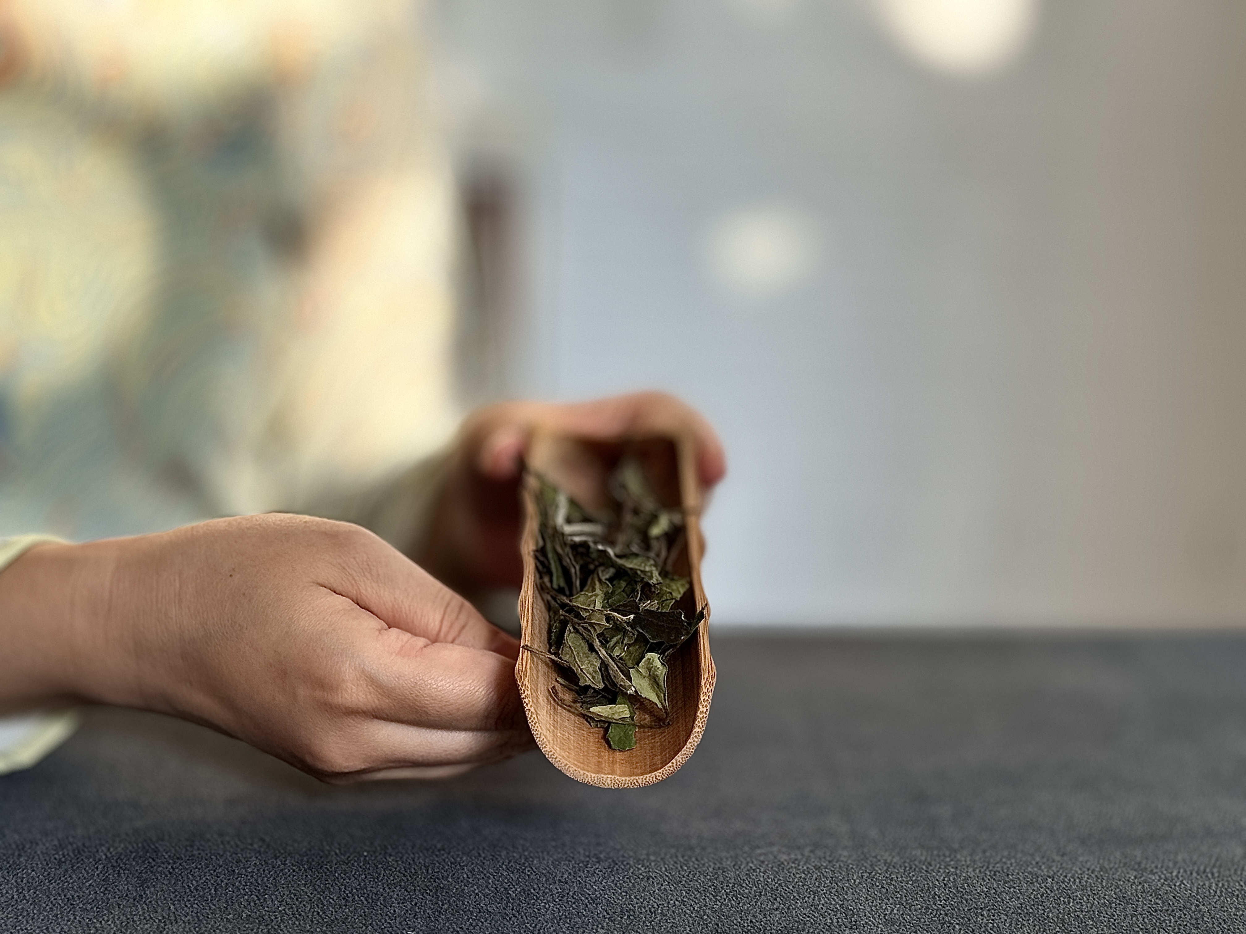 它随着内质的释放,被沸水从春寿眉的叶片与芽头上被冲刷下来,落入茶汤中,成为这块鹅黄色“茶琥珀”中的,那些永恒的繁星点点。