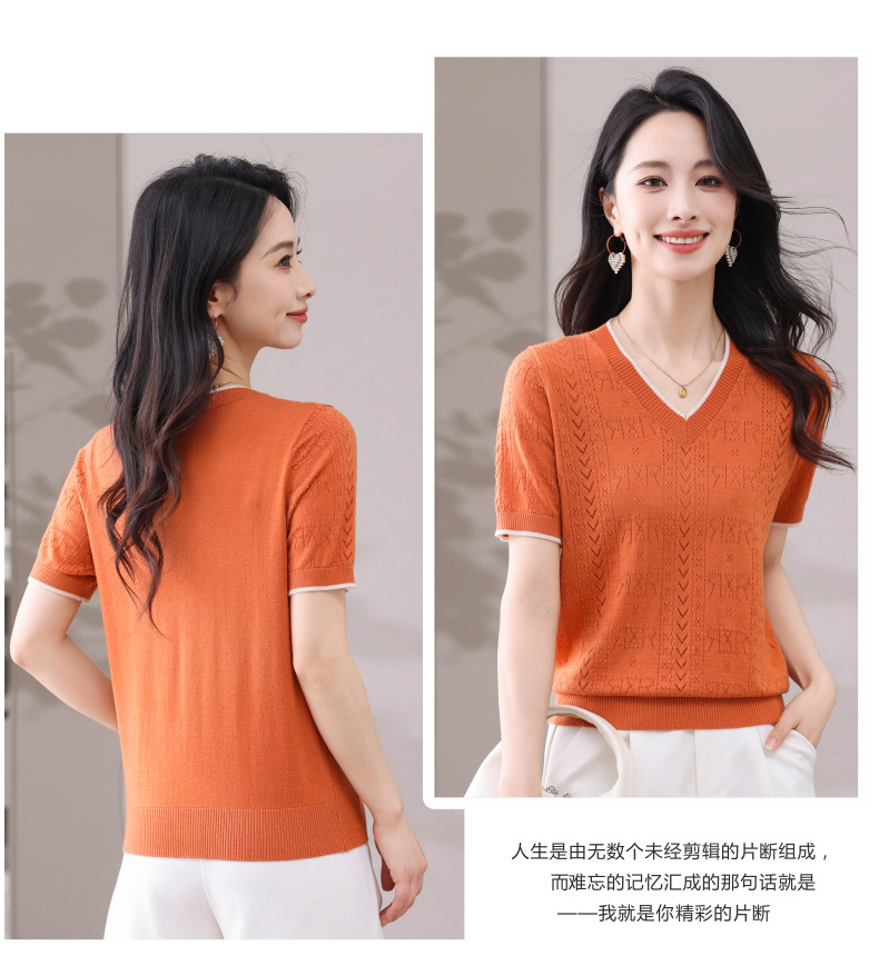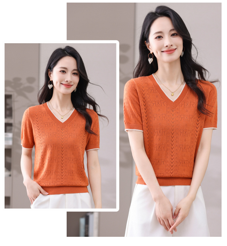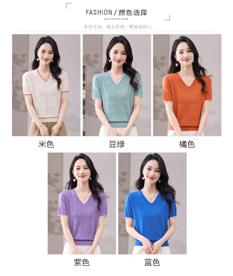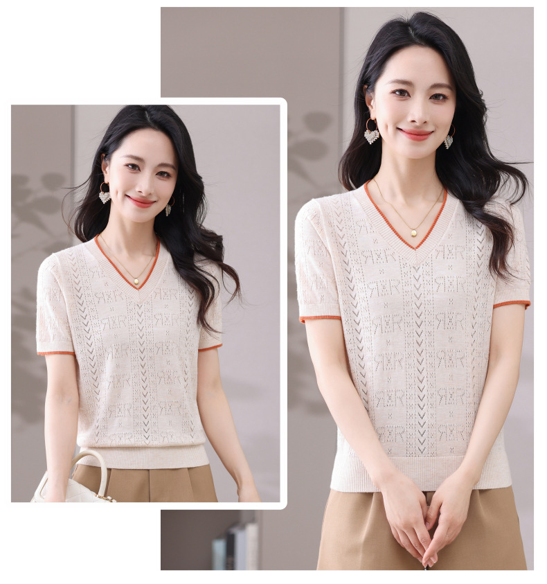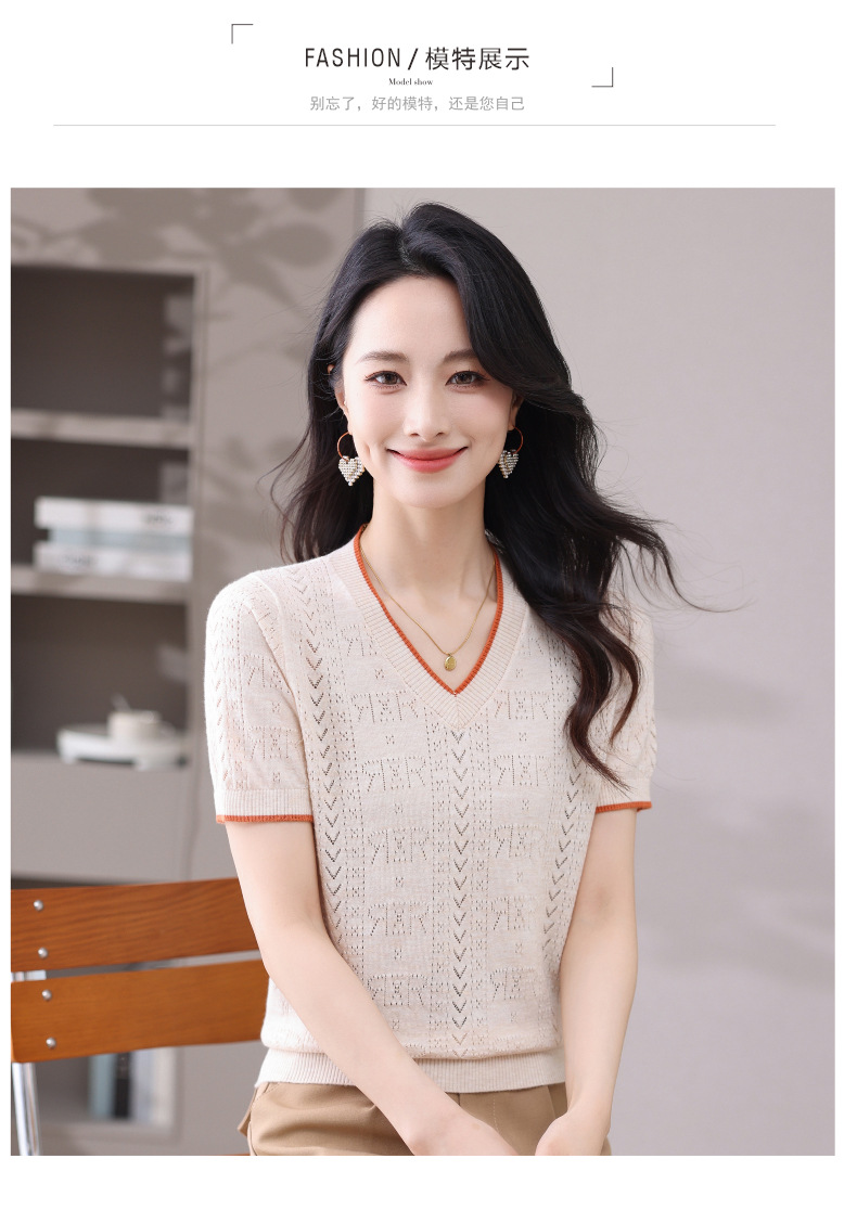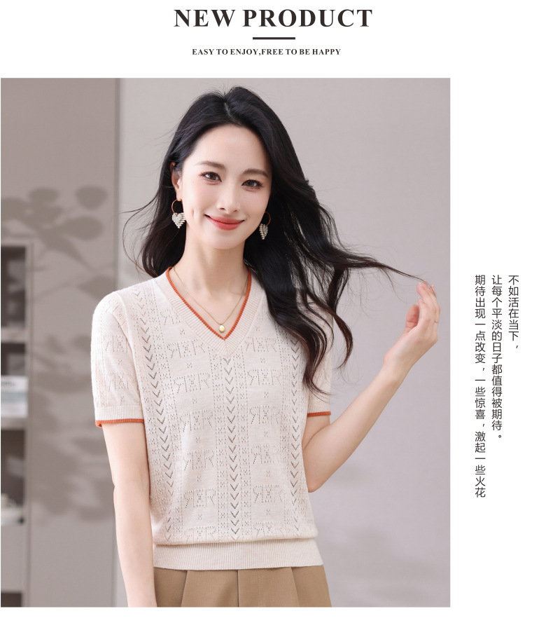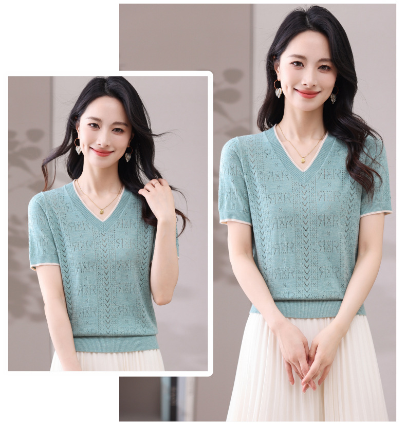 CC-103-97862 v领冰丝针织衫t恤女短袖夏季2025新款宽松薄款打底上衣