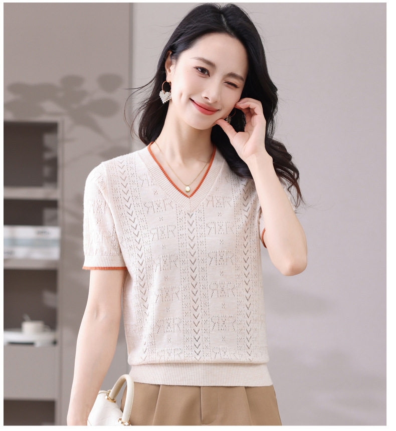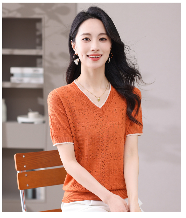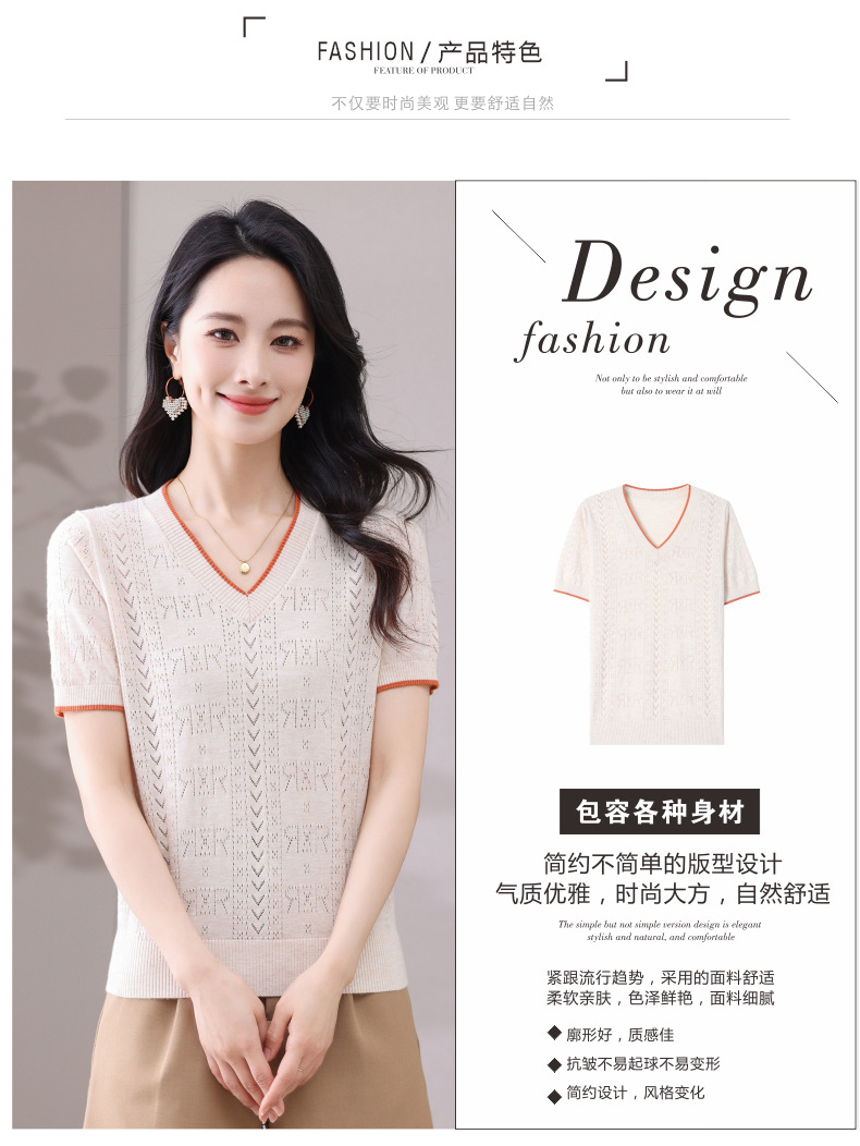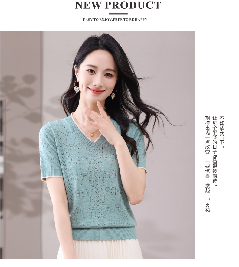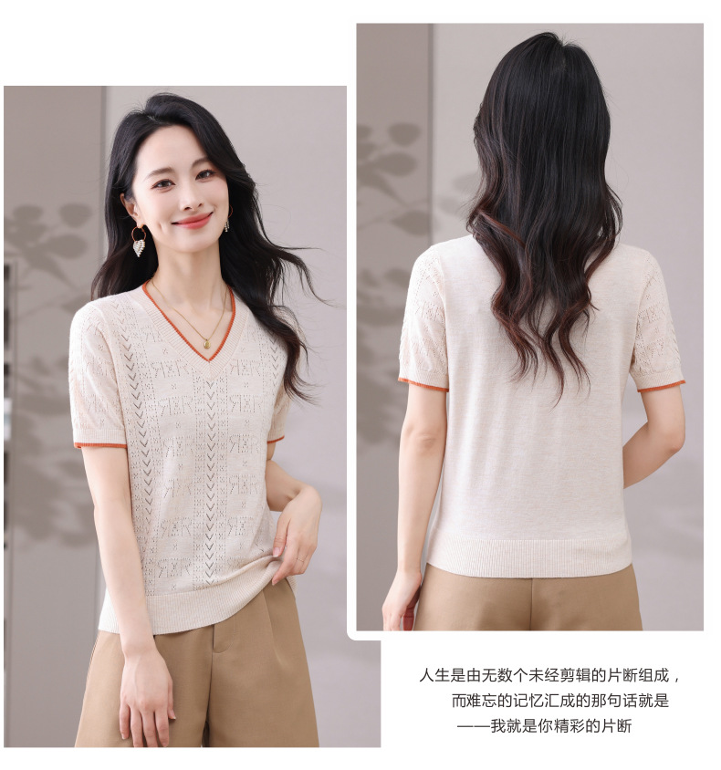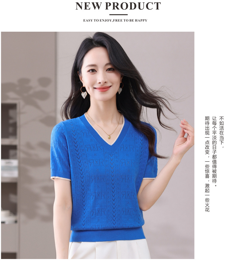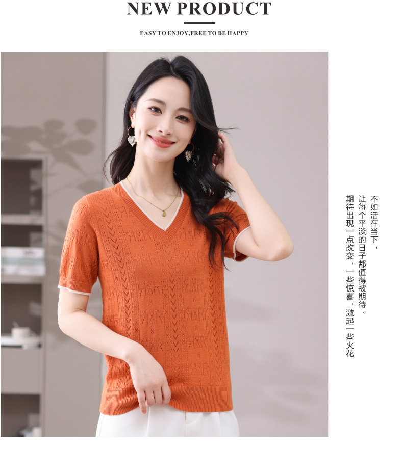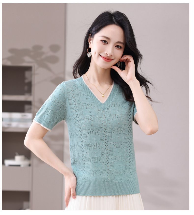 CC-103-97862 v领冰丝针织衫t恤女短袖夏季2025新款宽松薄款打底上衣