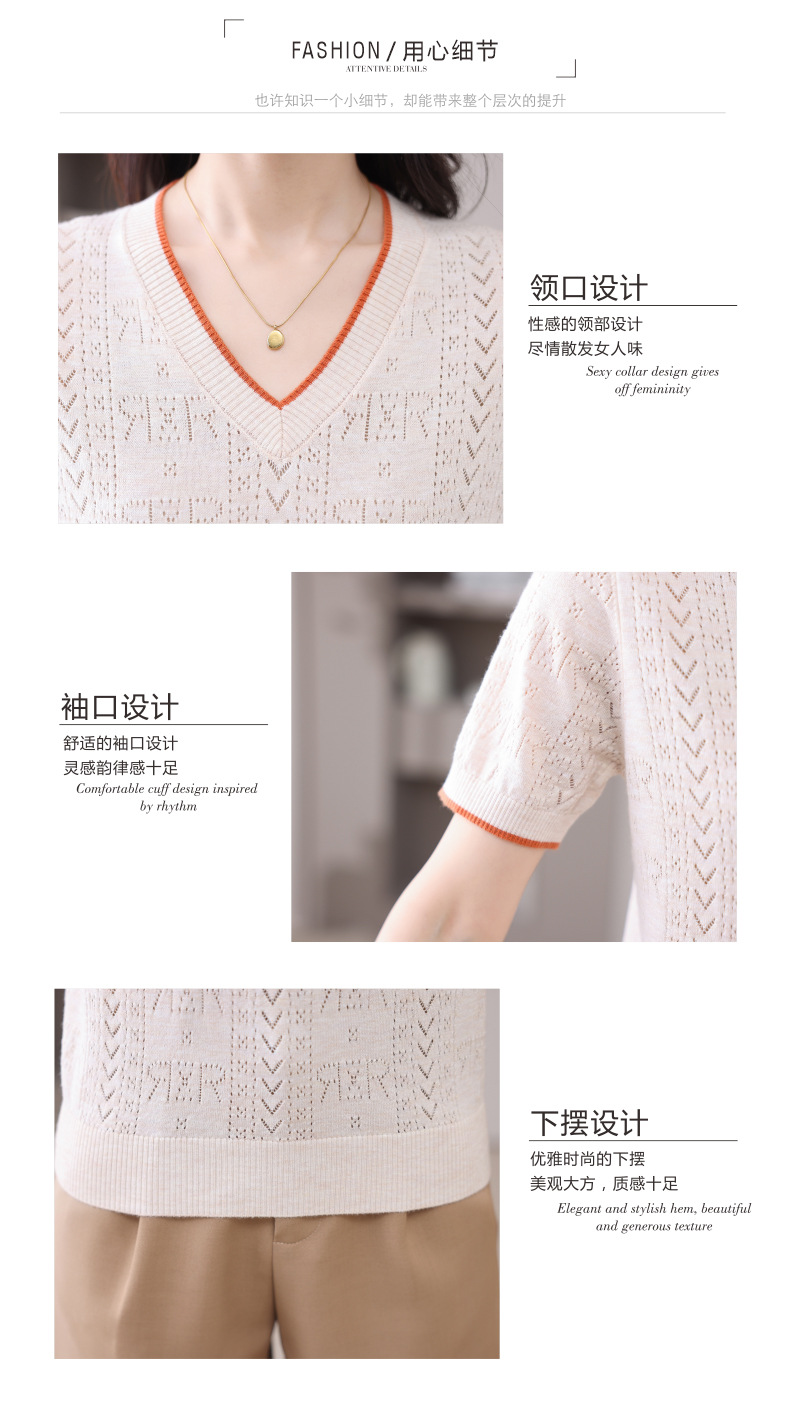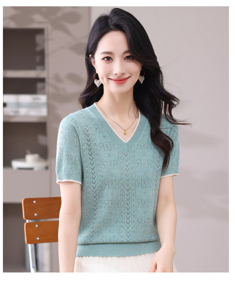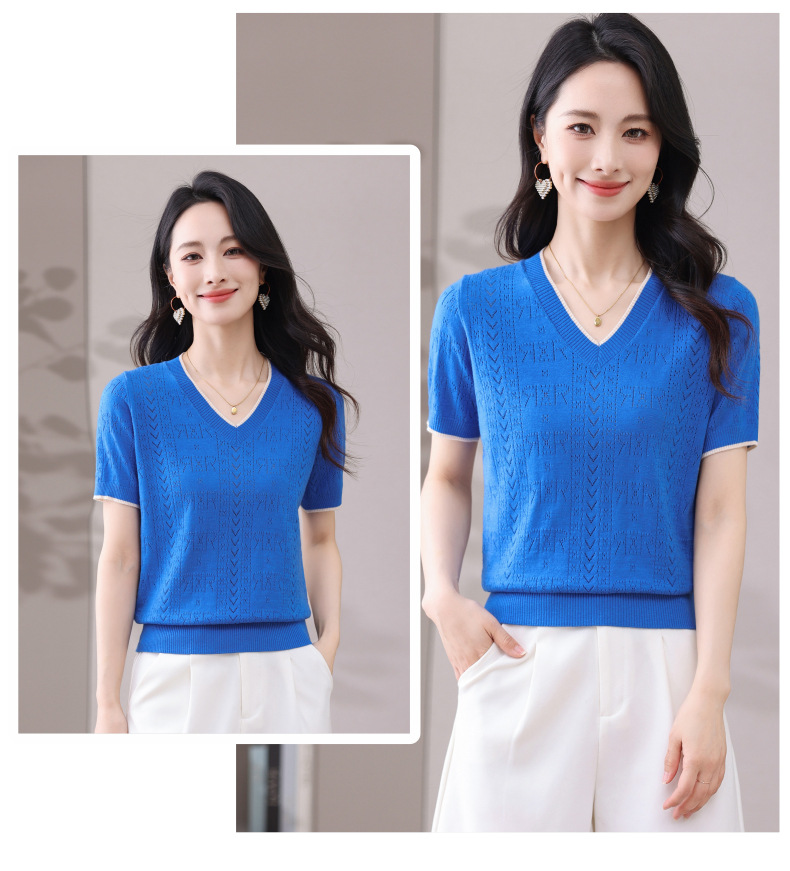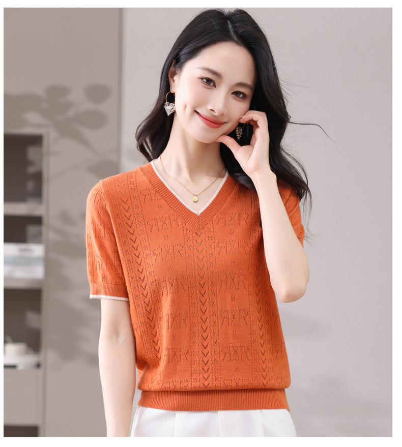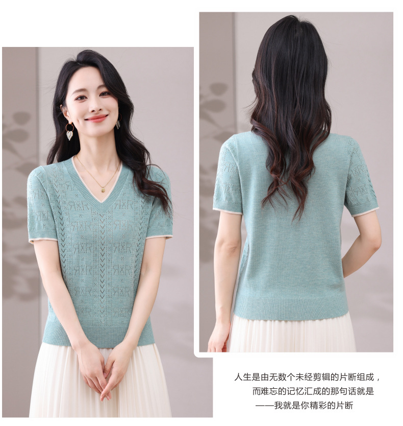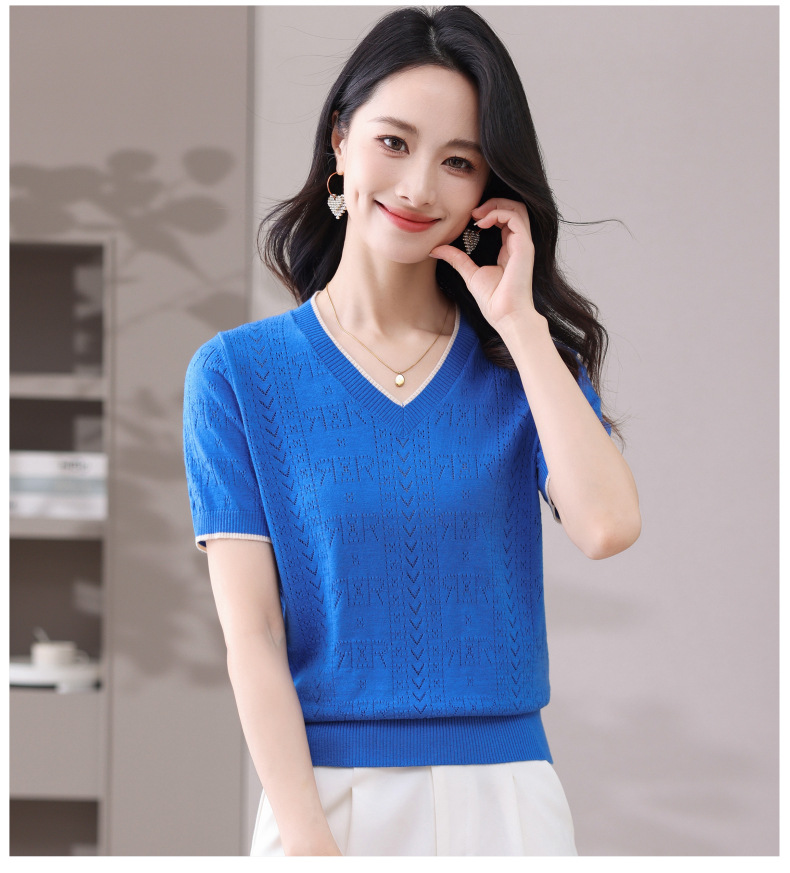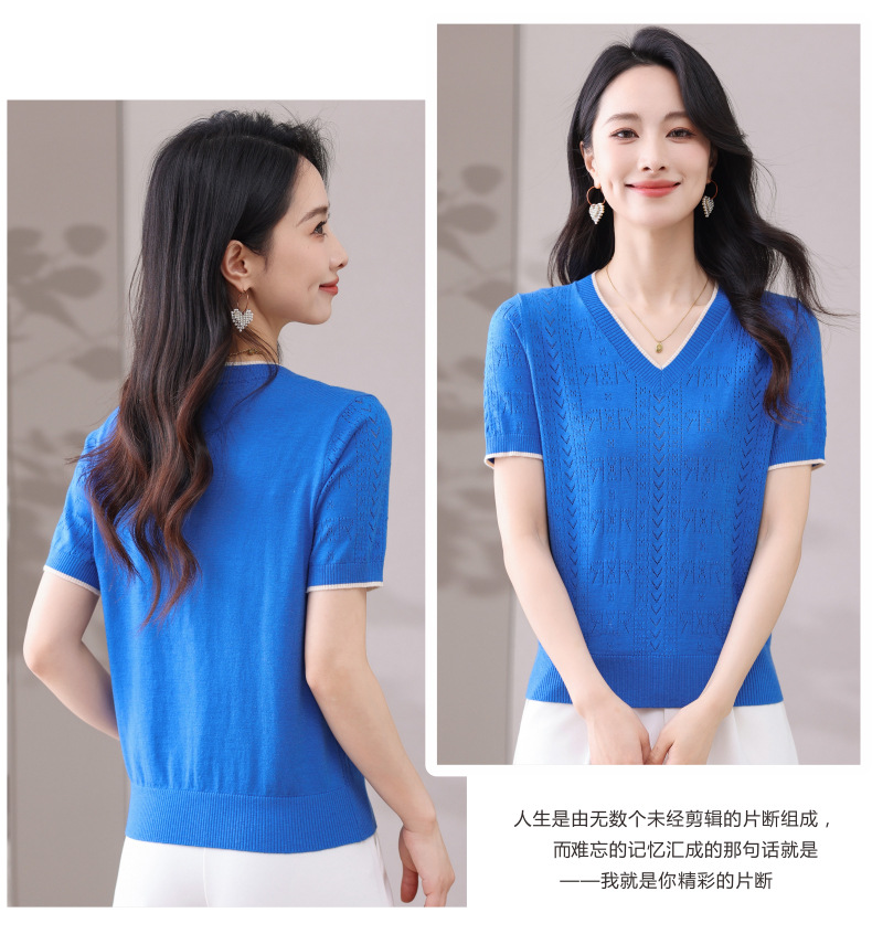 CC-103-97862 v领冰丝针织衫t恤女短袖夏季2025新款宽松薄款打底上衣