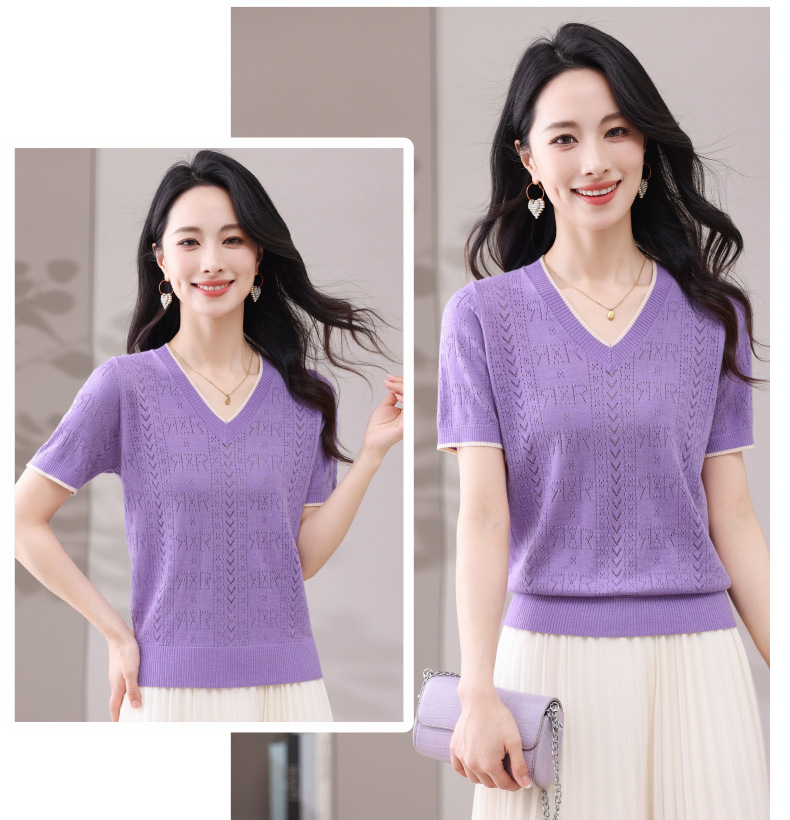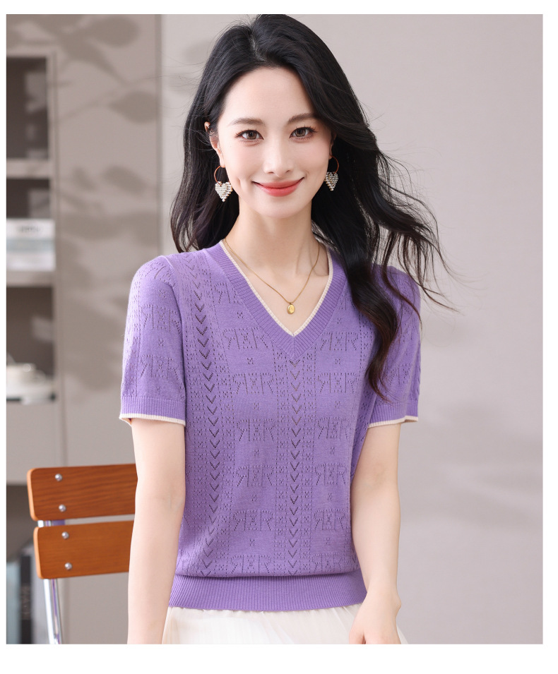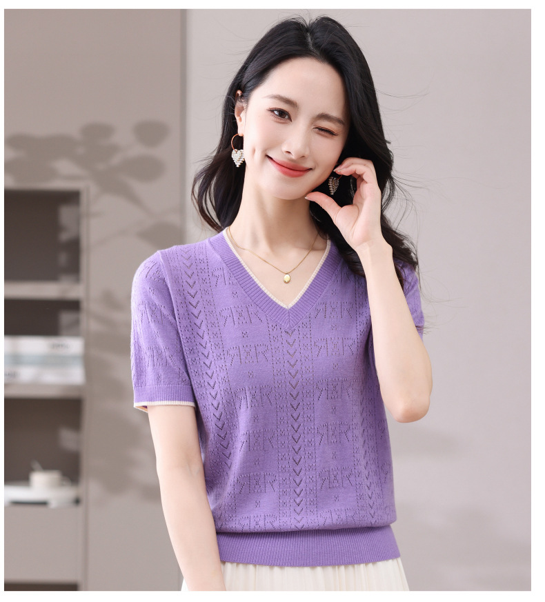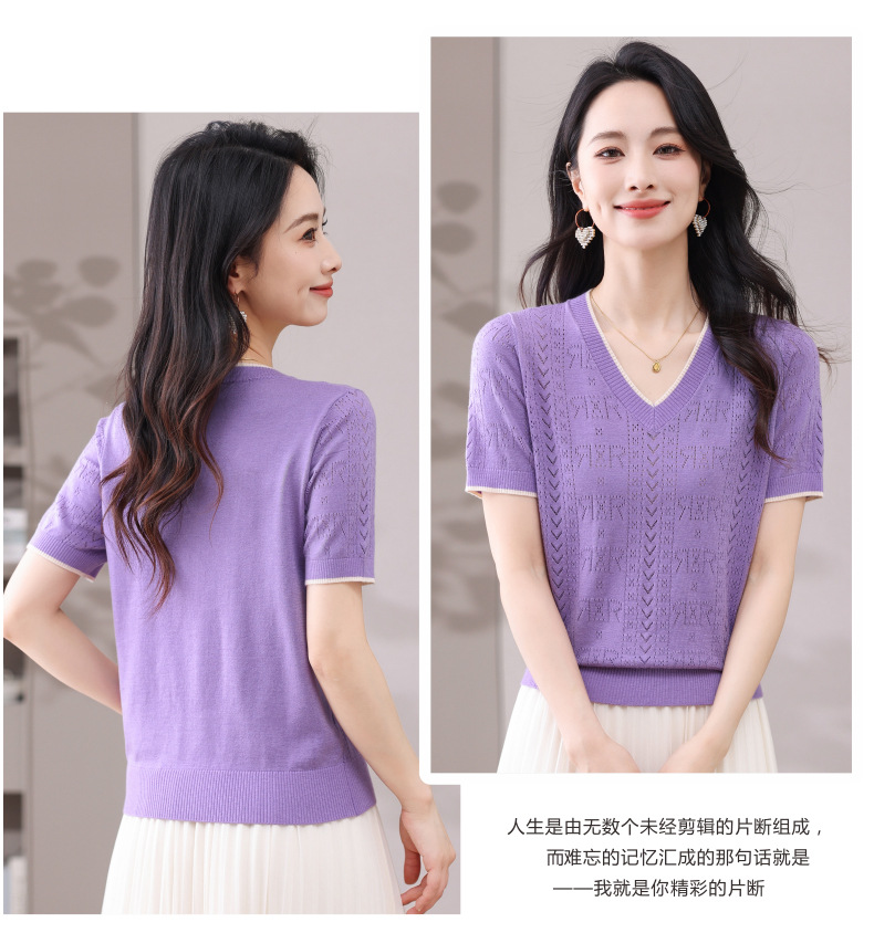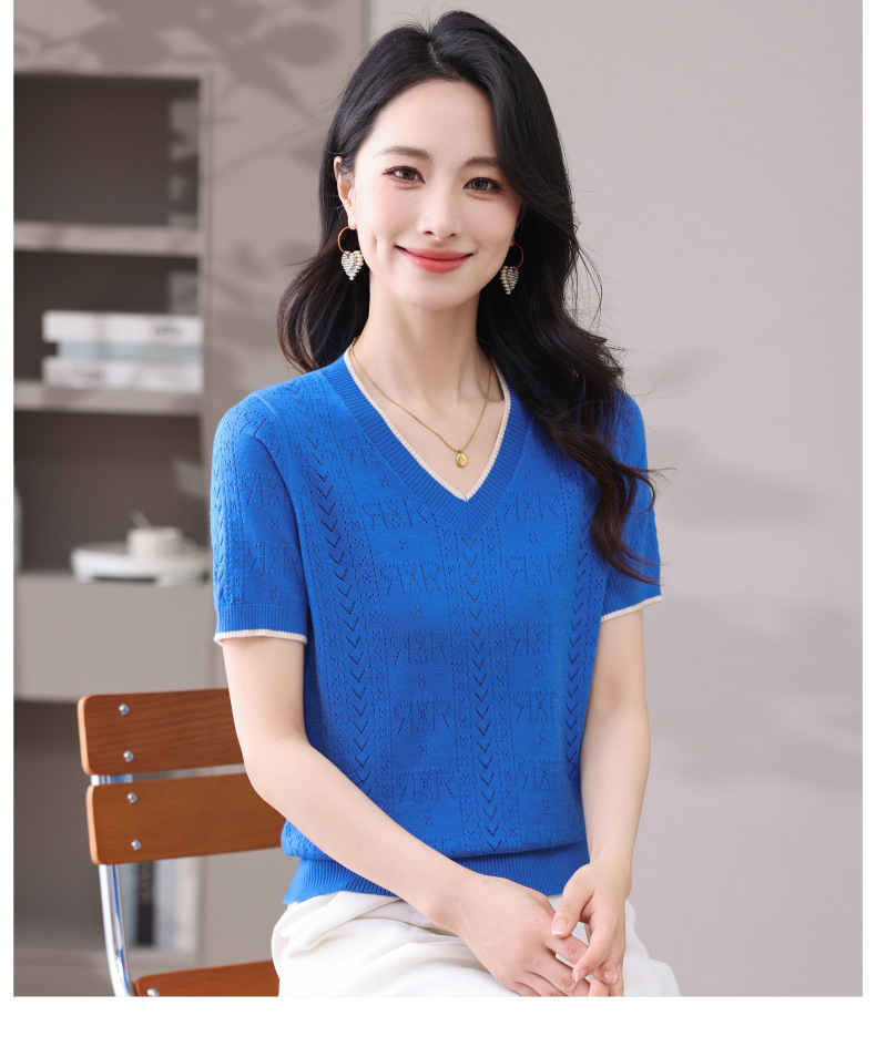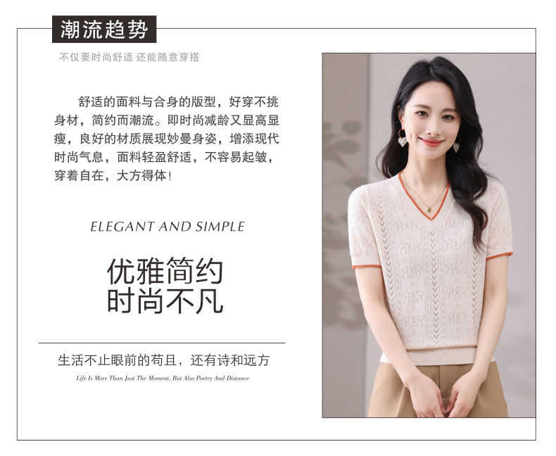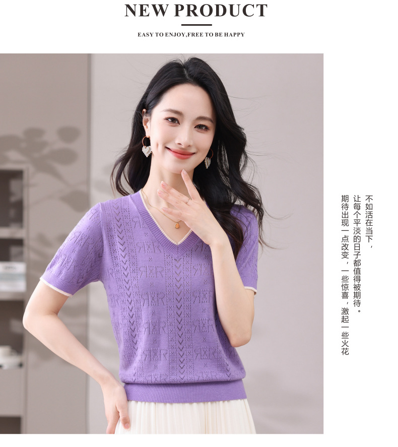 CC-103-97862 v领冰丝针织衫t恤女短袖夏季2025新款宽松薄款打底上衣
