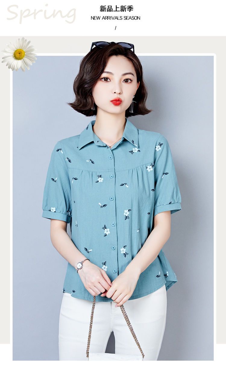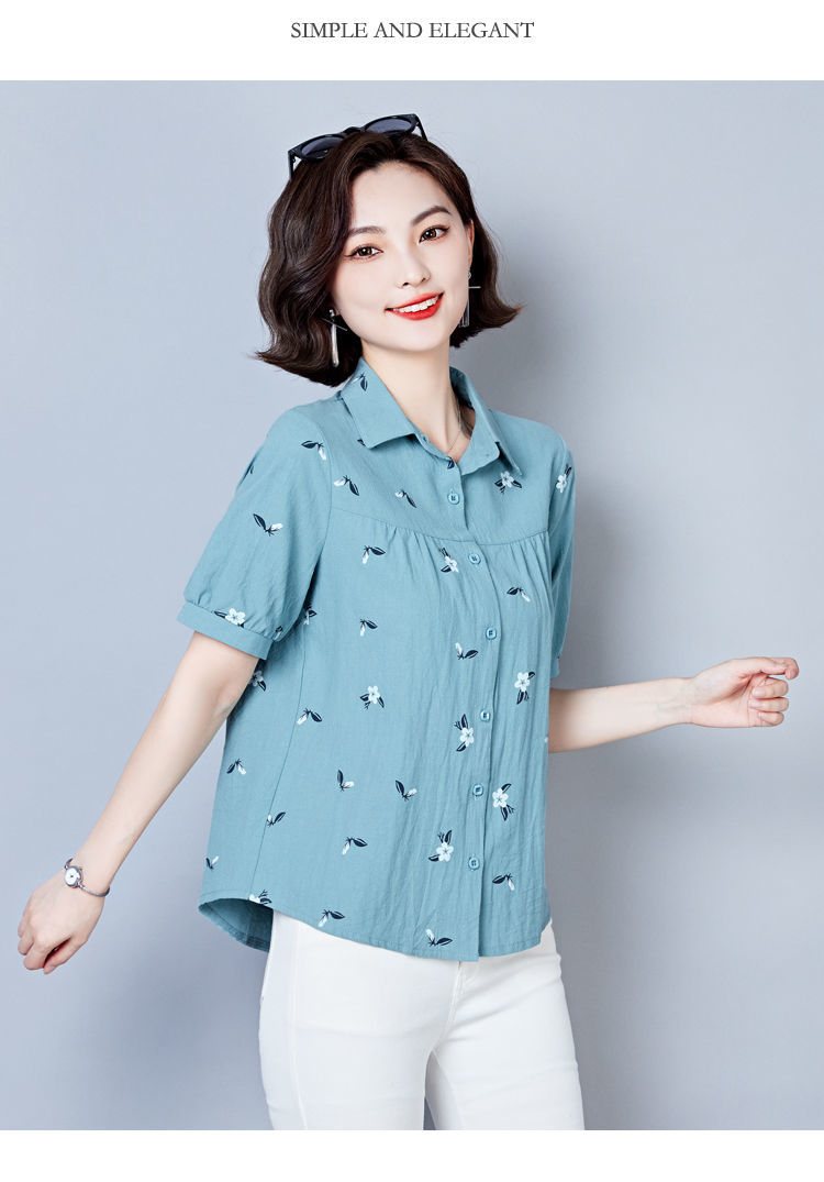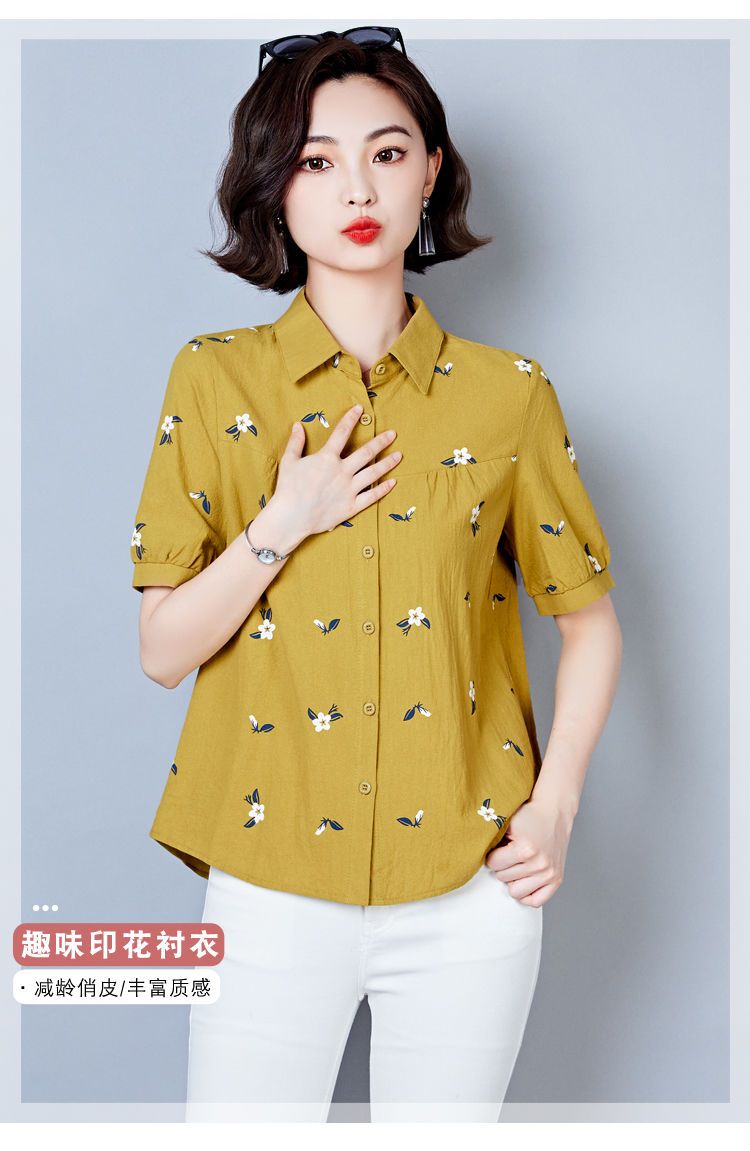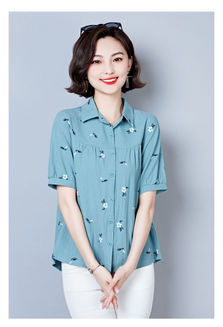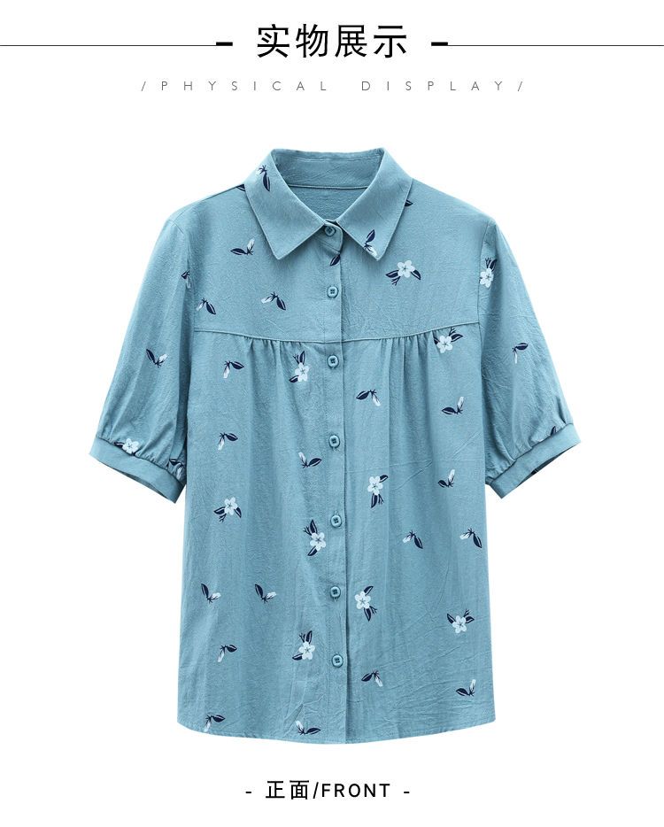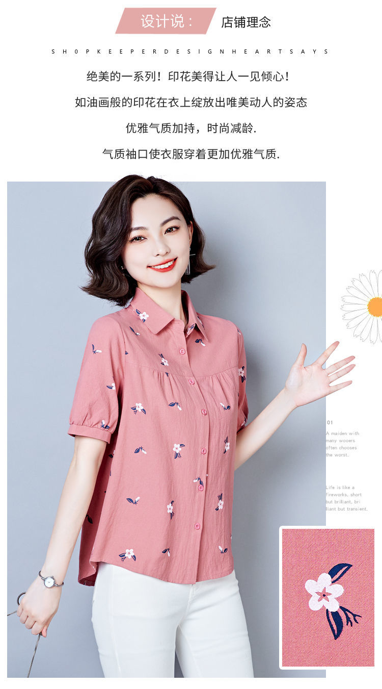 DD-天丝衬衫女2023年夏季新款短袖洋气宽松遮肚子显瘦妈妈棉麻上衣女