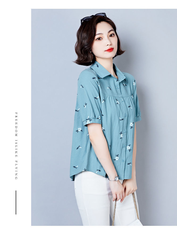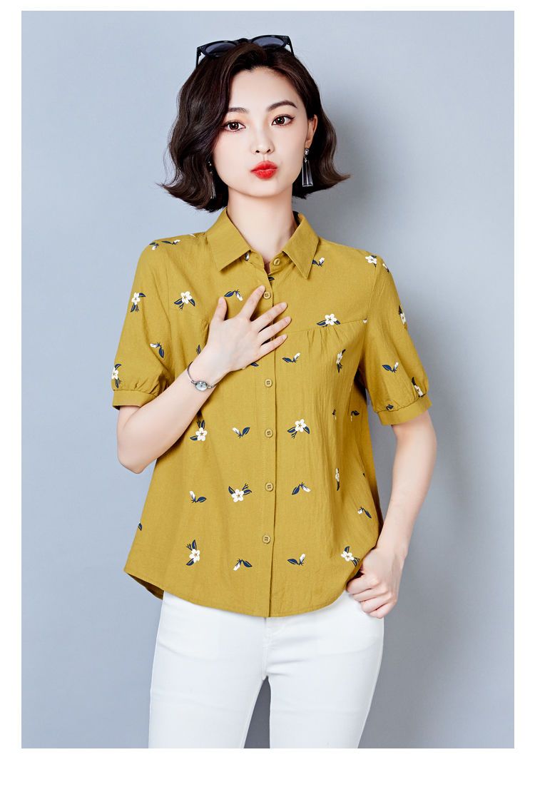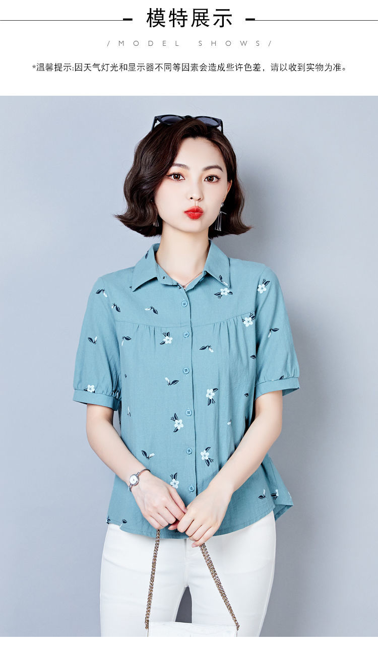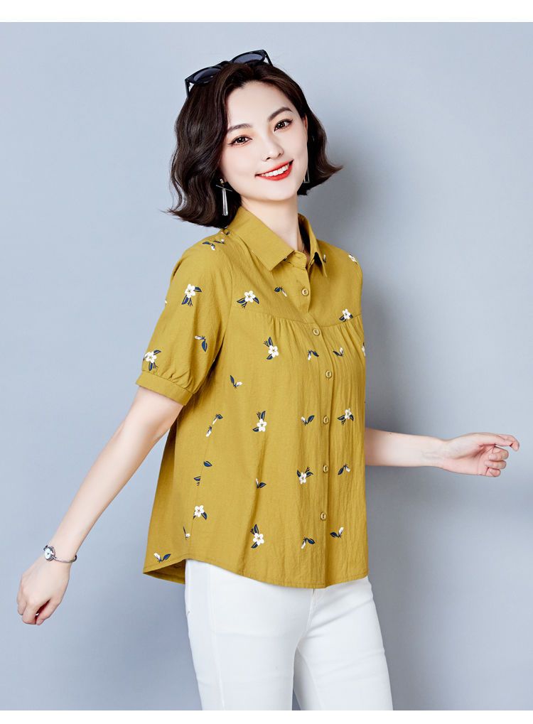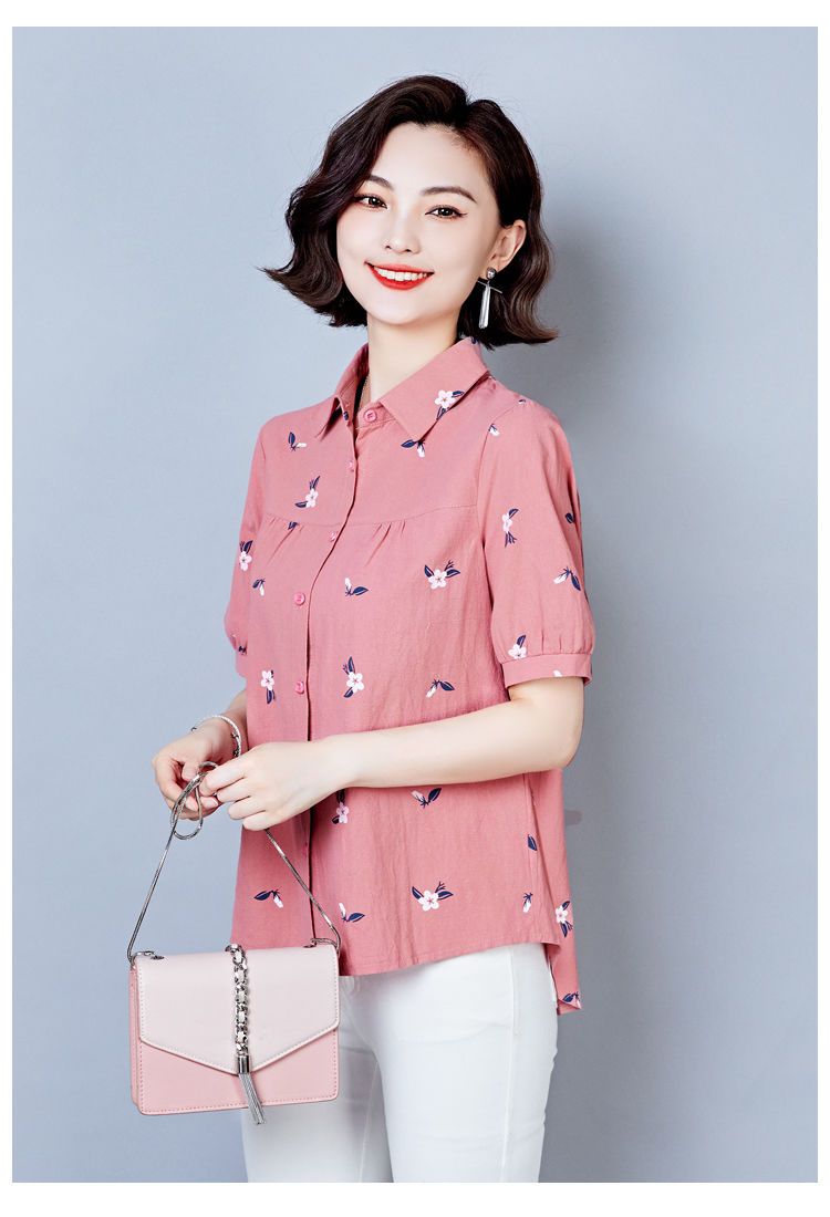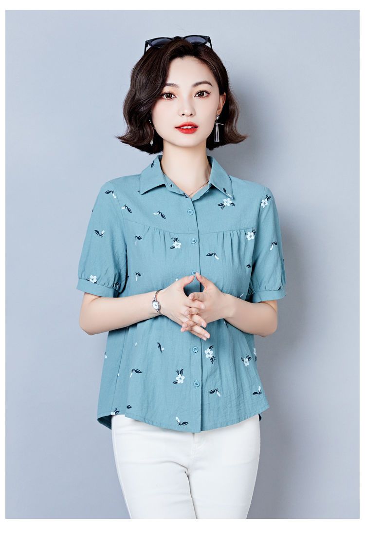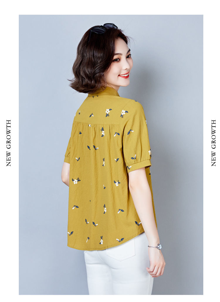 DD-天丝衬衫女2023年夏季新款短袖洋气宽松遮肚子显瘦妈妈棉麻上衣女