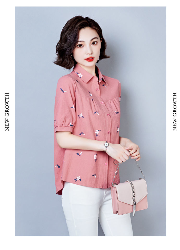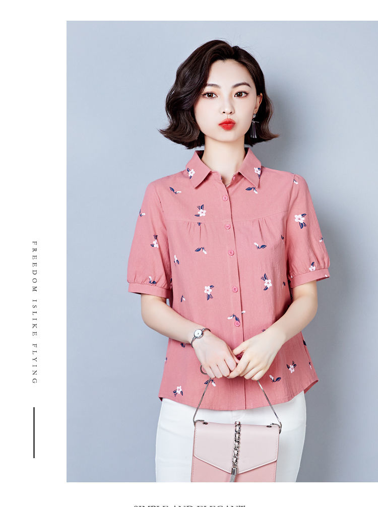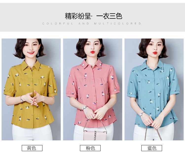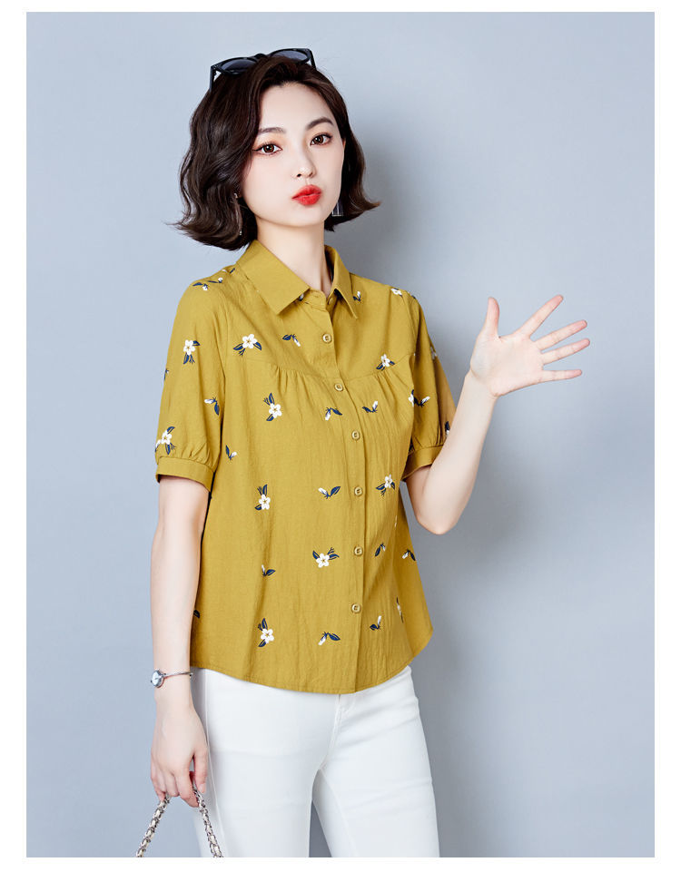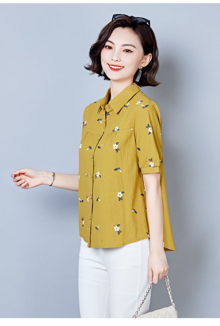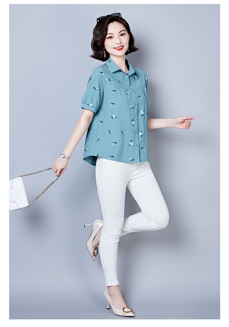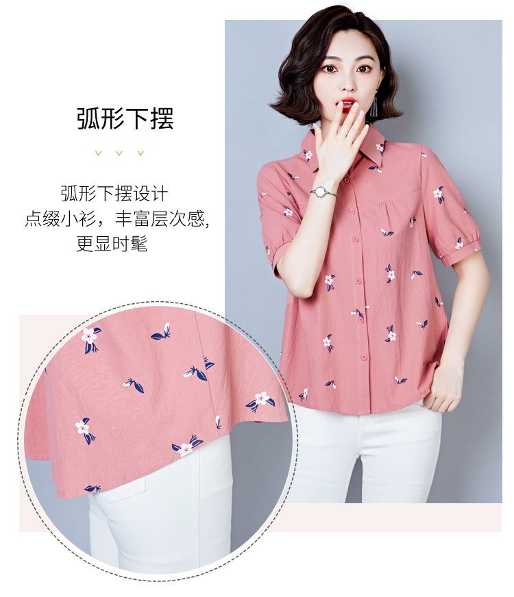 DD-天丝衬衫女2023年夏季新款短袖洋气宽松遮肚子显瘦妈妈棉麻上衣女
