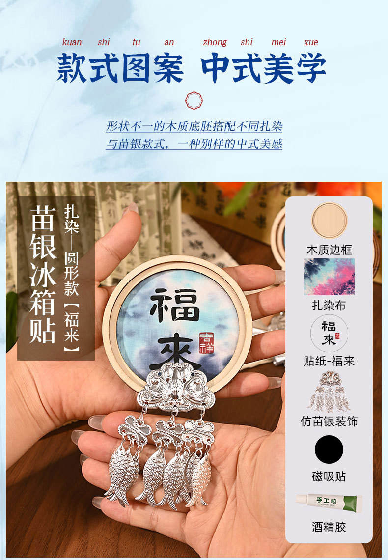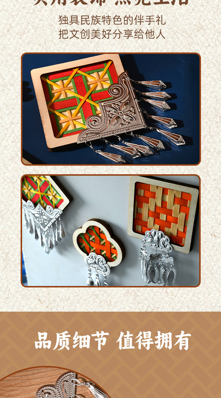 【春节不打烊】【体验非遗·DIY冰箱贴】苗银织锦竹编扎染冰箱贴手工材料包亲子手工活动文创沙龙团建活动