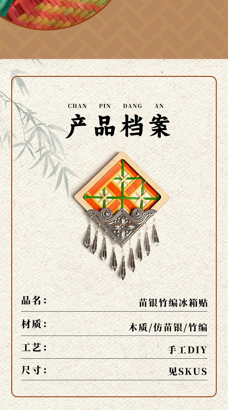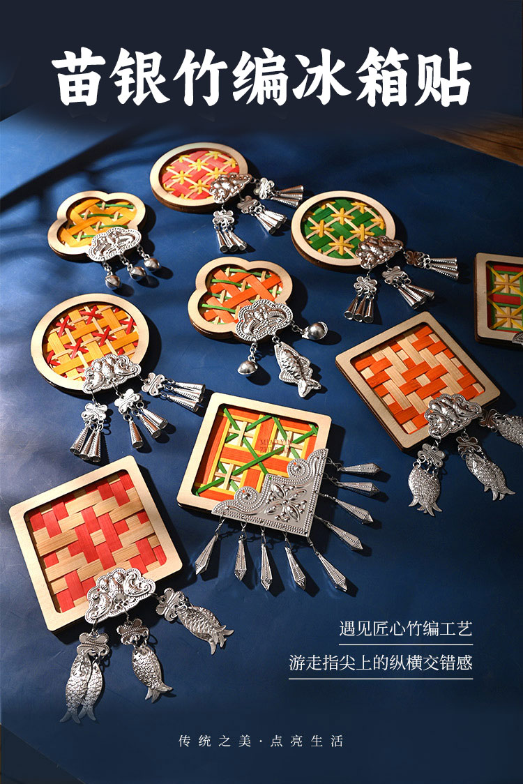 ---竹编苗银冰箱贴---