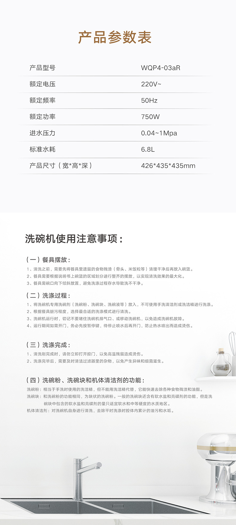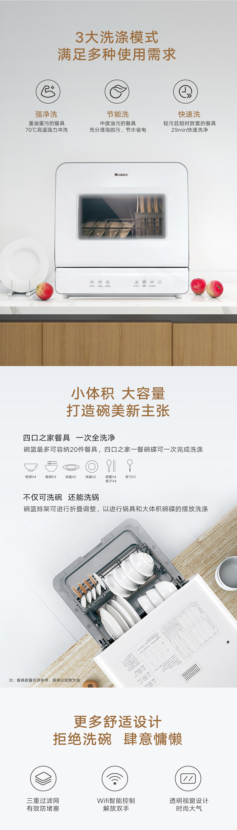 格力台式免安装洗碗机WQP4-03aR(格力白)/1台(426*435*435mm)补单专用