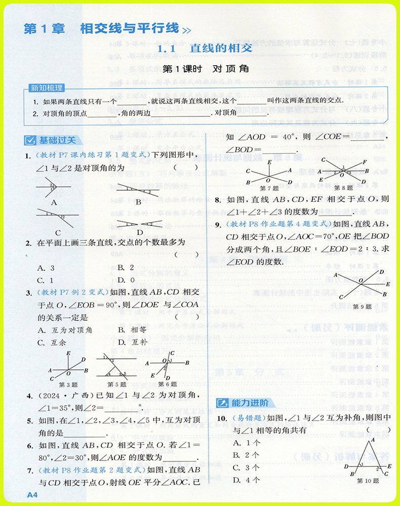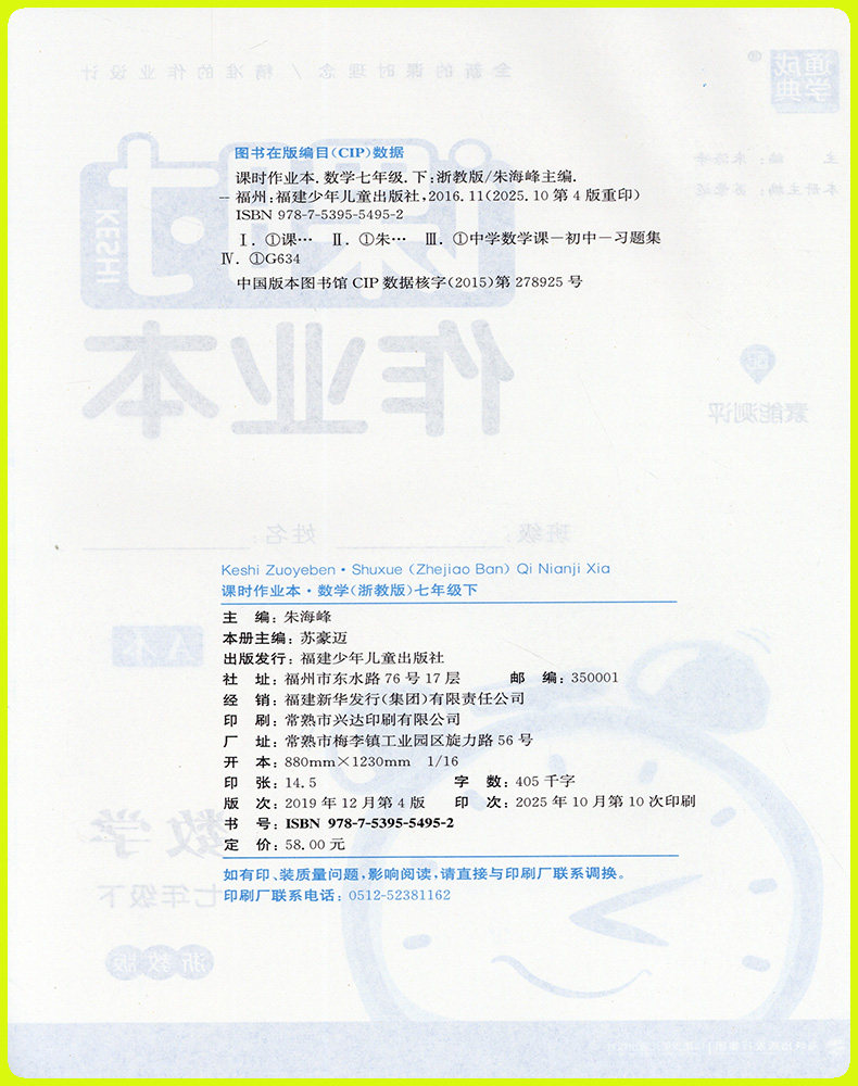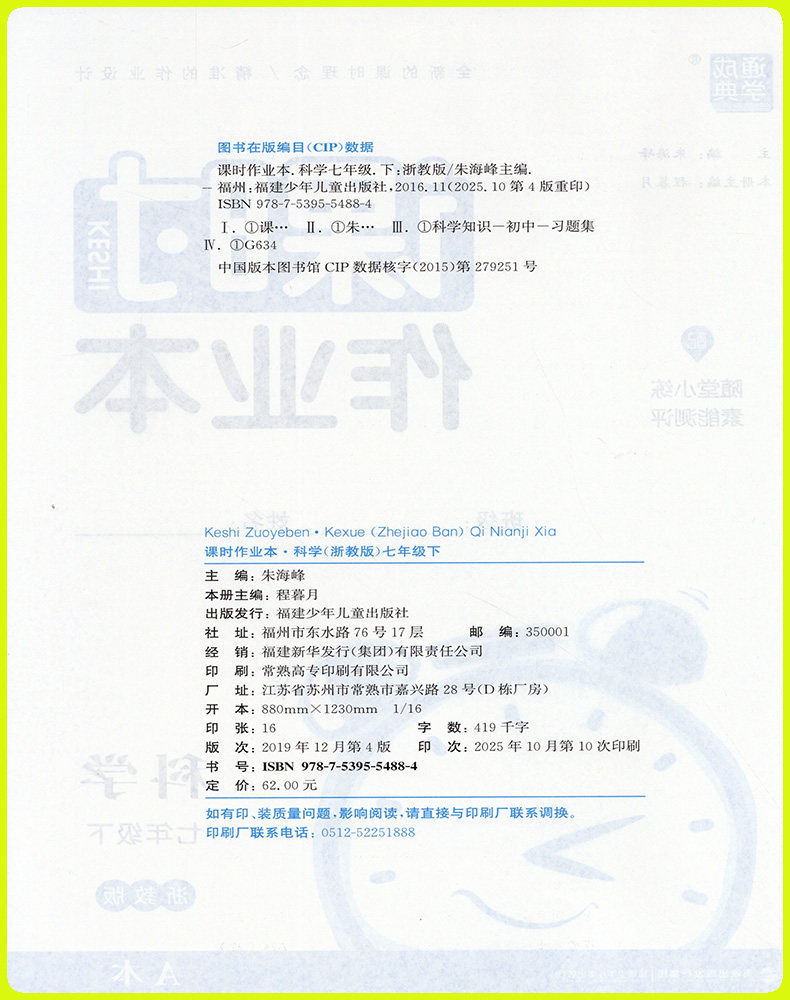 【浙江专用】2026新版通成学典初中课时作业本下册上册同步课堂练习册