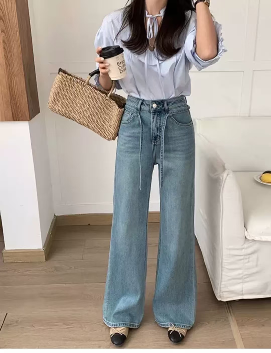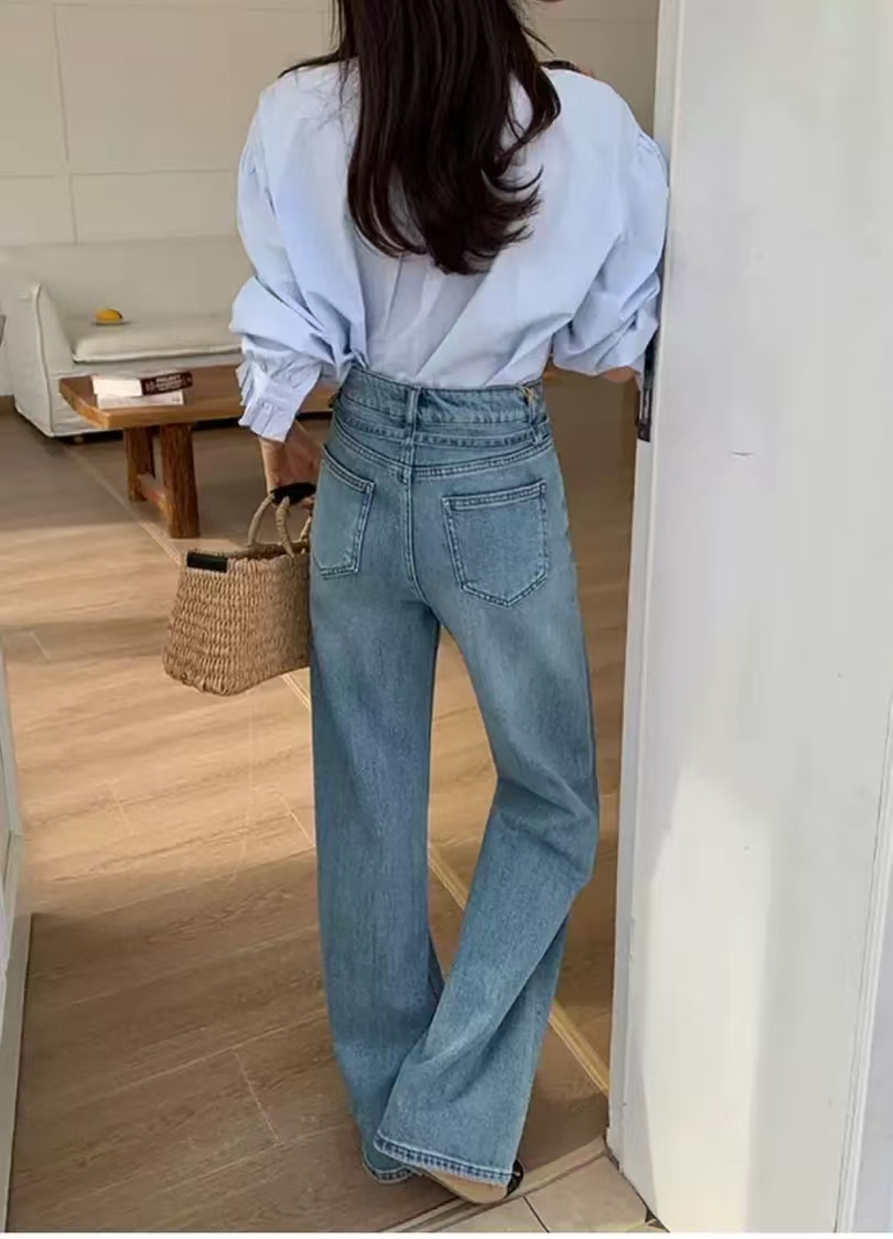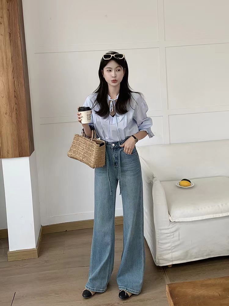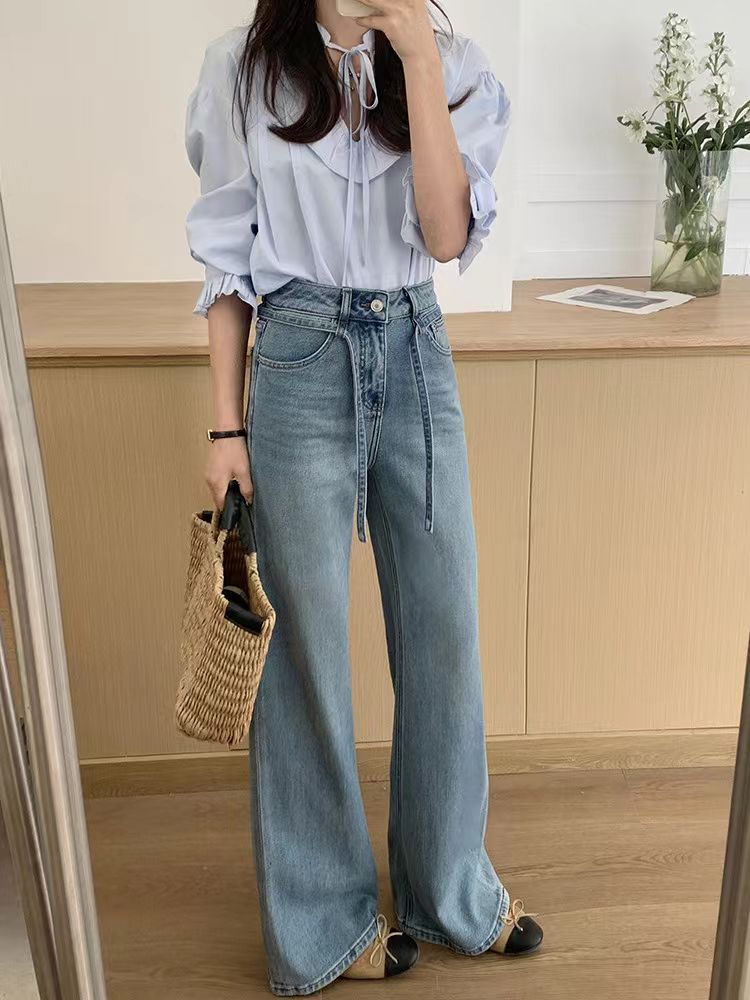 爆款女神裤~【春上新】8007筒喇裤宽松下摆鱼尾裤拖地牛仔裤-喜出