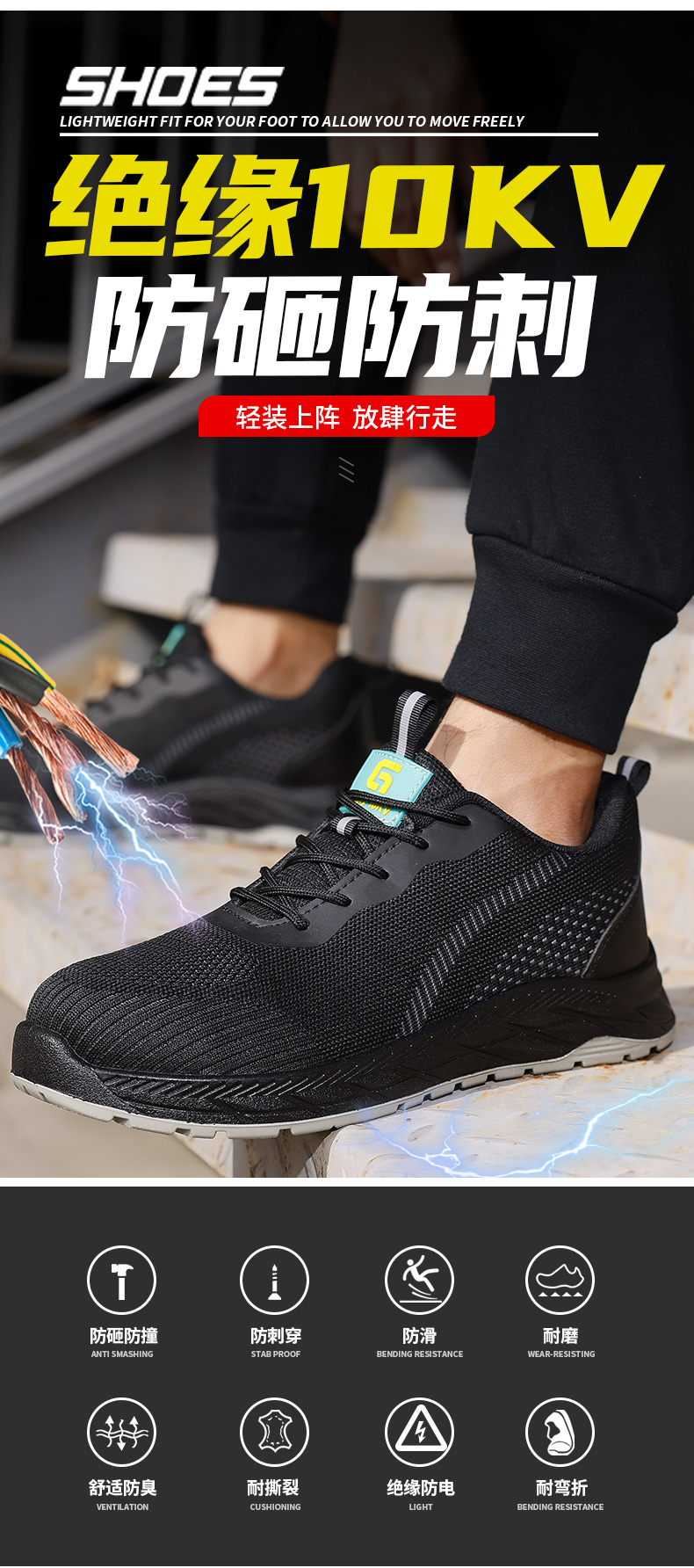 2024新款绝缘10KV鞋透气男士防砸防刺劳保鞋实心底耐磨
