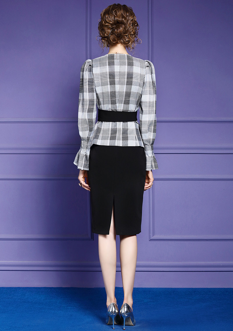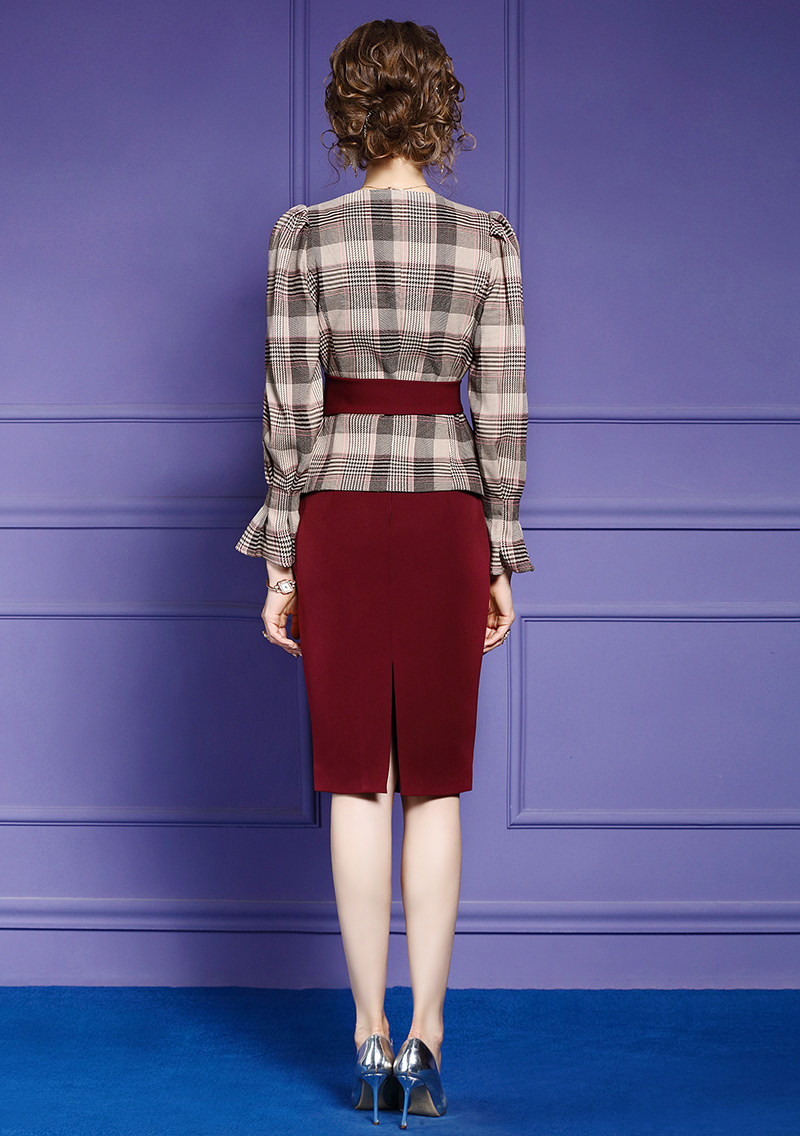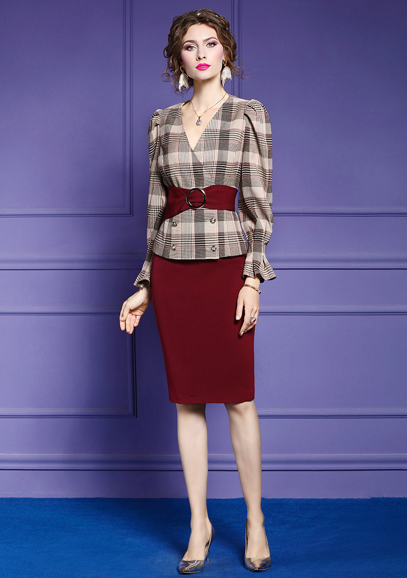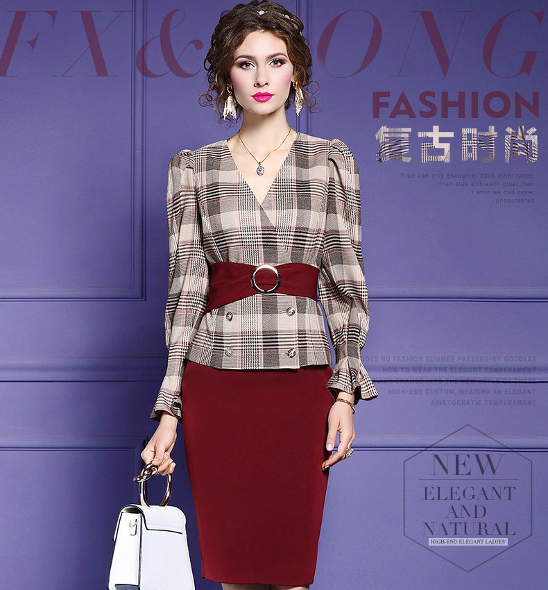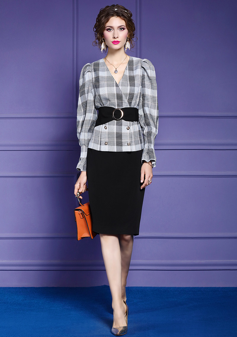 FMY-28780气质女神范V领收腰上衣包臀裙两件套