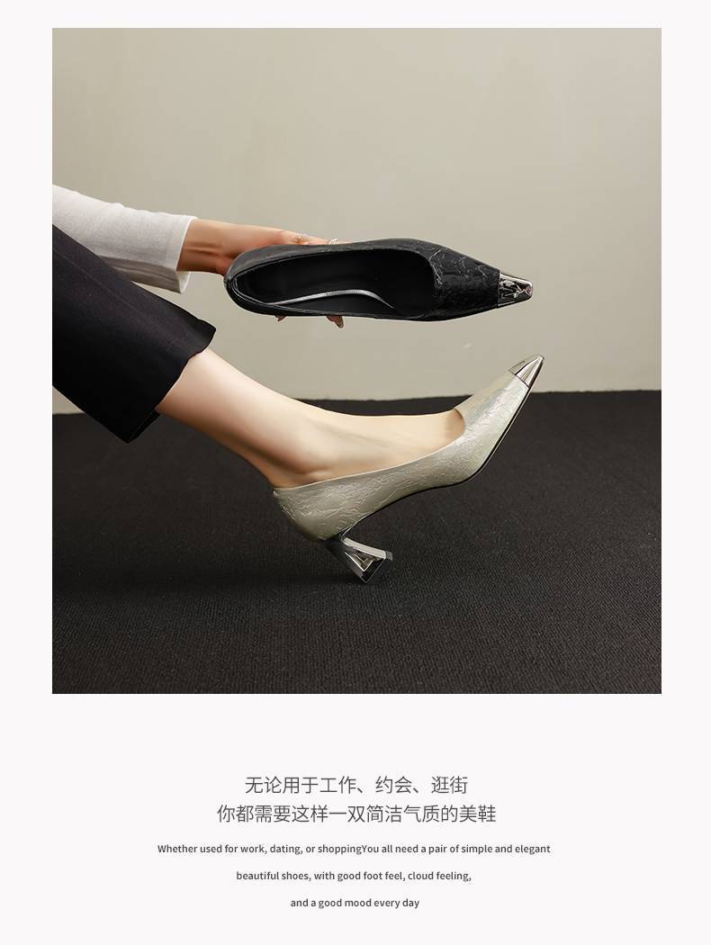 【预售5天】单鞋女法式不累脚绝美配裙子新款春季漂亮尖头高跟异形金属头DB&M6713