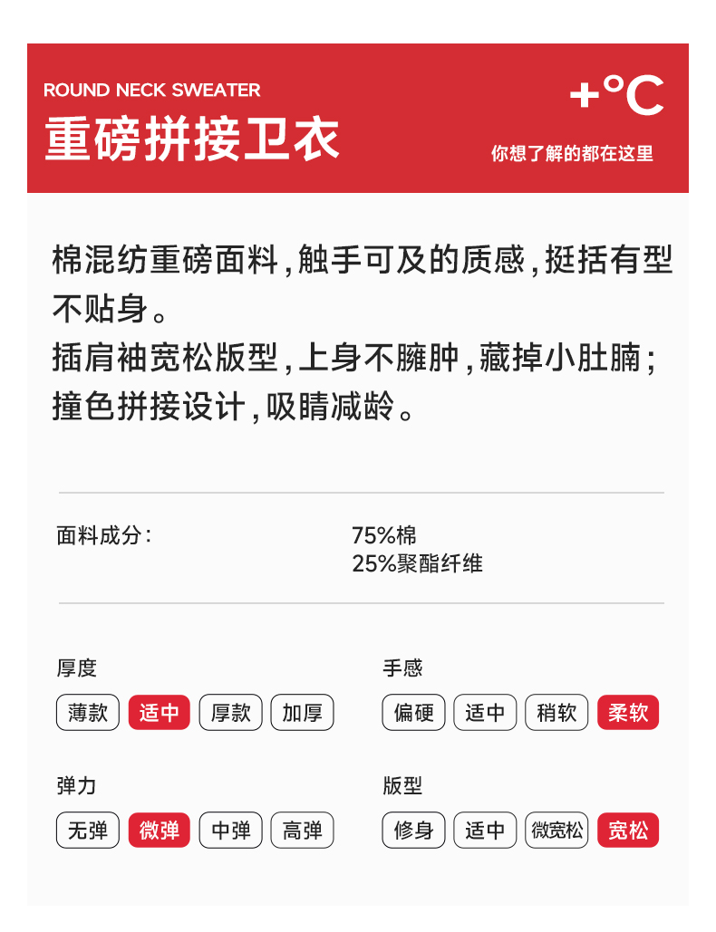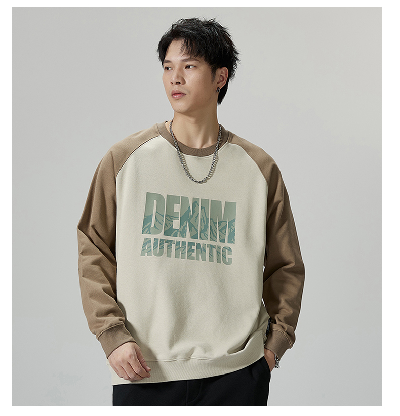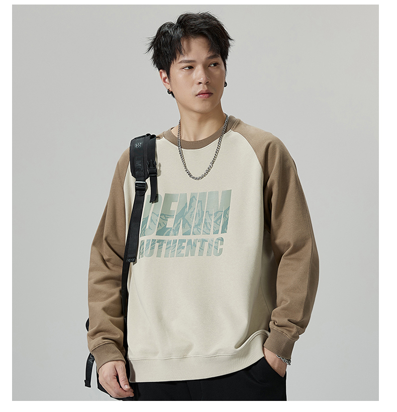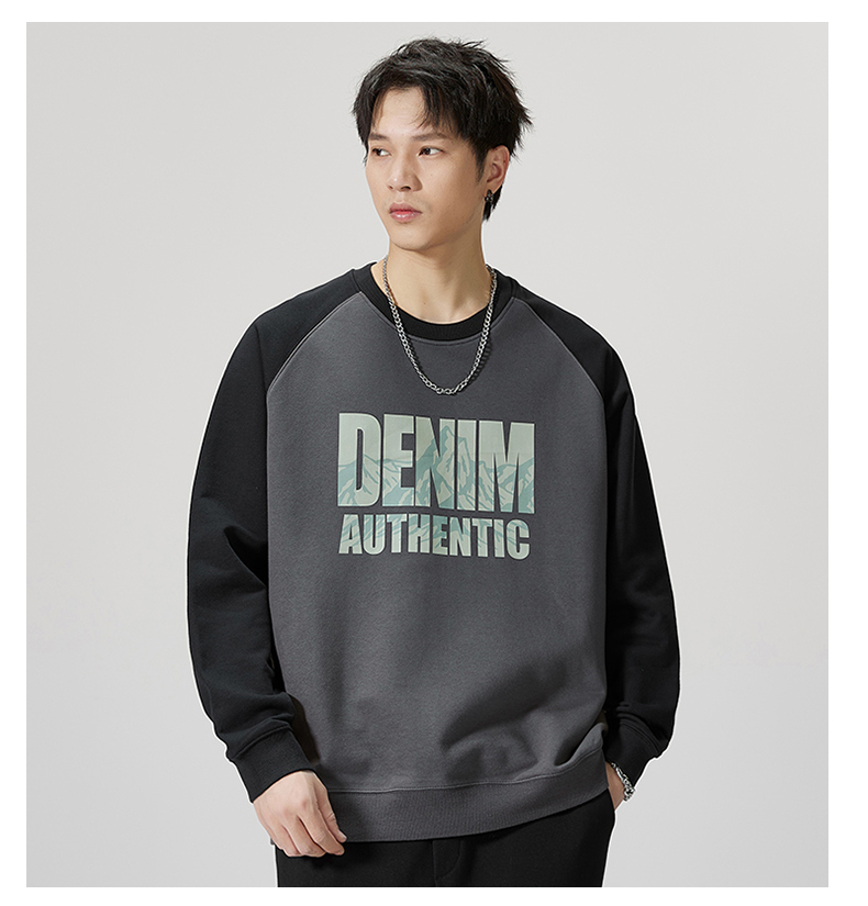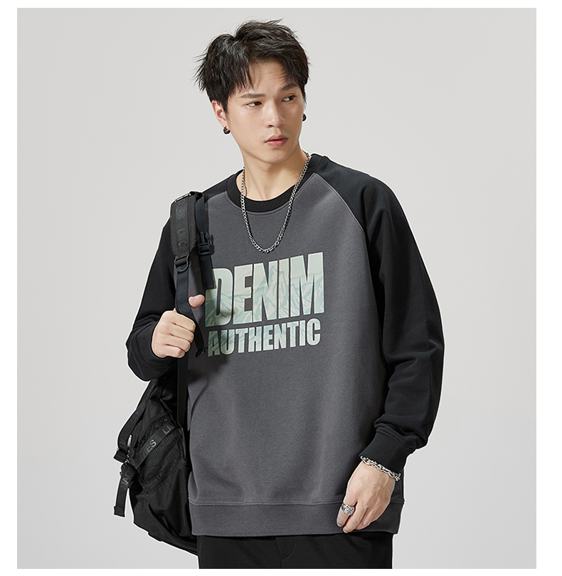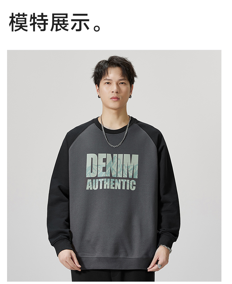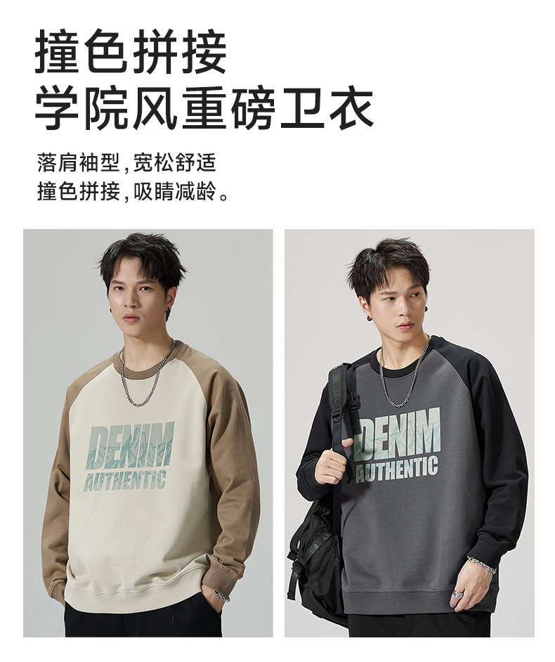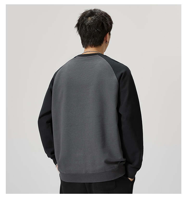 【新款DQ】大依优型大码男装圆领卫衣长袖T恤撞色插肩袖潮胖简约宽松休闲男士打底上衣
