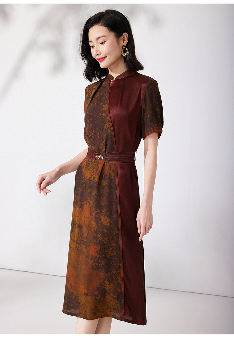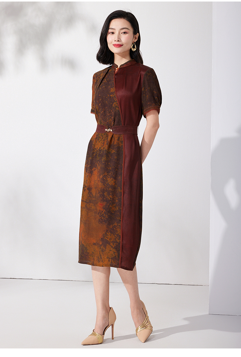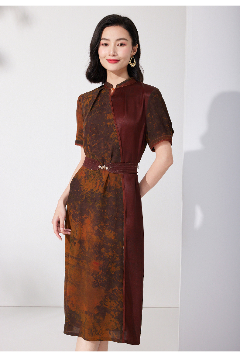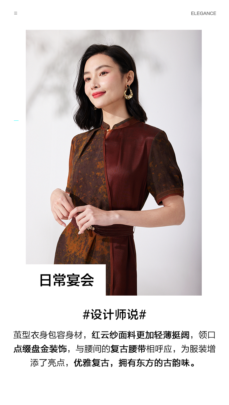 【灼云霞色】【香云纱】乔万尼真丝桑蚕丝连衣裙19mm红云纱气质复古ET2E293