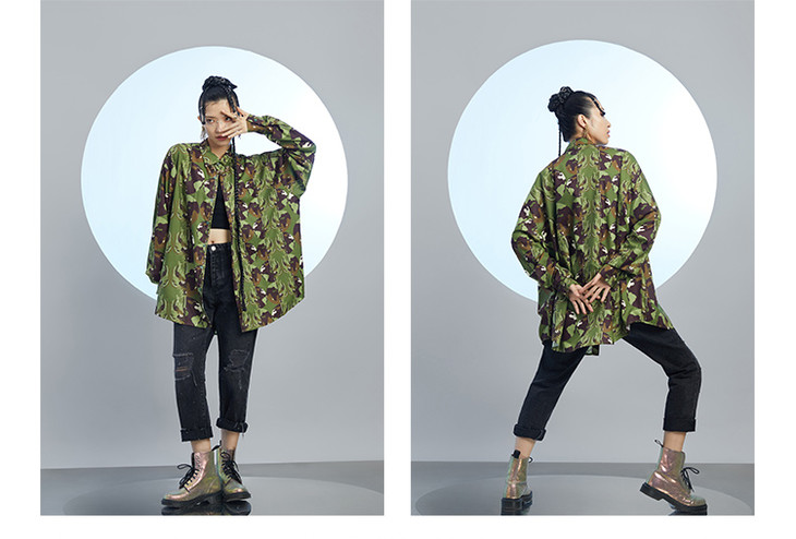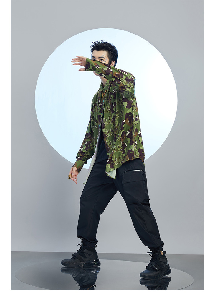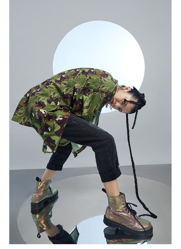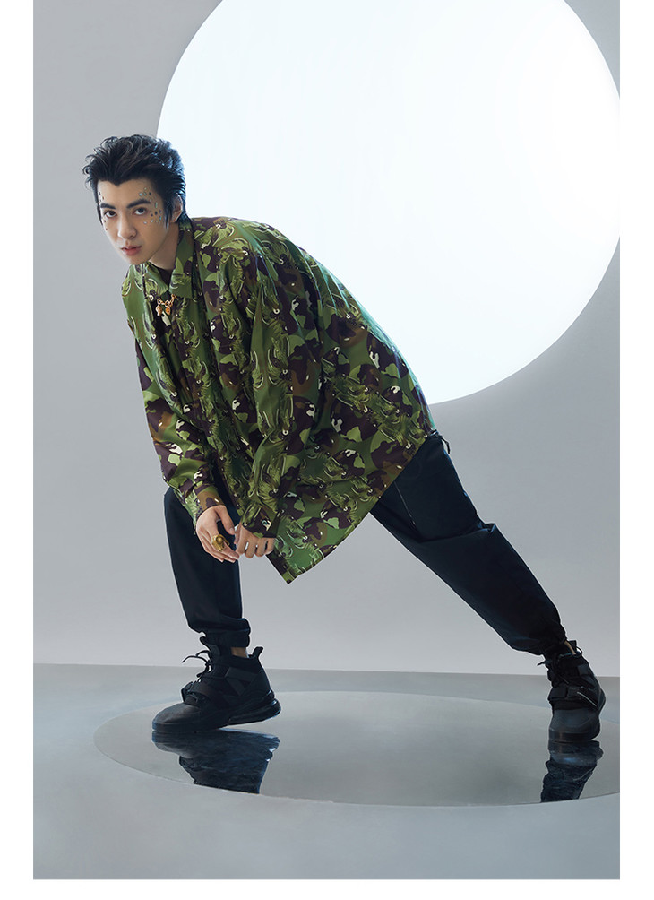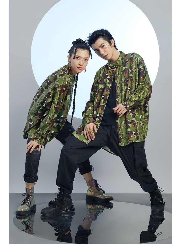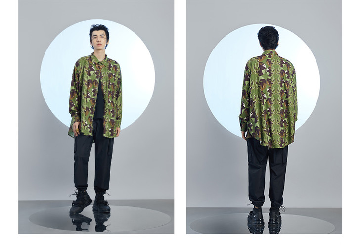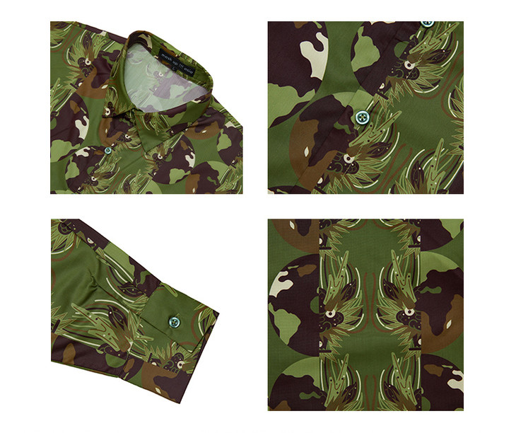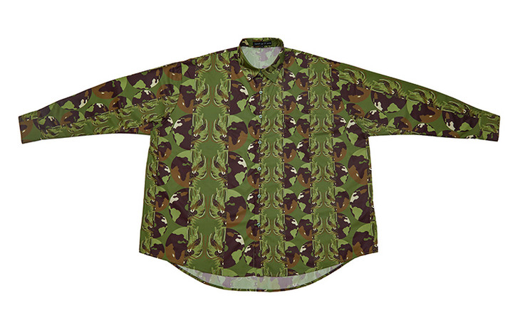 混沌亚宙MUA绿迷彩龙男女同款oversize宽松印花衬衫#此商品参加第十一届北京惠民文化消费季