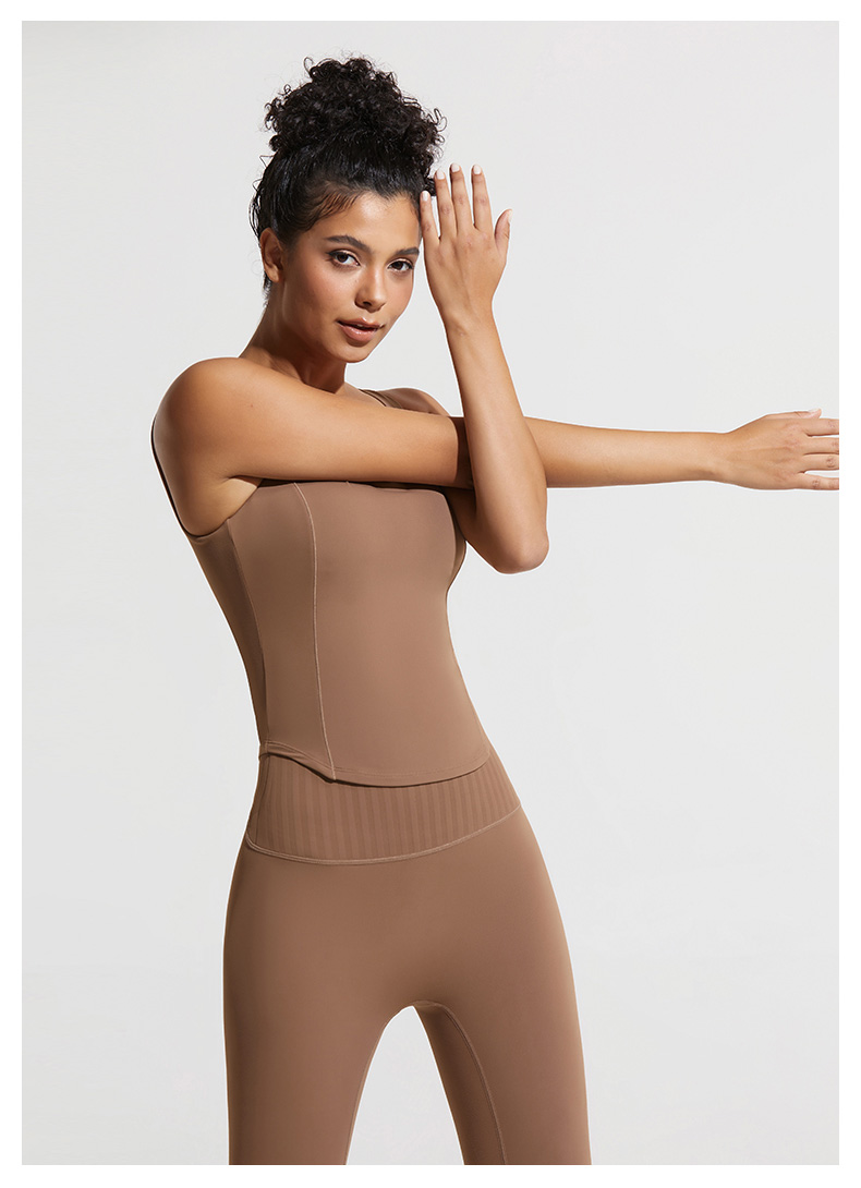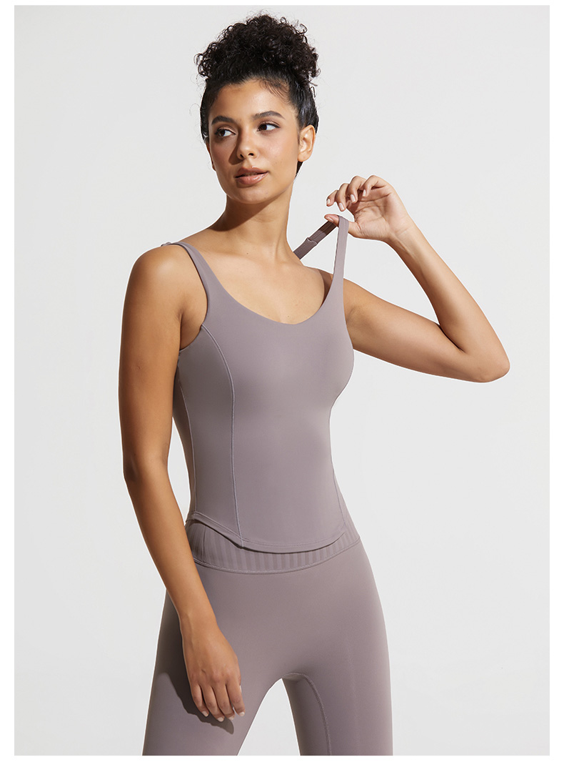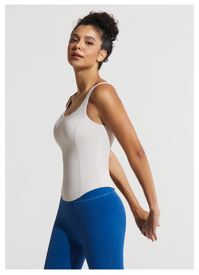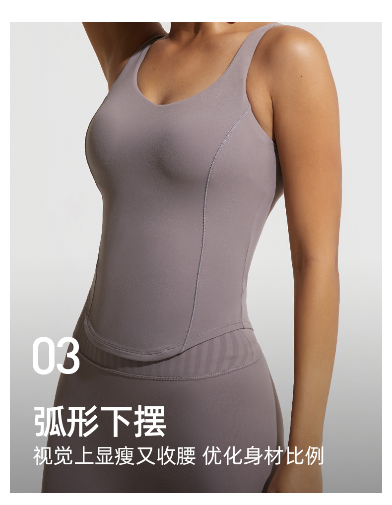 【折扣】科里芙弧形下摆吊带背心一体杯上衣瑜伽跑步运动显瘦美背