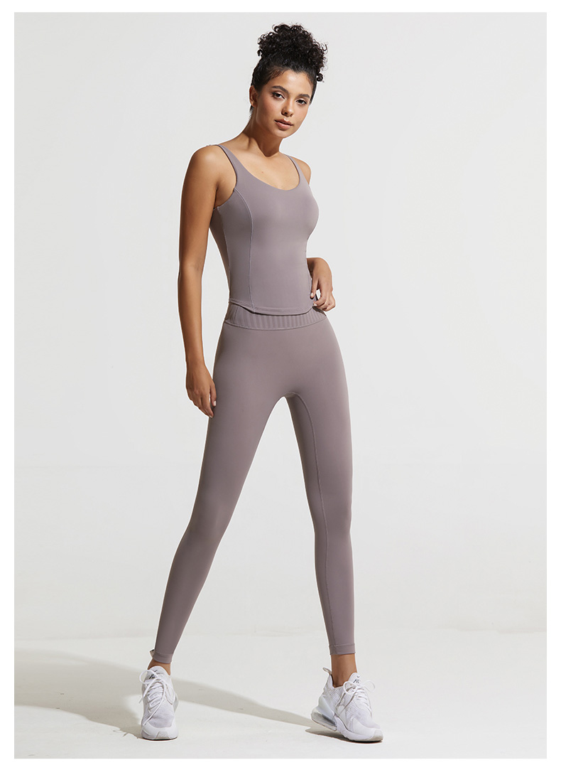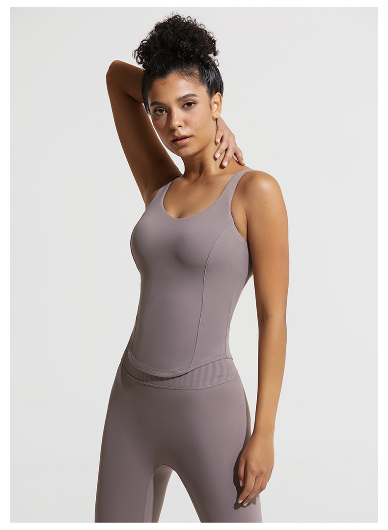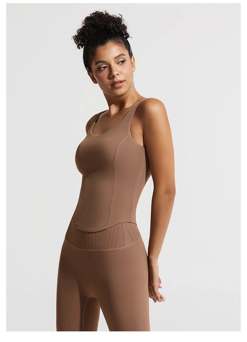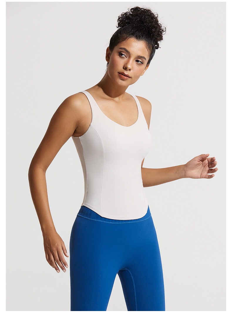 【折扣】科里芙弧形下摆吊带背心一体杯上衣瑜伽跑步运动显瘦美背
