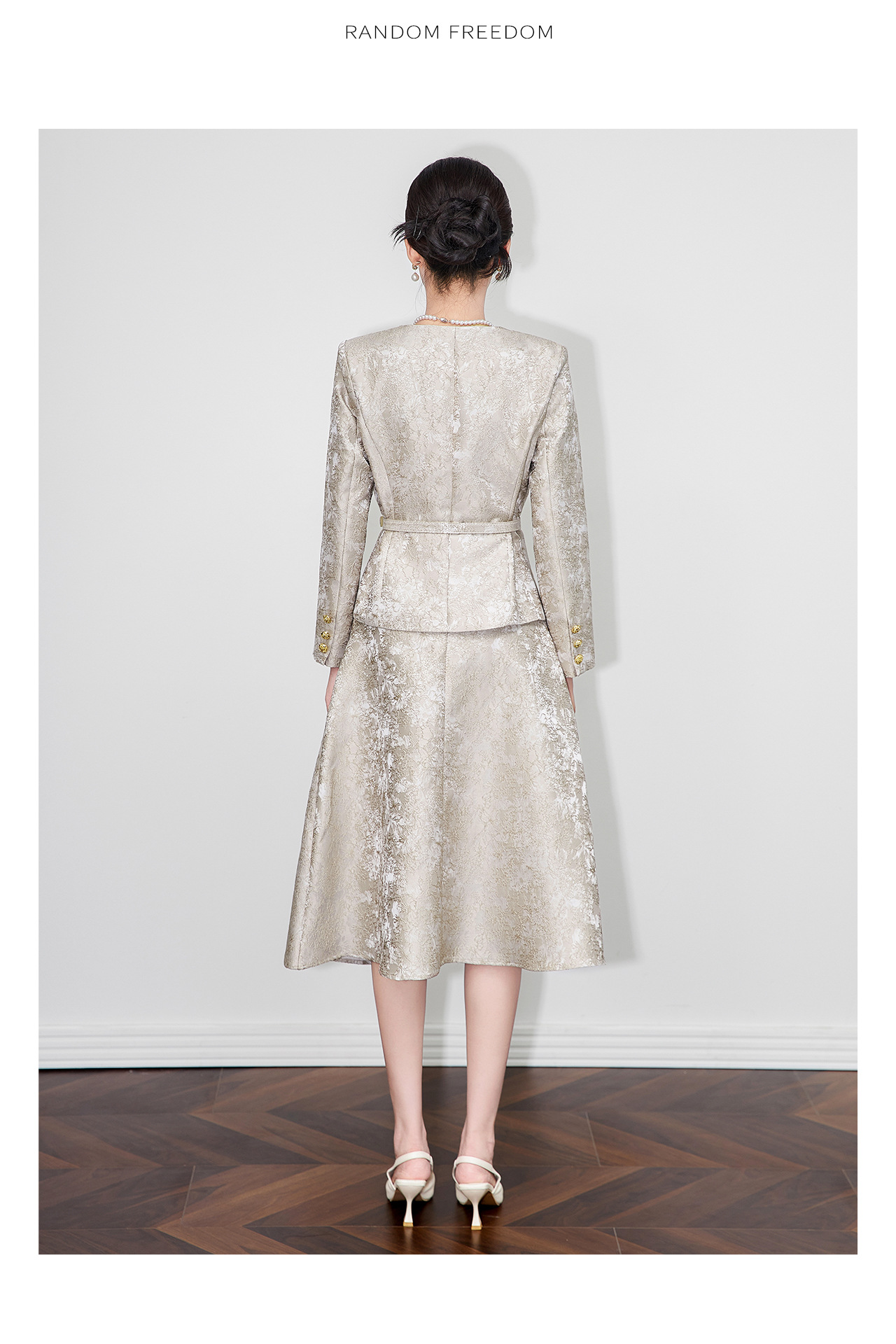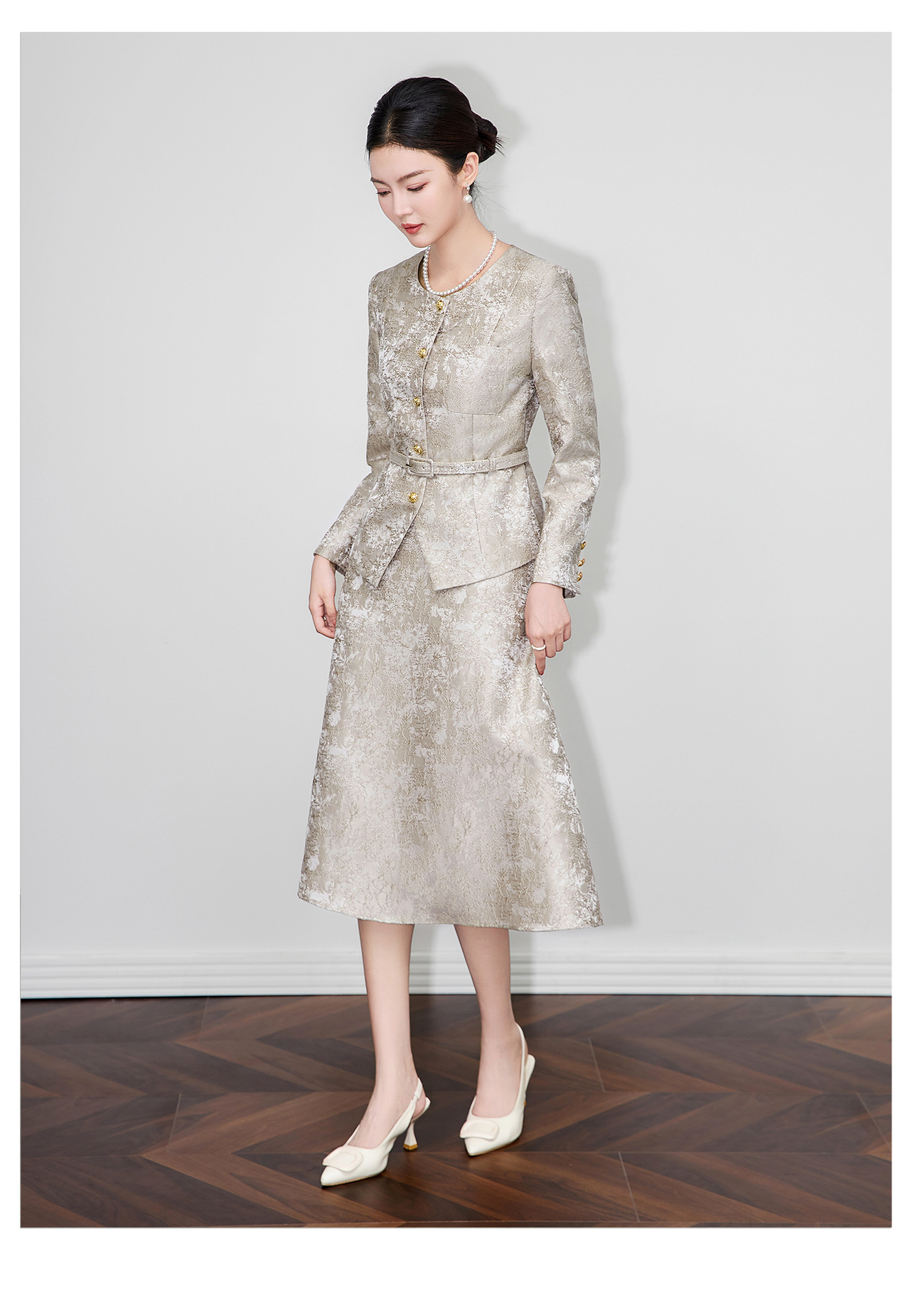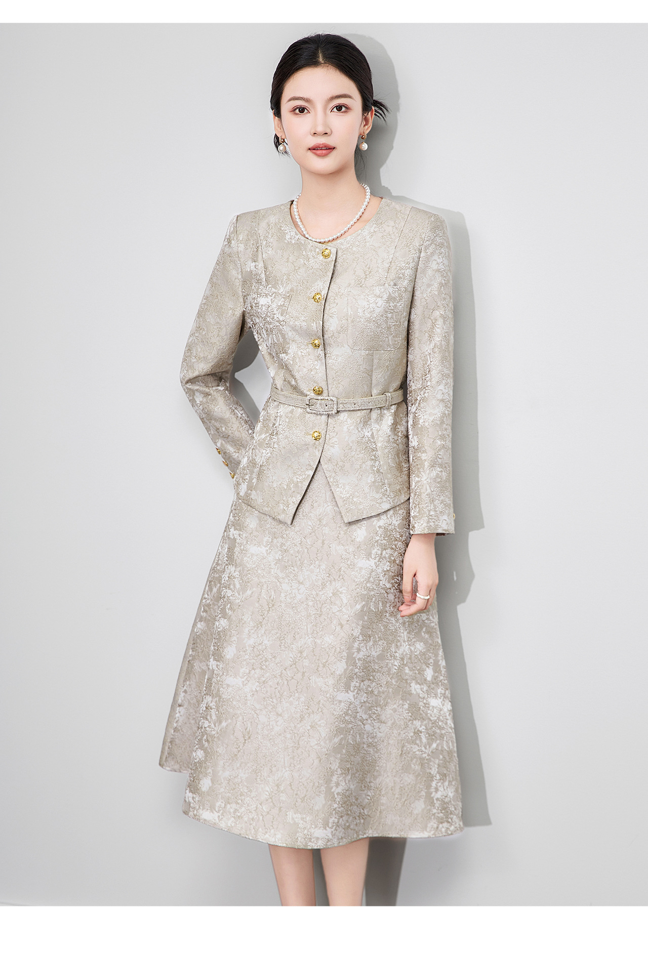 「高货wl」全新升级【铂金会员395/天猫529/差价134】(99540)洛诗琳2025秋冬重工浮雕提花西服高腰A字半身裙两件套女