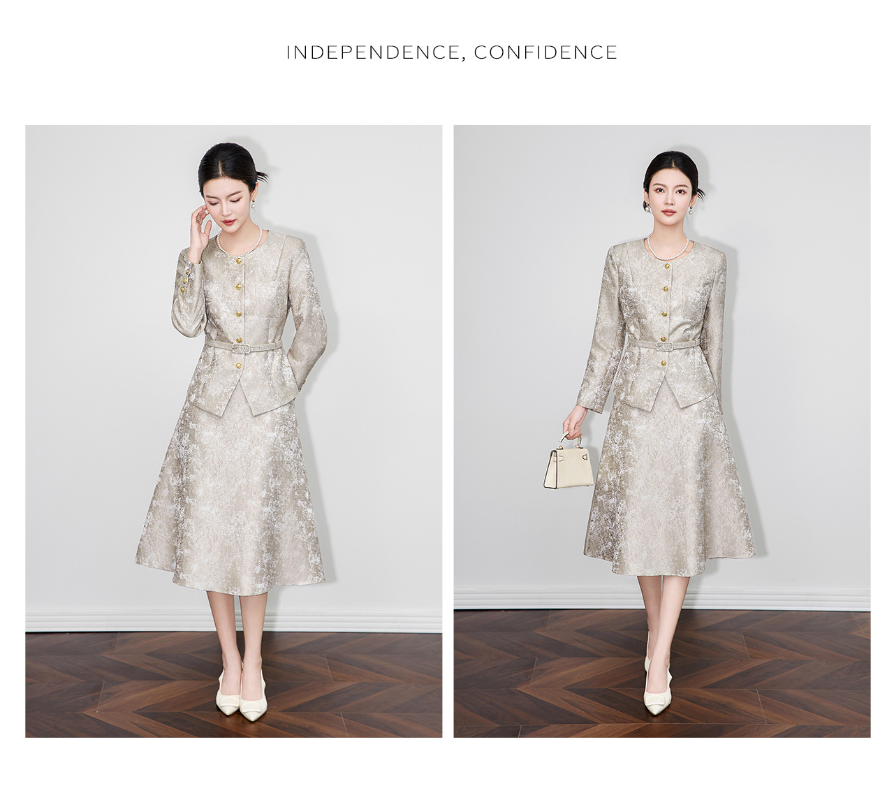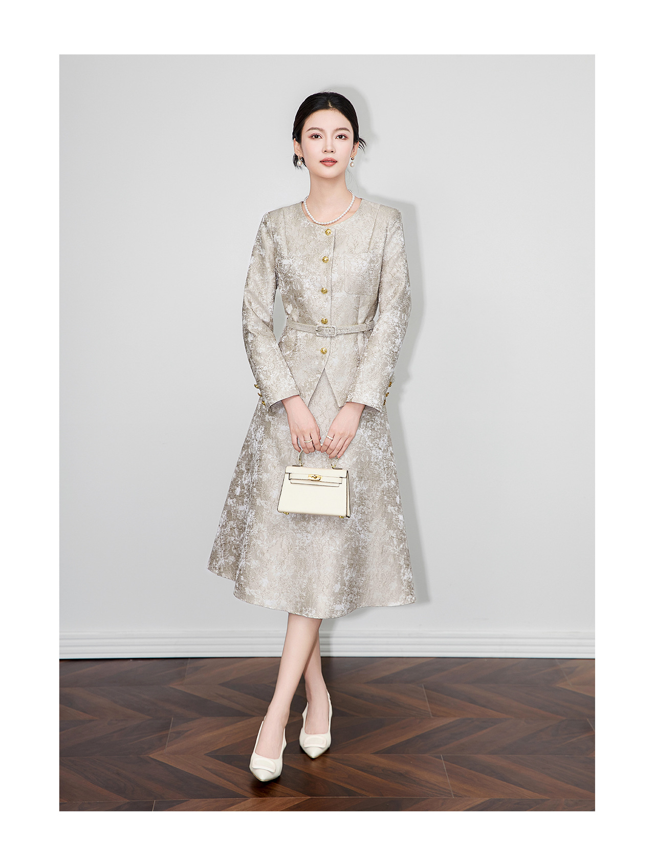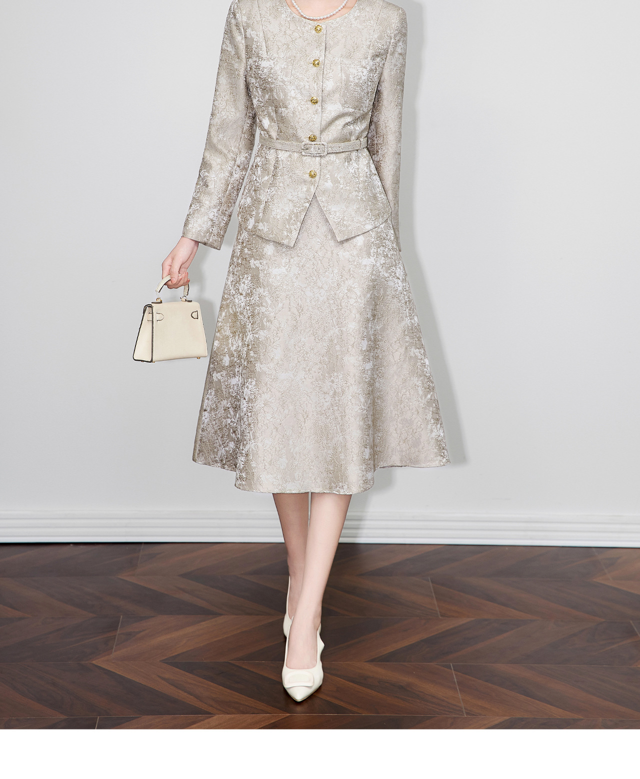 「高货wl」全新升级【铂金会员395/天猫529/差价134】(99540)洛诗琳2025秋冬重工浮雕提花西服高腰A字半身裙两件套女