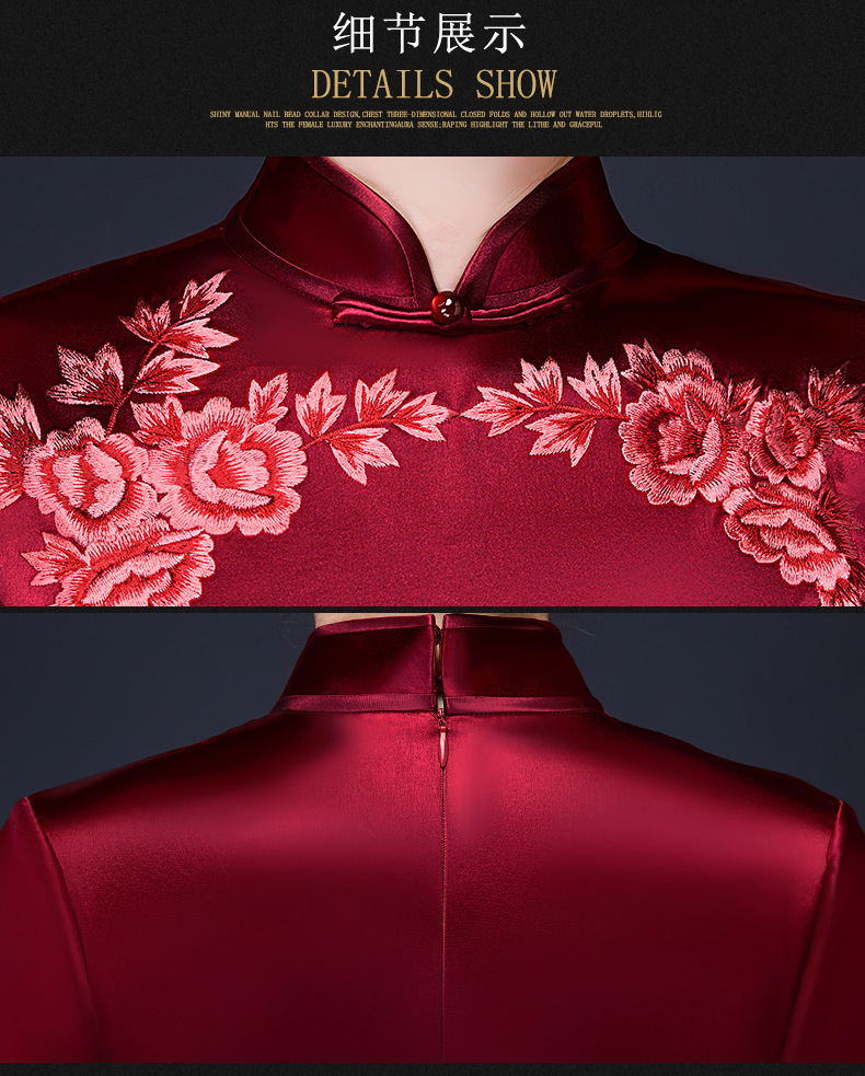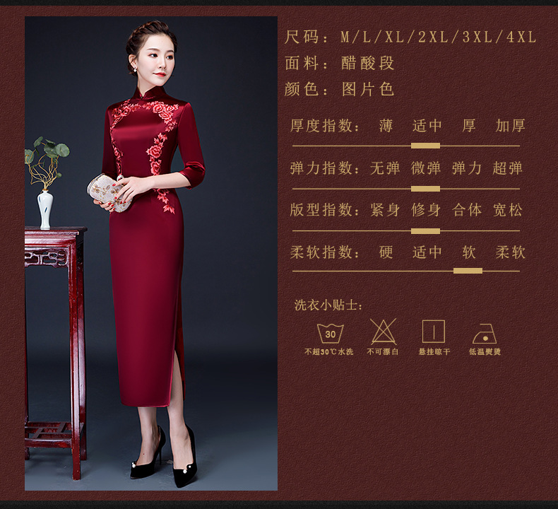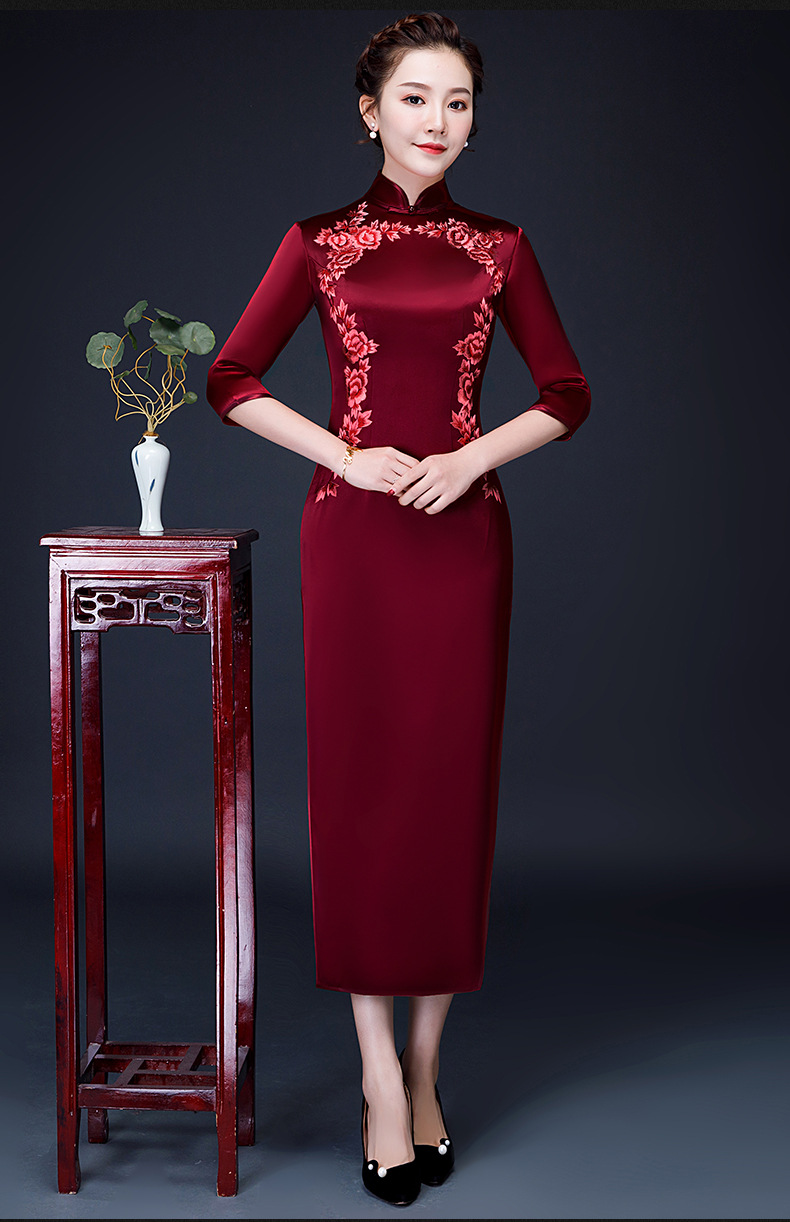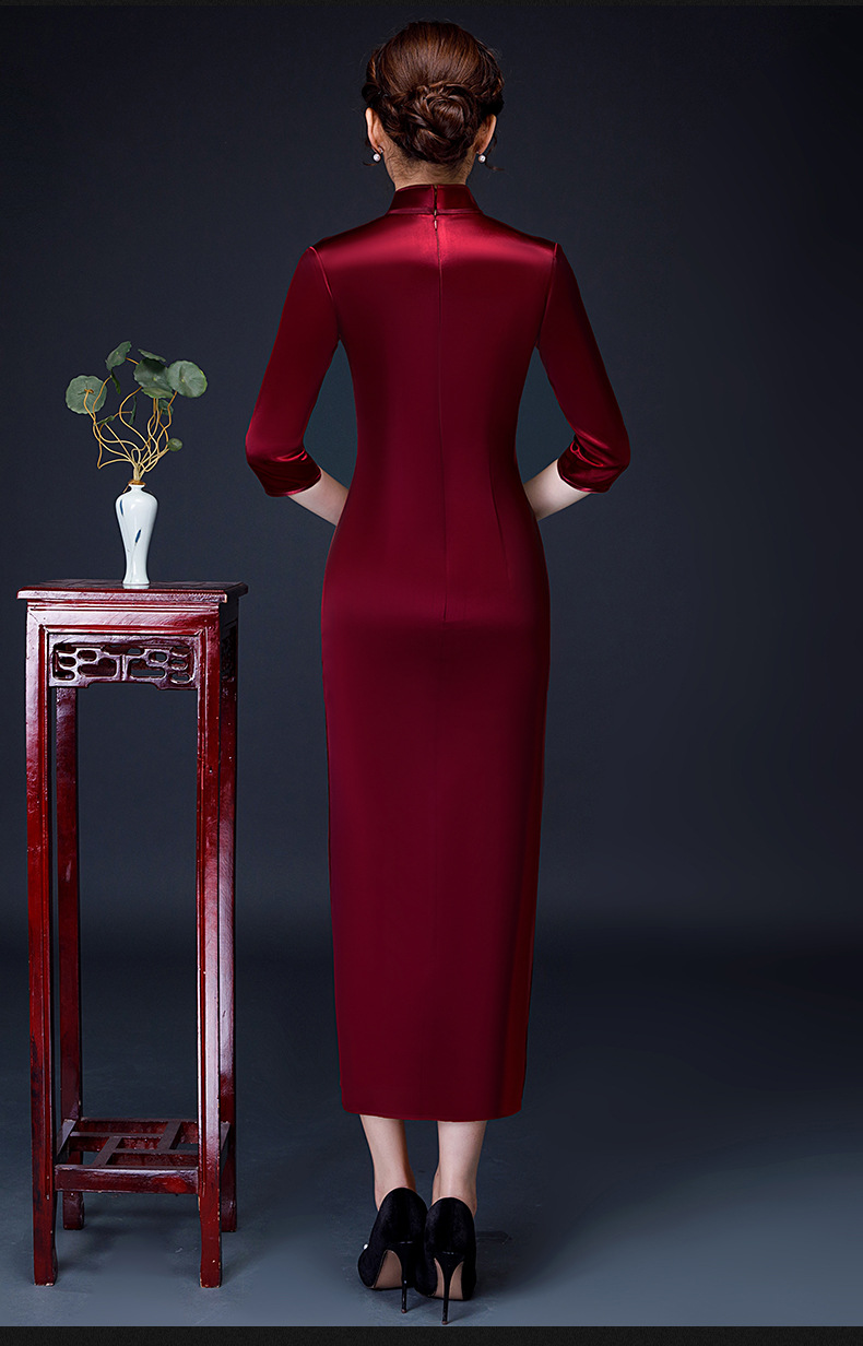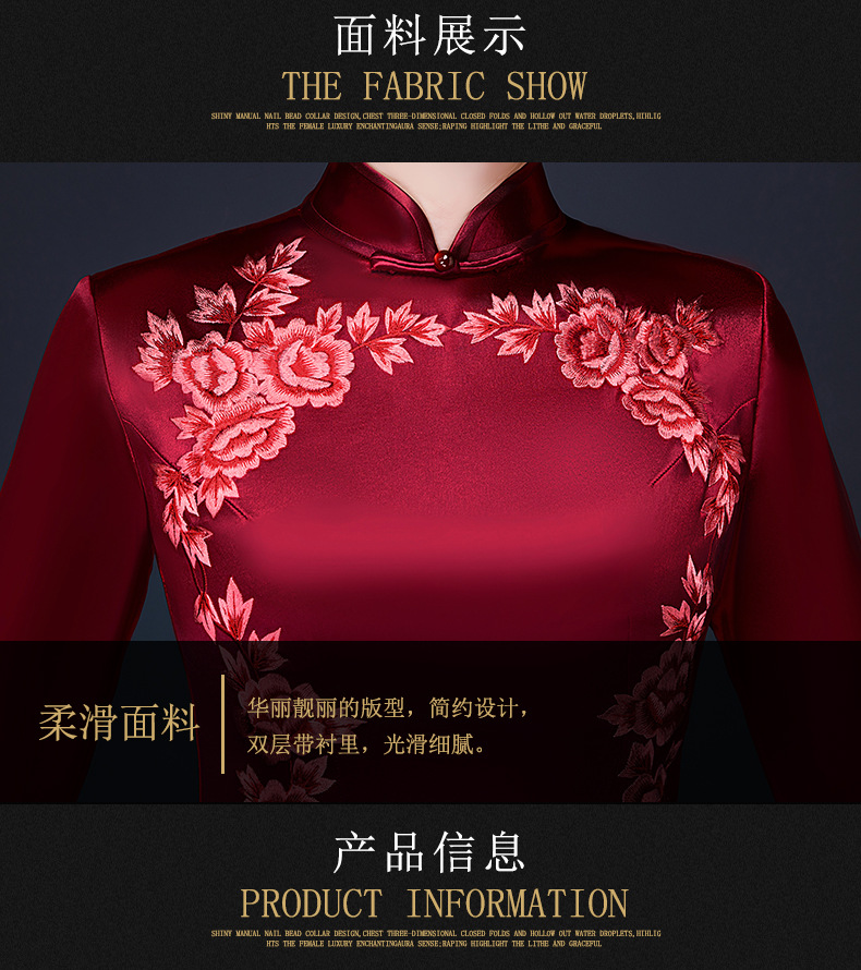 上海旗袍厂LHS-1001冬季新款加厚妈妈装长款旗袍婚宴宴会旗袍裙礼服改良七分袖秋1001