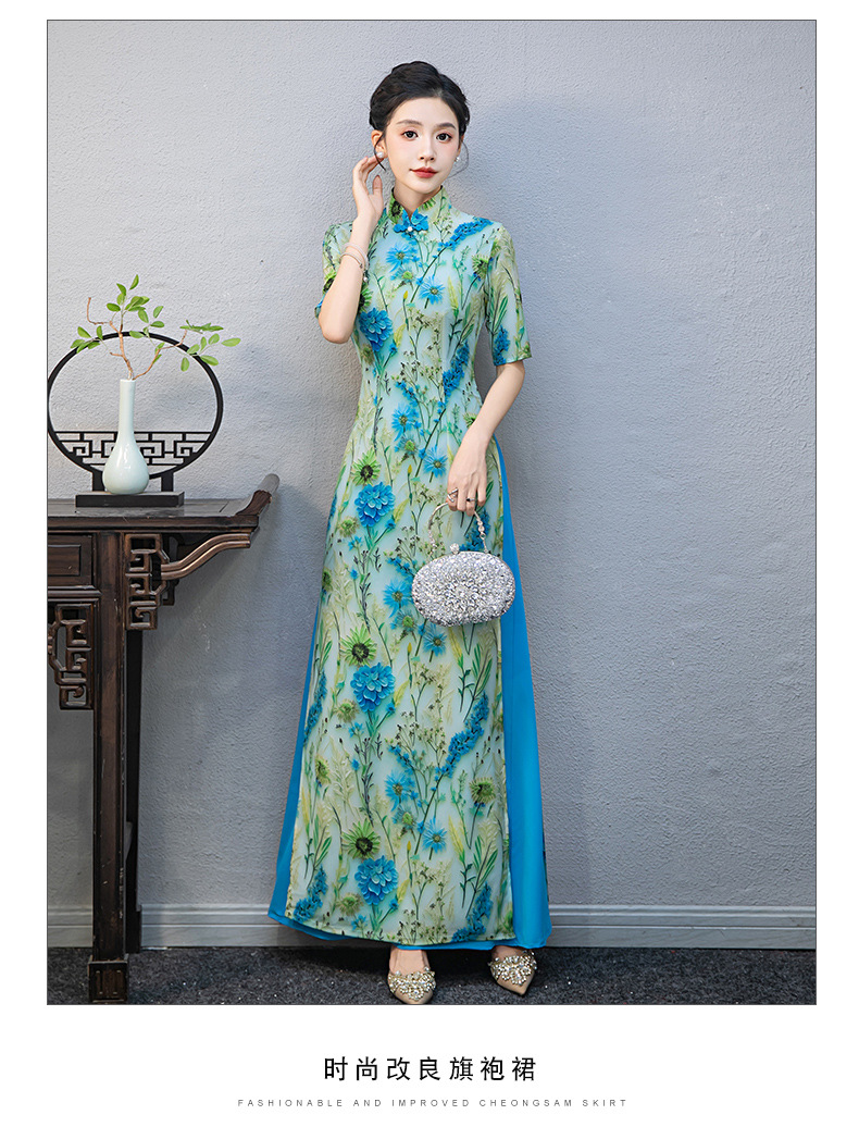 新款奥黛长旗袍改良版高级优雅走秀节目演出服显瘦大码连衣裙 商品图3