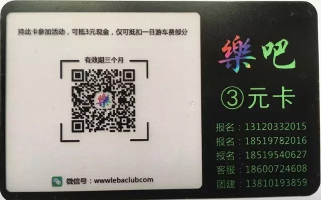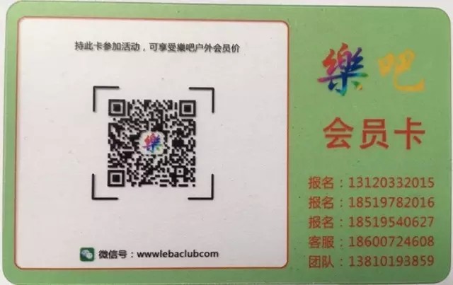 ■ 参加一次活动计一次,累计满十次可以享受VIP价格参加一次一日游活动,或者可以兑换一件价值99元樂吧纪念T恤一件(二选一)。卡片遗失不补