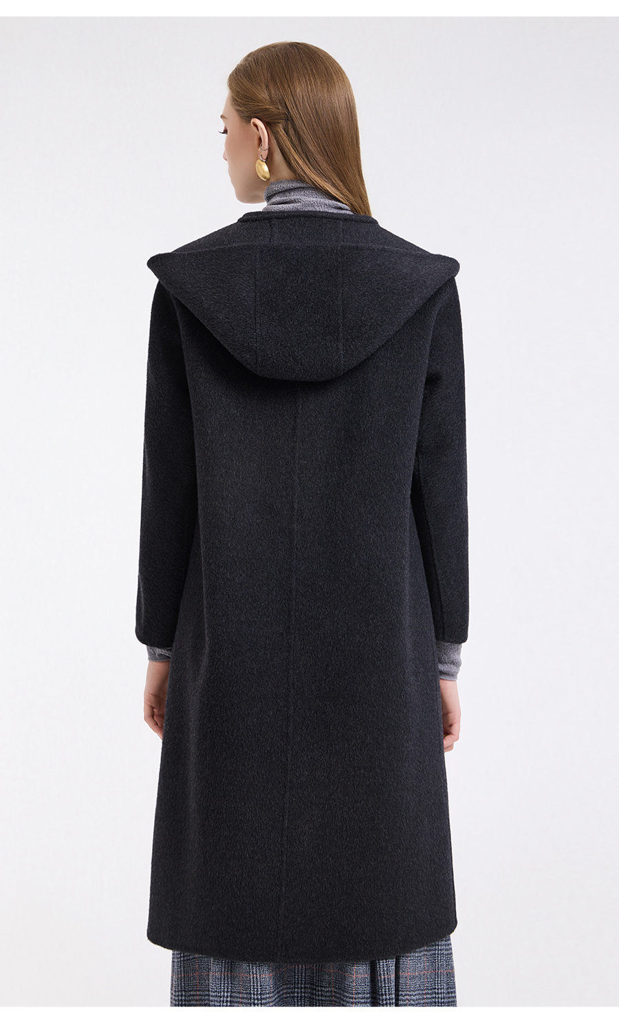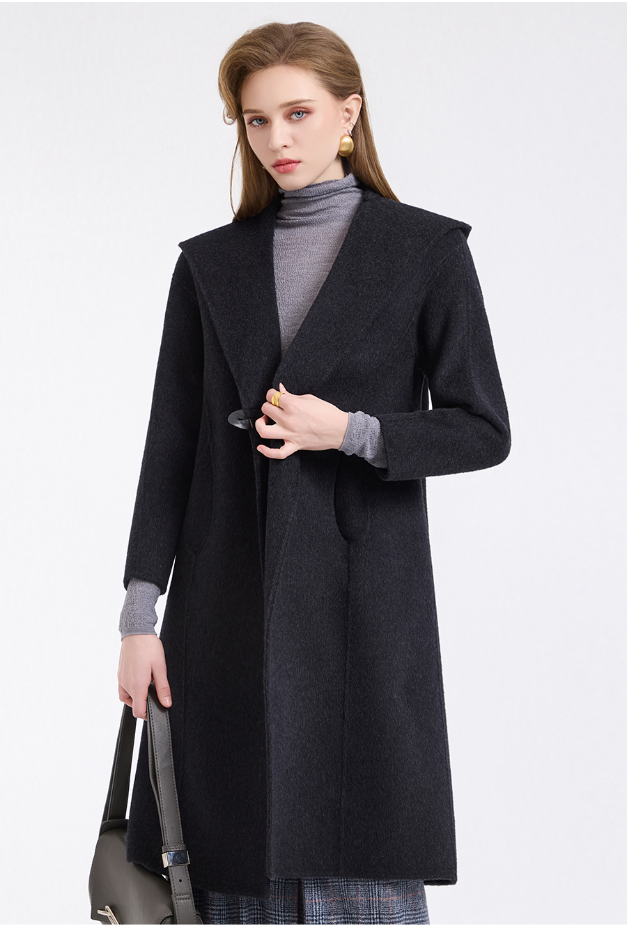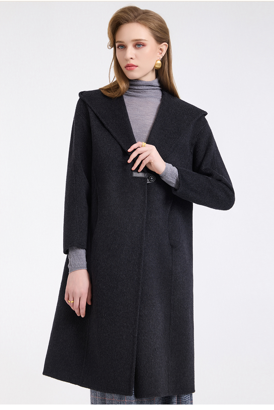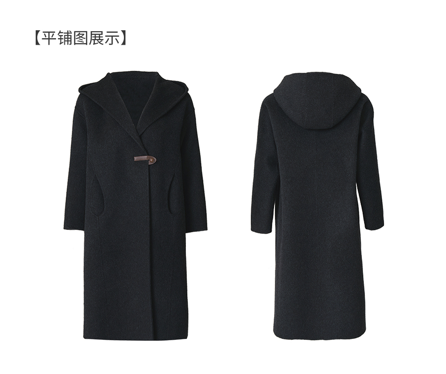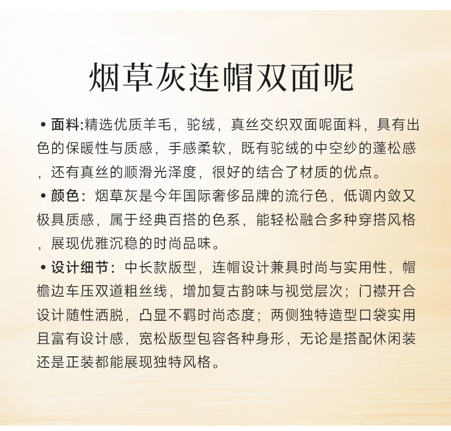 乔万尼连帽设计气质优雅感烟草灰宽松中长款羊毛大衣ED4A781901