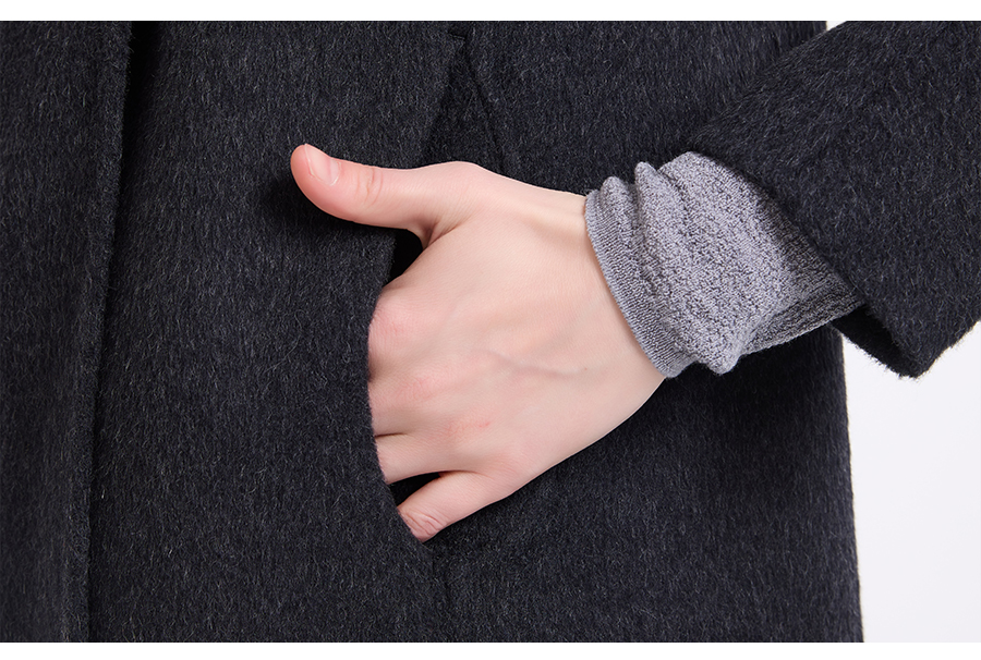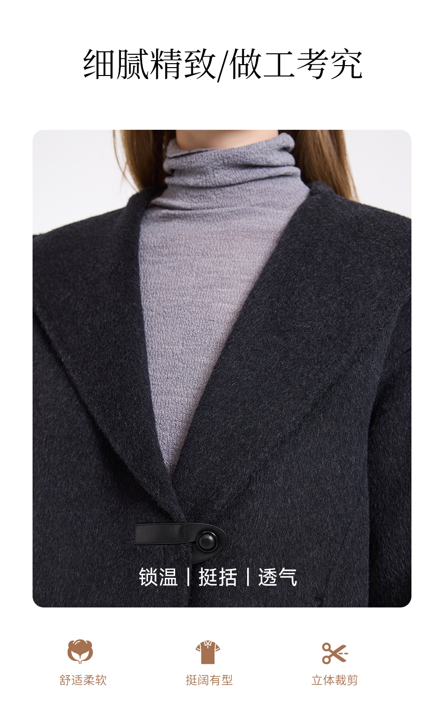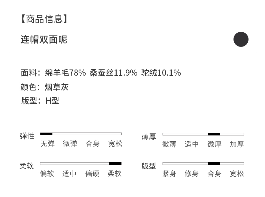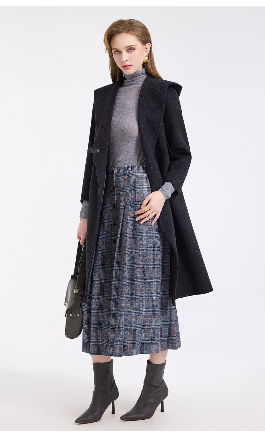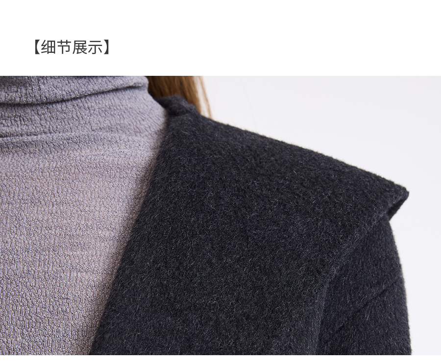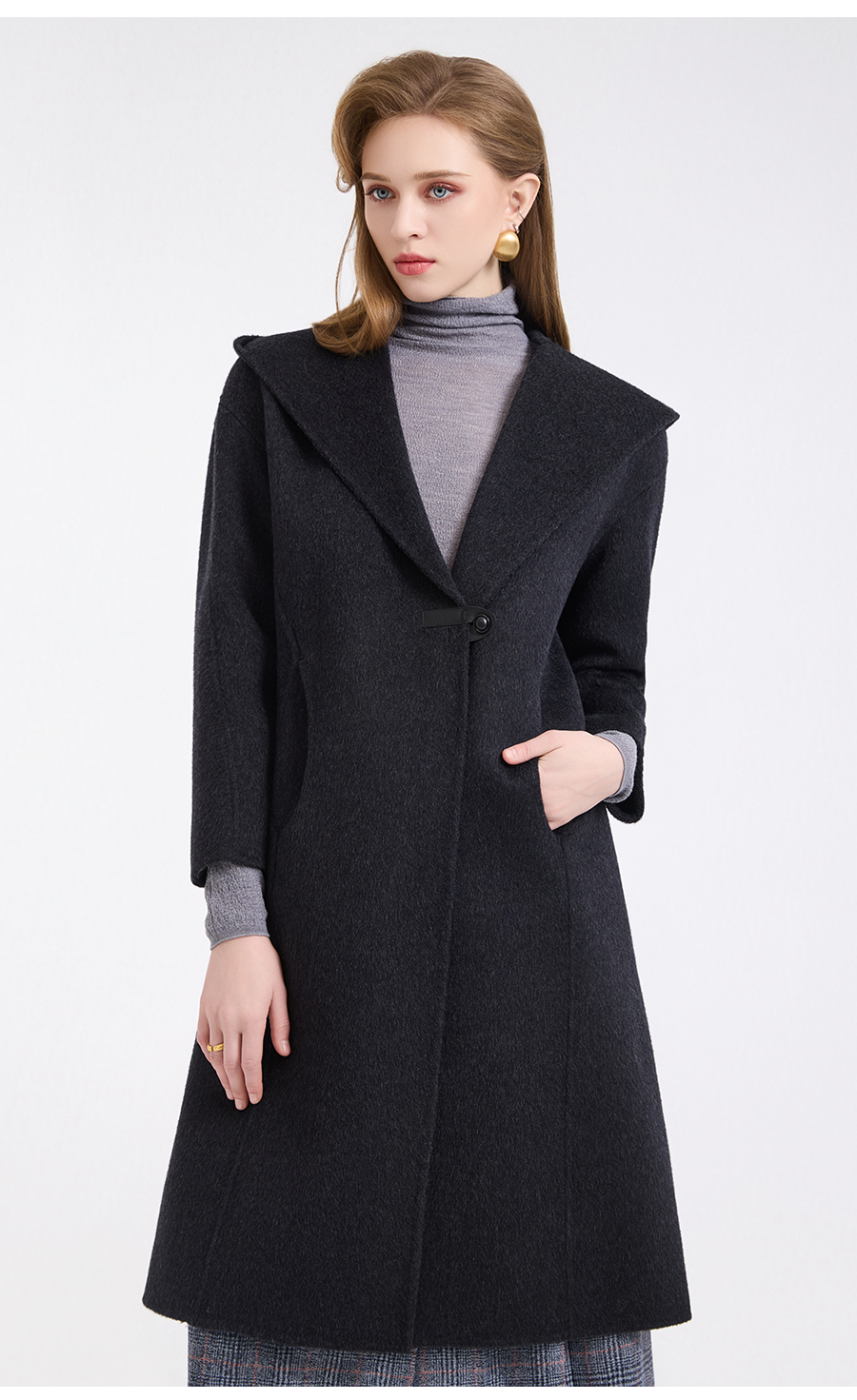 乔万尼连帽设计气质优雅感烟草灰宽松中长款羊毛大衣ED4A781901