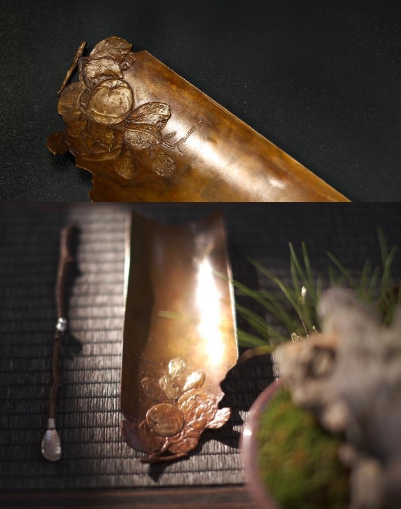 《满螳》铜底大漆茶则
