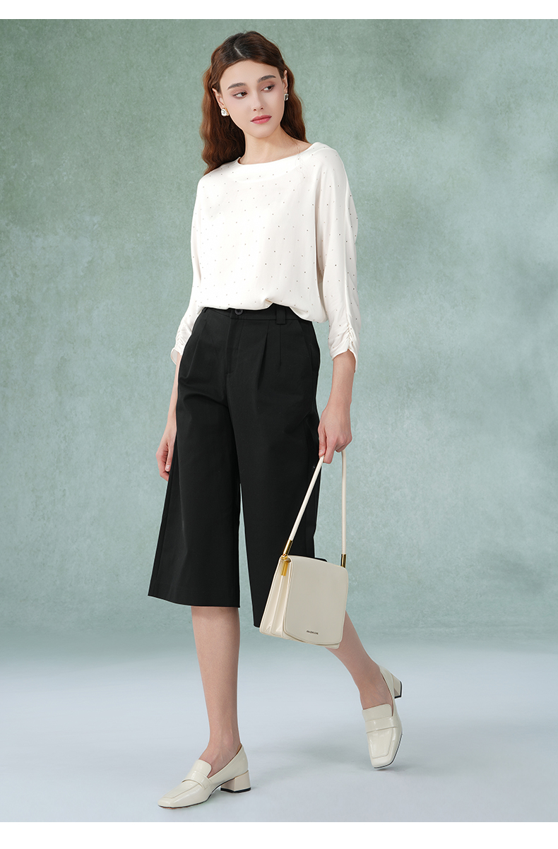 乔万尼新款夏季休闲裤女宽松直筒裤时尚七分阔腿裤ES2F162