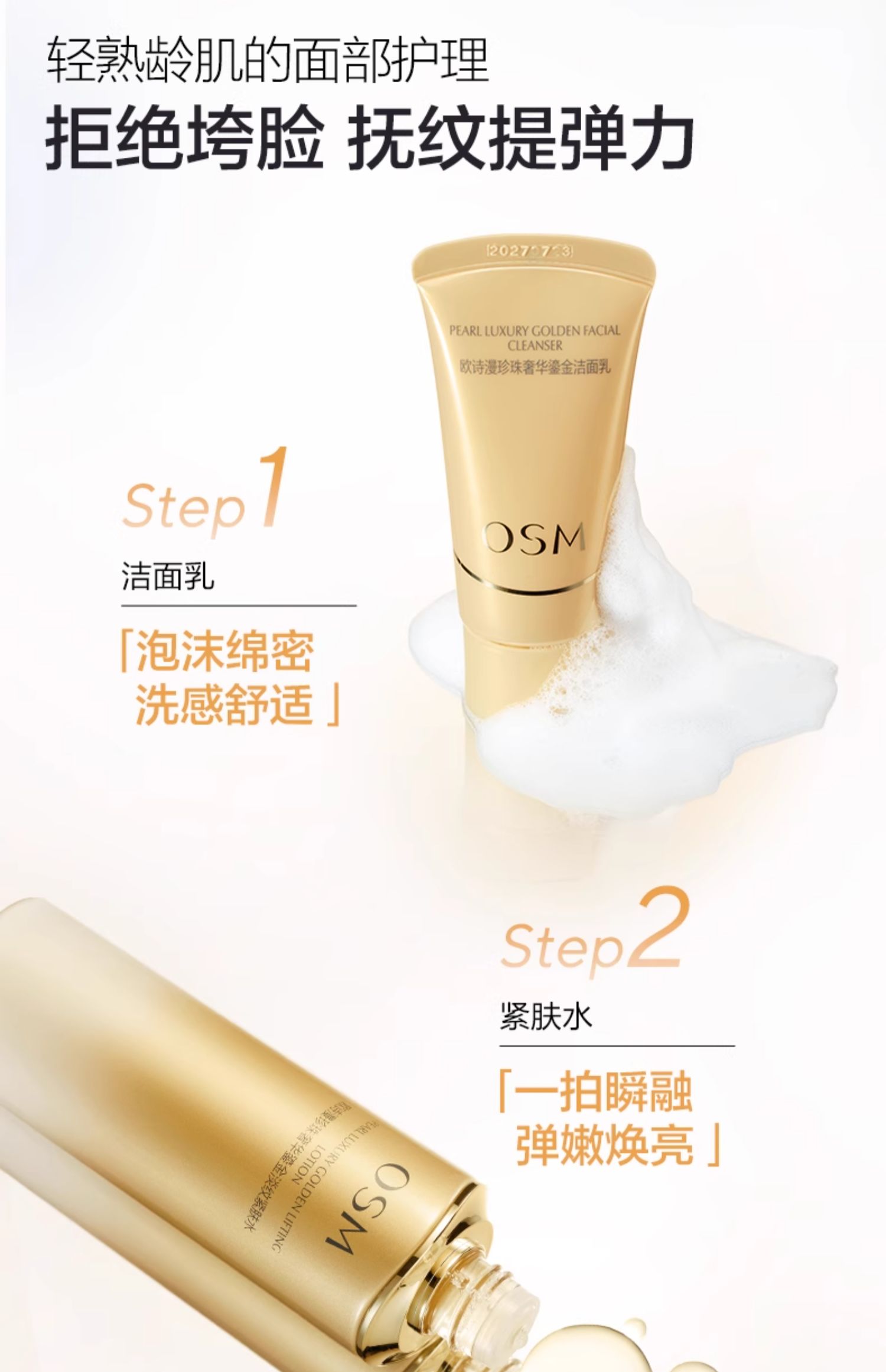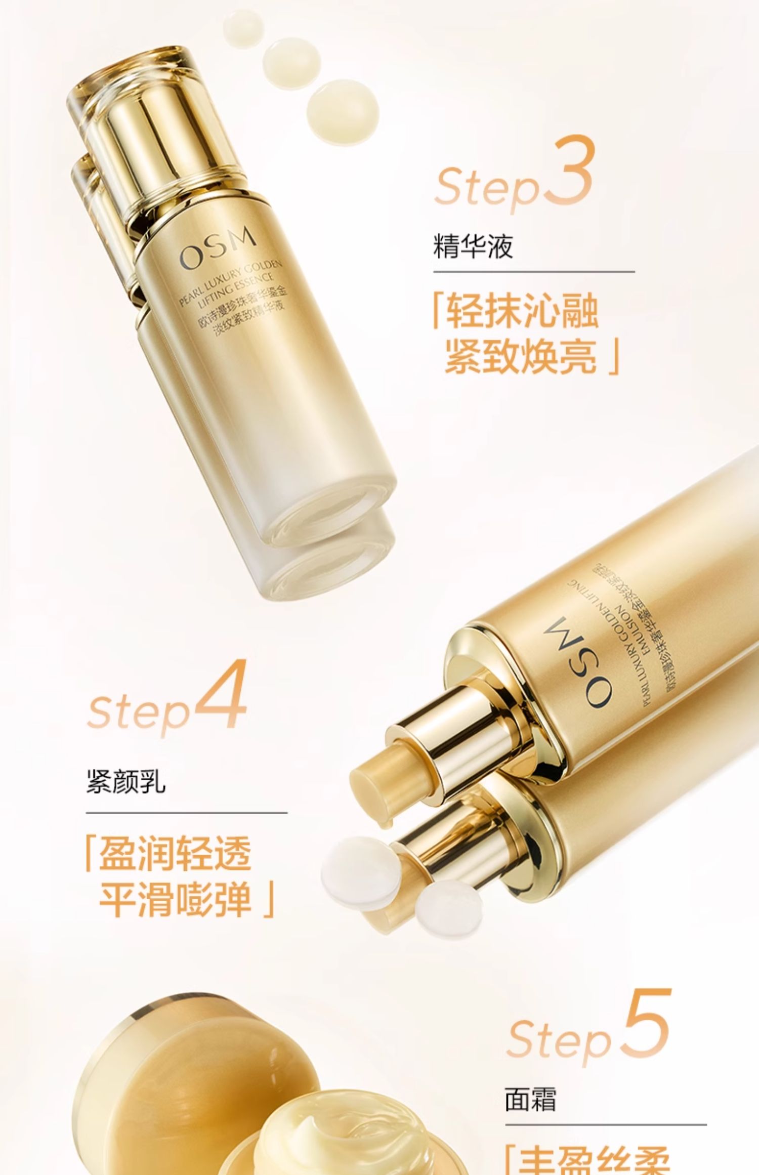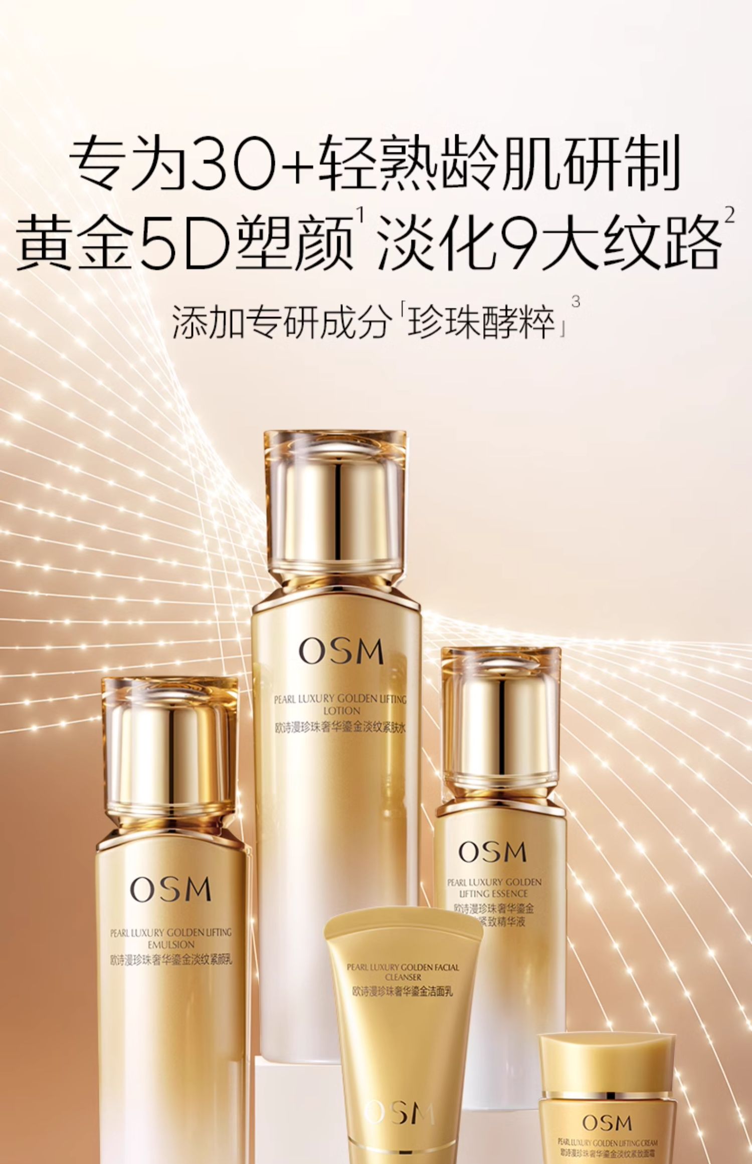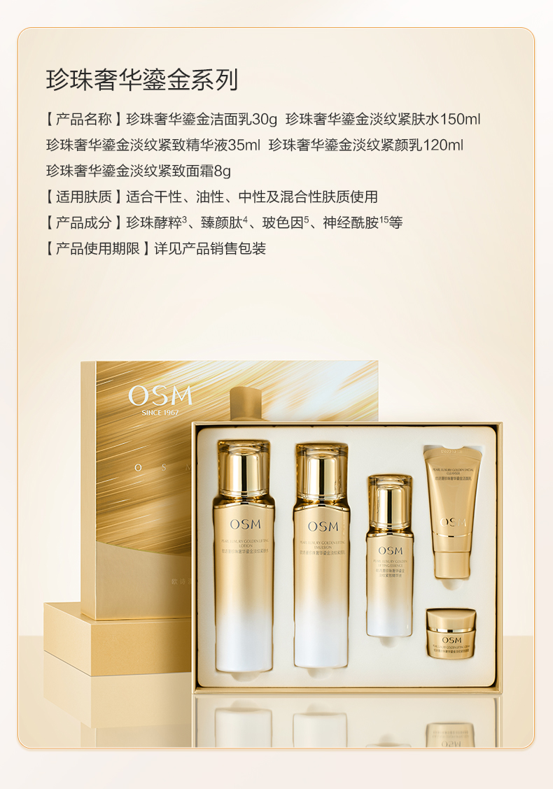 珍珠奢华鎏金淡纹紧致明星礼盒:150ml水+120ml乳+35ml精华液+30g洁面+8g面霜