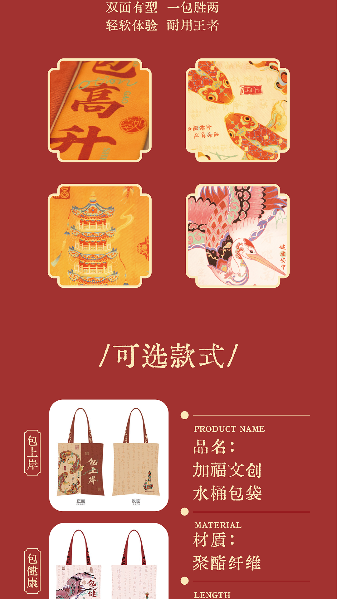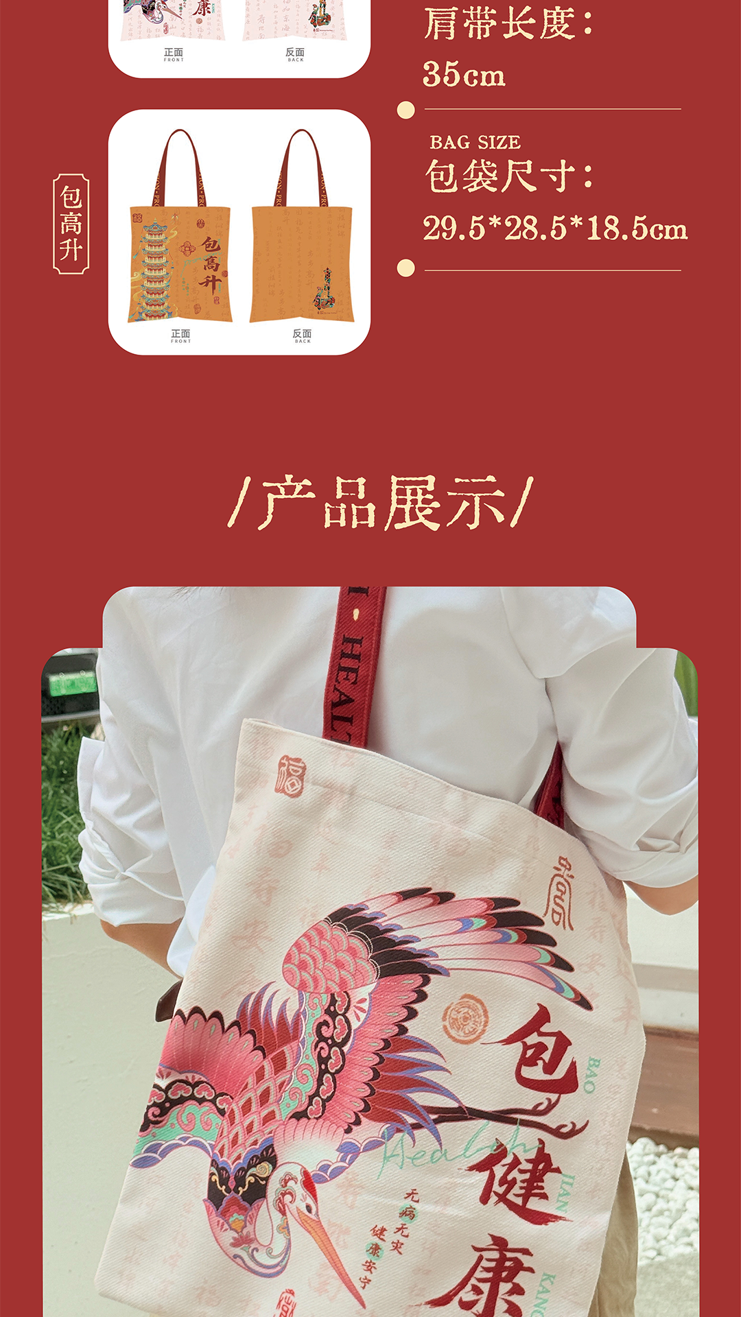 【重要说明】:本品印有“【包】高升、【包】上岸、【包】健康”字样,为趣味谐音梗设计,取其“单肩包”的“包”字,表达对美好生活的一种祝愿和寓意,并非对本产品有任何实际功效的承诺。请以趣味文创品的视角欣赏它。