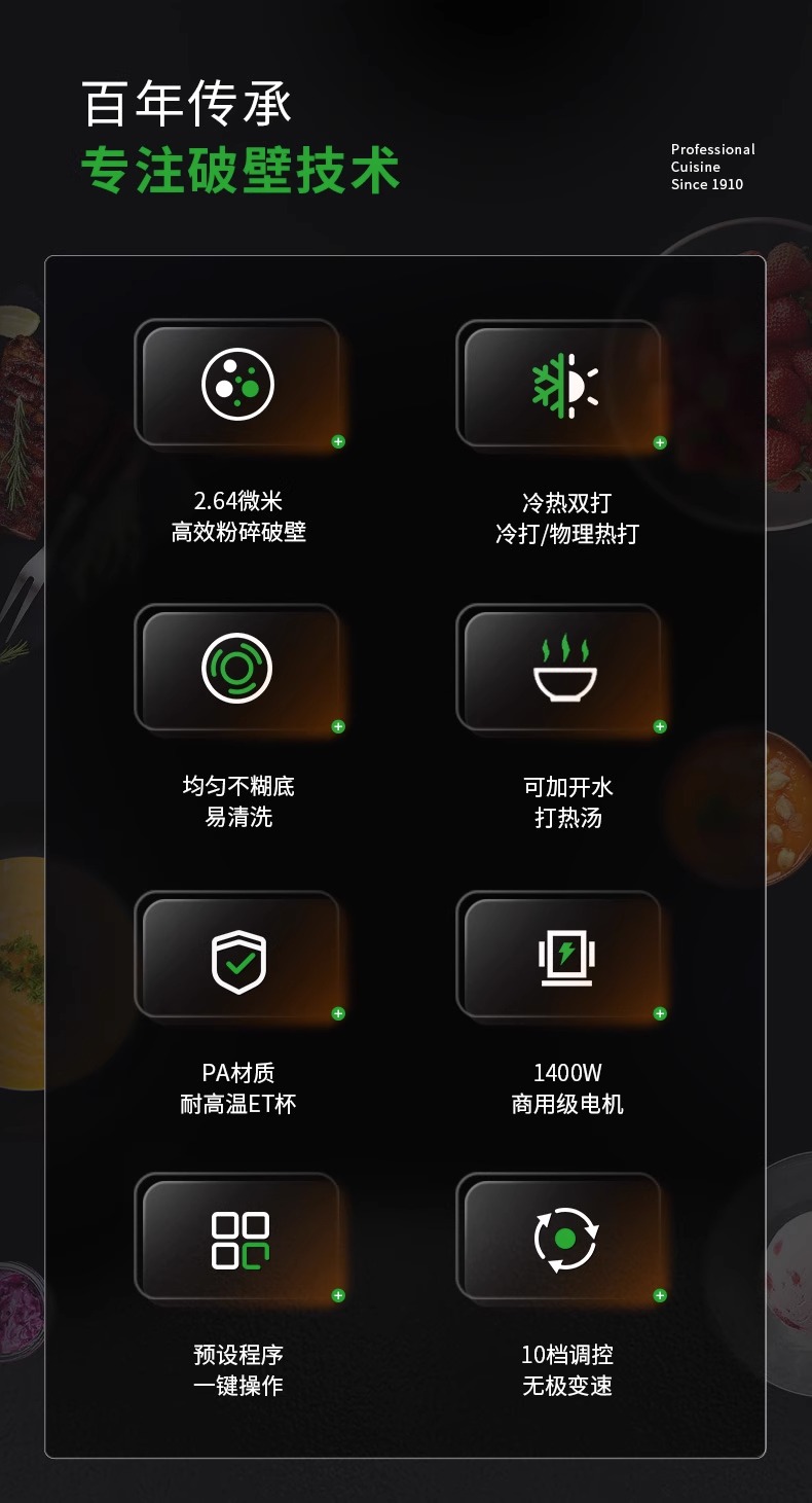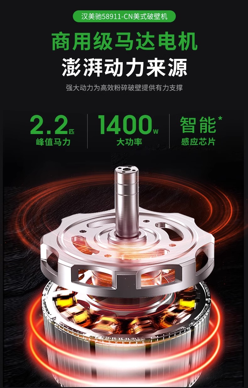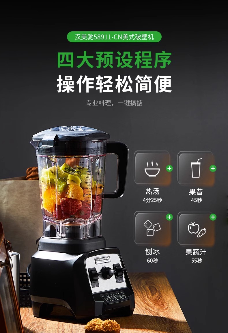 汉美驰(Hamilton Beach)百年品牌破壁机家用多功能豆浆机破壁榨汁机辅食机料理机 58911-CN