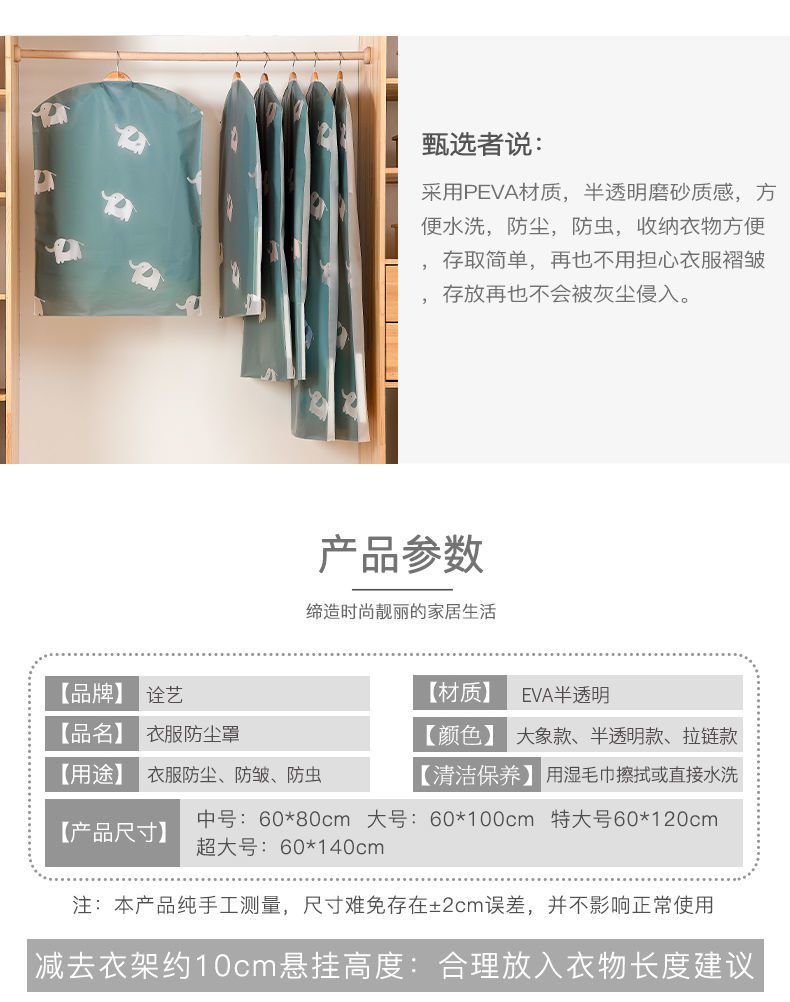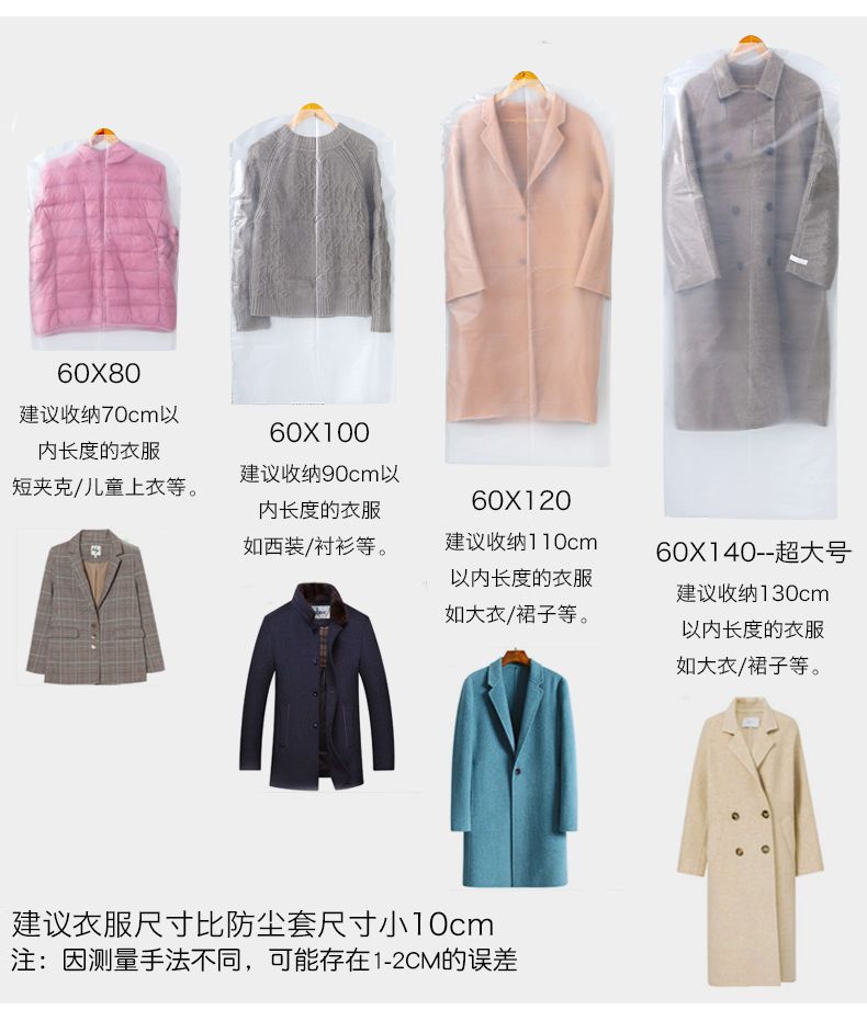 衣服防尘罩 挂衣袋透明大衣防尘袋 衣罩 装衣物冬季外套服收纳防尘套袋子hsn07