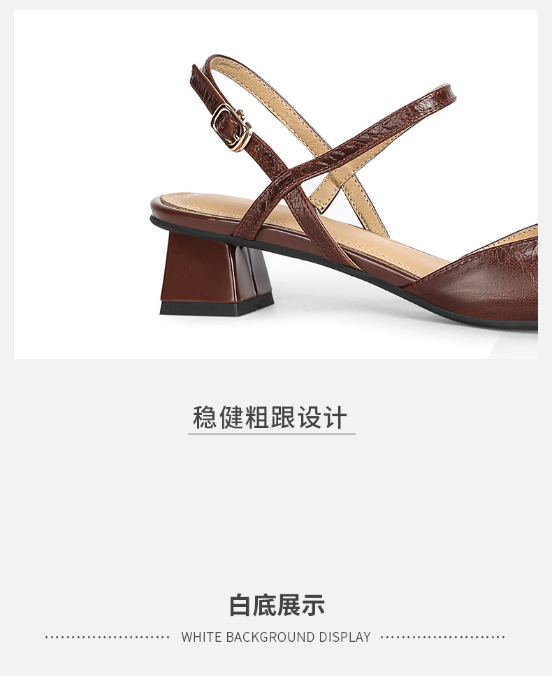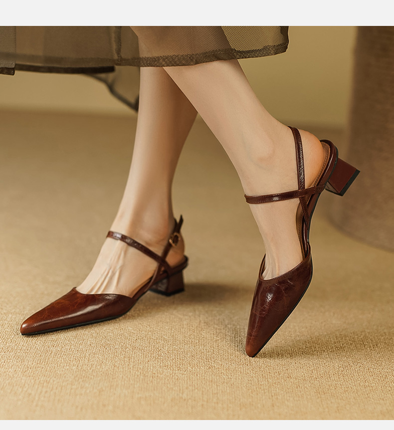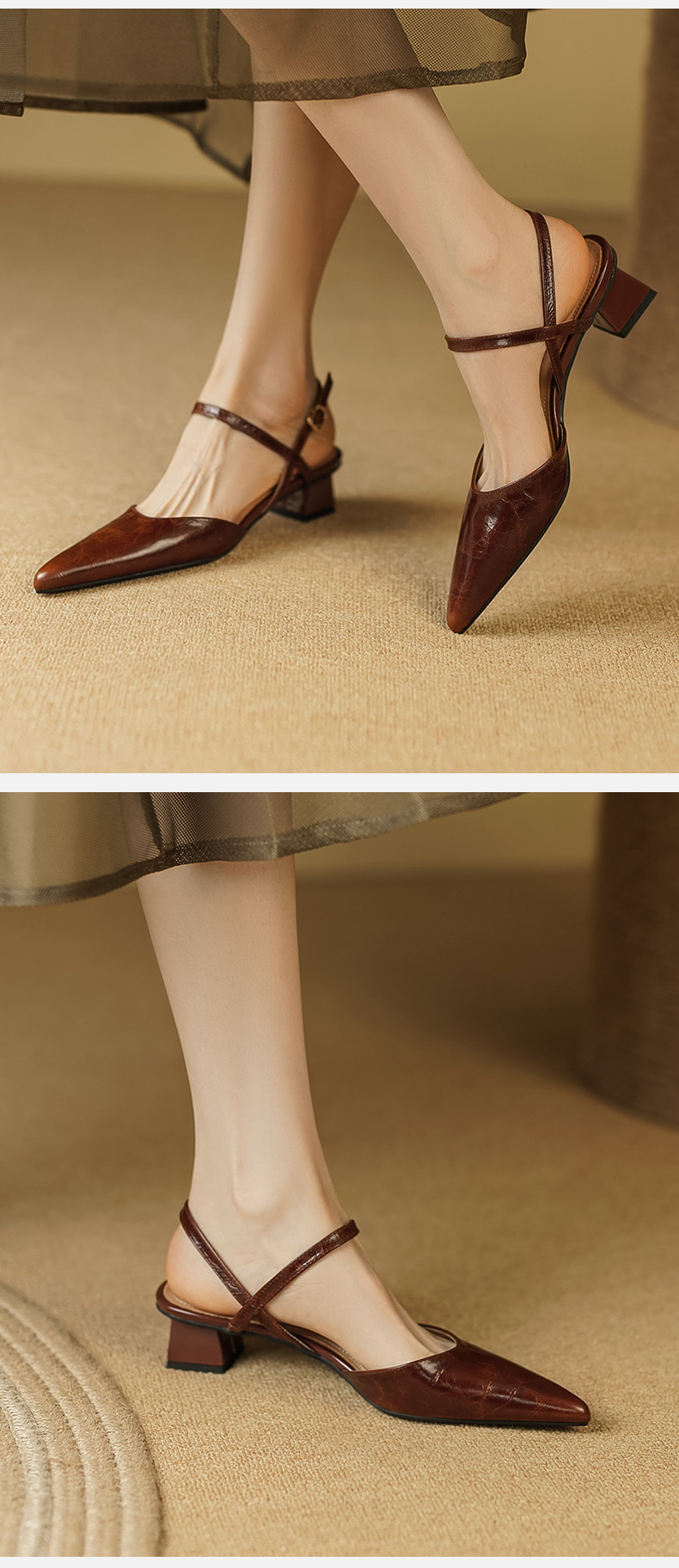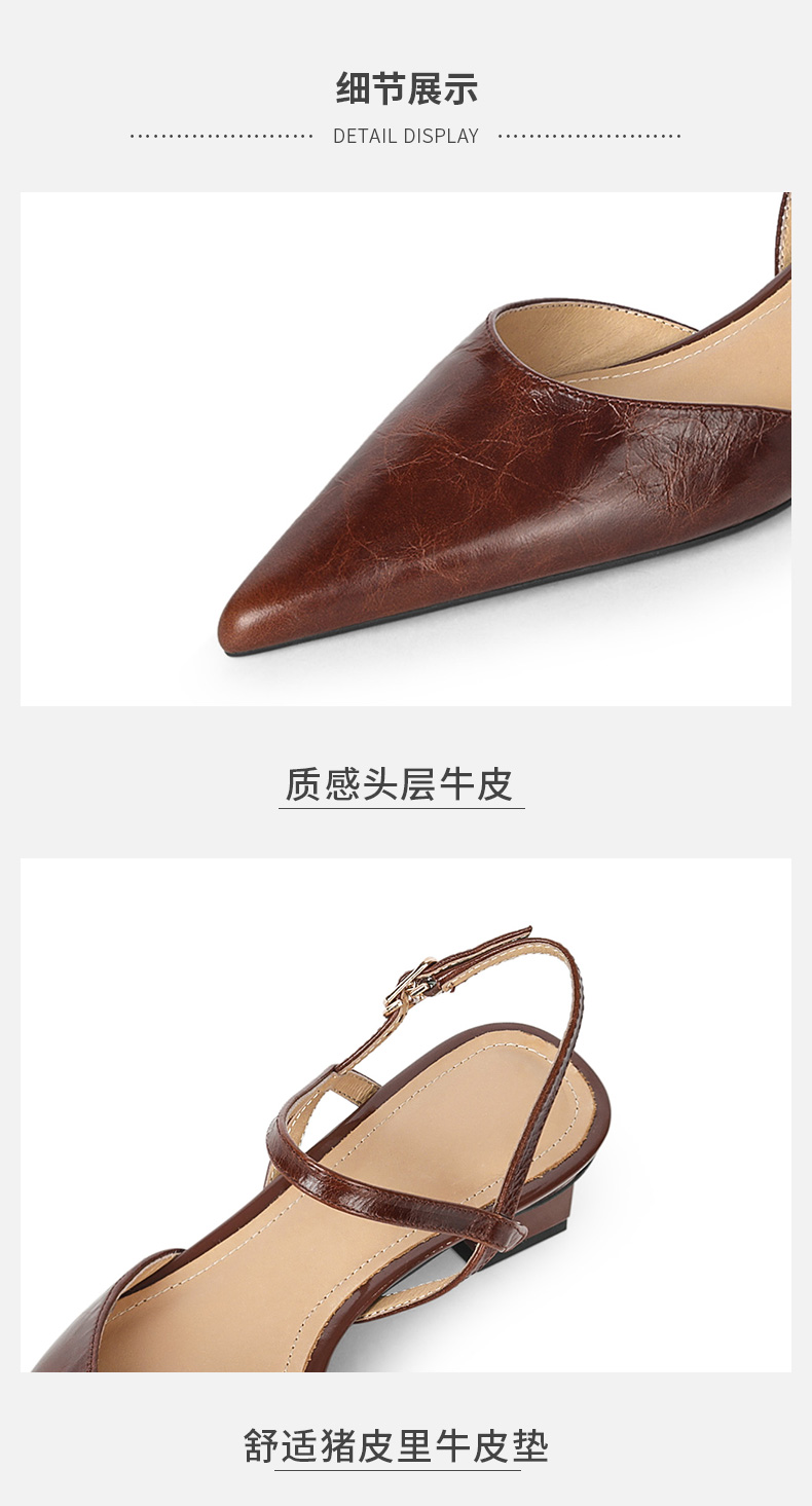 优雅法式,尖头真皮中跟凉鞋LCC-C9134